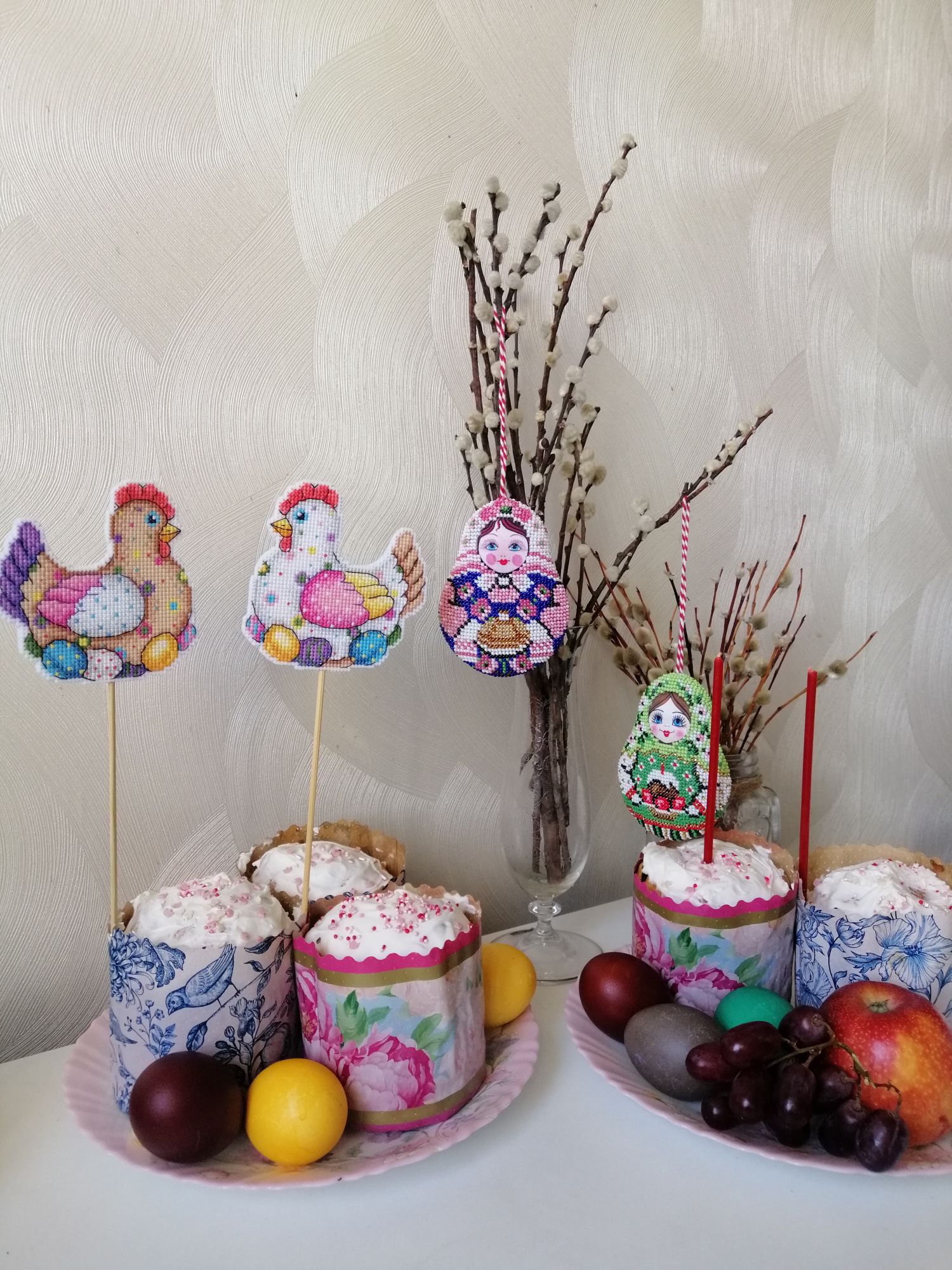 19 апреля 30 минут назад, Auria сказал(а): Таня, спасибо! Мне тоже понравились, интересно было вышивать на деревяшке. Но в массовое производство уходить не буду. Эта у меня всего лишь восьмая но интересно, сколько их всего вышито на форуме?! В моей мини коллекции она выглядит по-зимнему. Но в полной матрёшечной коллекции есть по-настоящему зимние. Лена, спасибо тебя давно не было. Главное, что ему ничто не мешает, даже я со своим фотографированием ))) У меня вчера была полуночная подготовка к празднику вспомнила про заготовленные украшения интуитивно нашлись потерянные матрёшки Ну и всё красивое разом Оля, привет! Матрешечки нигде не лишние - ни на Рождество, ни на Пасху. Впечатлила твоя подготовка к празднику. Какая же ты умница! Тимофею отдельный приветик! relax_cross_stitch, GreenTea, Auria и 1 другой сказали спасибо Поделиться сообщением Ссылка на сообщение
