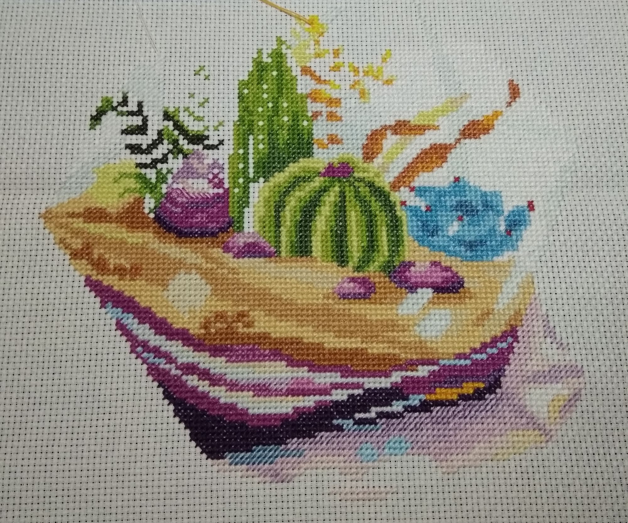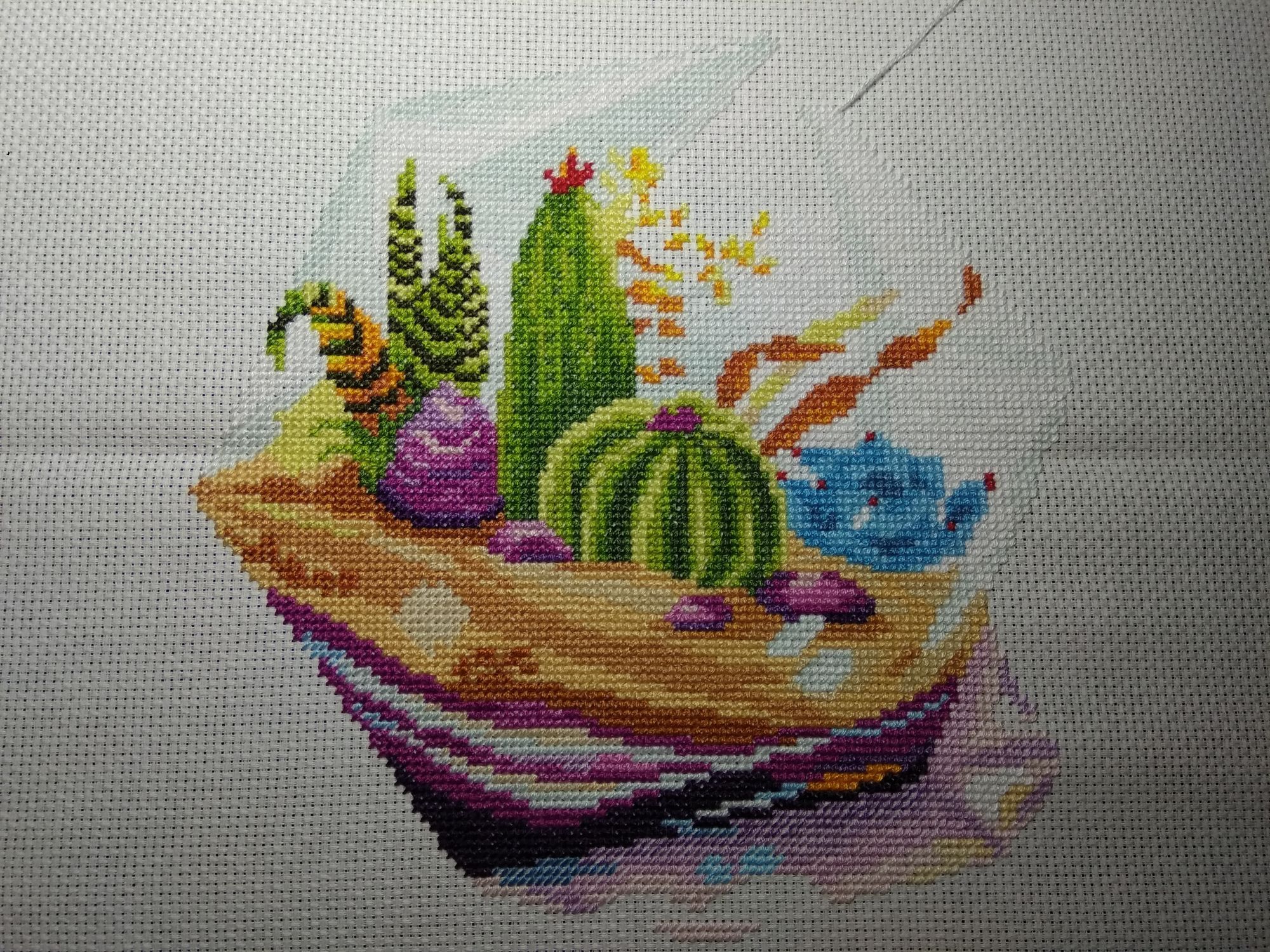 1 февраля 2022 С опозданием показываю вышивальный план января +871ххх --> Думала успею на этой неделе доделать, но старший принес из садика заразу... Болеем теперь всей семьёй. Это Флорариум от Панны) очень яркая и интересная работа, хорошо сочетается с кактусами от МП Студии) интересно, что результат немного отличается от обложки, мне кажется первоотшив делали на 14ст, а не на 16, и у камешков нет светлых крестиков) Я знаю, что Панна активно работает с пожеланиями вышивальщиц во время разработки новых дизайнов, т.ч. эти небольшие отличия, скорее всего, результат этой работы) Лично мне очень нравится) Обожаю суккуленты) Касси, Zishka, tamara.34 и 15 других сказали спасибо Поделиться сообщением Ссылка на сообщение