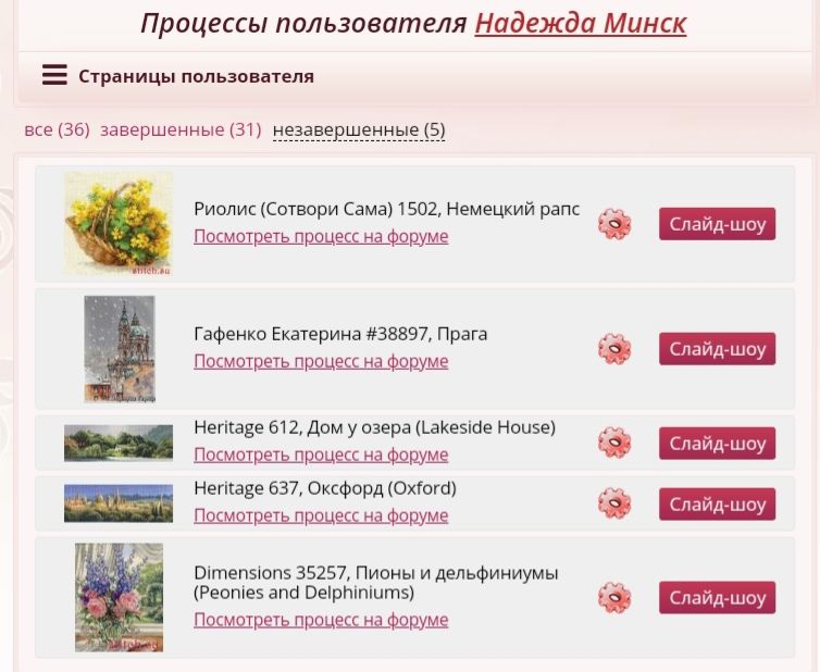 29 декабря 2021 Мой план на год в четырех словах: "Завершить все незавершенные процессы" Расшифровываю: 1. Дим "Пионы и дельфиниум" - вышить, оформить. 2. Е. Гафенко "Прага" - вышить, оформить (по возможности). 3. Херитаж "Дом у озера" - вышить. 4. Херитаж "Оксфорд" - вышить. 5. Оформить панели Херитаж - Зимнее поле, Дом у озера, Оксфорд. 6. Риолис "Немецкий рапс" - вышить, оформить (по возможности). Таня, не знаю, понятно ли - там, где "по возможности" - оформление необязательно, а пишу, чтобы не составлять отдельно план для форума, а отдельно - для себя vikkovesh, Грёза, Anneti и 18 других сказали спасибо Поделиться сообщением Ссылка на сообщение