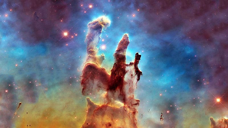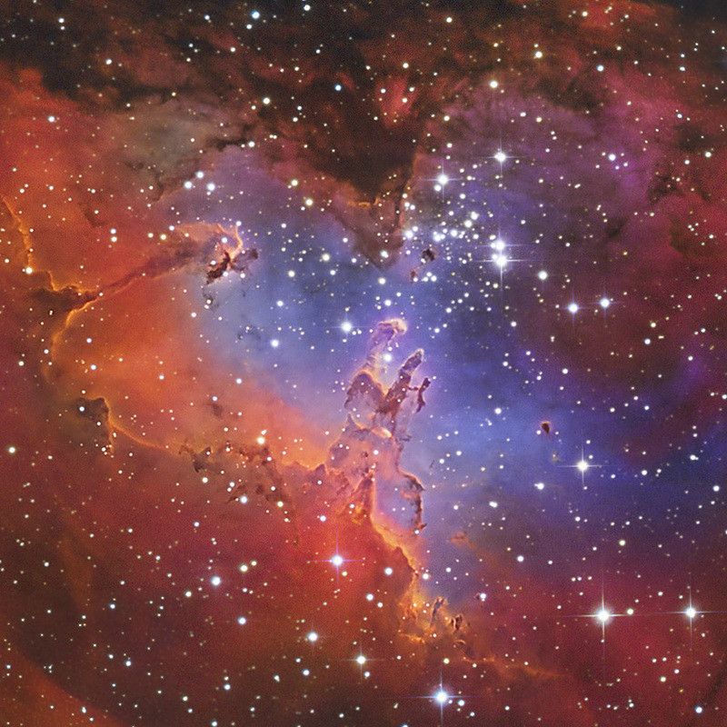 31 августа 2022 Вышивальное задание августа. Выполнено 2,5 тысяч крестиков на моём основном проекте, пункте первом игрового плана, Семплере "Пэчворк", в черных, хаки, коричневых, мятно-серых, фиолетовых полутонах. Все эти оттенки присутствуют в фотографиях туманности, о которой пойдёт речь в приведённой статье. Было: Стало: Выполняла задание месяца, прочитав статью о самой знаменитой фотографии телескопа Хаббл. Меня очень увлекает информация о Столпах Творения (ещё их называют "Пальцами" или "Слоновьими хоботами"). Фотографии и пугающие, и прекрасные одновременно)) «Столпы творения» — они еще видимы, но уже не существуют. Прежде всего стоит отметить, что космический телескоп имени Эдвина Хаббла — самый сильный и зоркий орбитальный телескоп землян — запускался совсем не для того, чтобы постить потом в сети удивительной красоты фотографии туманностей, галактик, звездных скоплений — это все побочный продукт и издержки PR-активности отдела NASA отвечающего за одобрение всех этих безбашенных и крайне дорогих космических проектов населением США. Людям нравятся картинки. Вот и хорошо. Ни одна из тех фотографий, которые были показаны публике, из коллекции снимков телескопа имени Хаббла, не вызывала такой резонанс, как фотография «Столпов». На самом деле это никакой не объект. И у этого вселенского образования даже названия не было, пока телескоп Хаббла не запечатлел этот крошечный сектор неба. Это фрагмент… очень маленький фрагмент туманности «Орёл» в созвездии Змеи: Чтобы не возникла путаница сообщу, что это никак не относится к созвездию Орла. Это другое место на небе, хотя и не очень далеко. Но — не там. Еще одно интересное дополнение: Созвездие Змеи — единственное из созвездий, которое астрономы разрезали на две части. Есть отдельно «Голова», и отдельно «Хвост». Между ними созвездие «Змееносца». Он как бы держит огромную змею в руках, она нежно обвивает его туловище, и какой-то своей частью за телом Змееносца скрывается. Поэтому на звездной карте оно разделено. Туманность «Орел» находится в «Хвосте» Змеи. «Орел» — не только туманность. Это еще и рассеянное звездное скопление. Два с половиной столетия назад это скопление внес в свой каталог знаменитый французский ловец комет Шарль Мессье. Скопление было известно и до него. Но с попаданием в каталог Мессье оно стало именоваться именно как М16. Позже, с созданием Нового Общего Каталога ему был присвоен номер NGC 6611. Звезды, наполняющие скопление М16, совсем молодые. Как сейчас известно, звезды образуются при уплотнении межзвездного газа — из водородных туманностей. И глядя на фотографию рассеянного скопления М16 можно увидеть и ту самую туманность, породившую (и интенсивно порождающую до сих пор) новые звезды. Подобных туманностей на небе множество. Некоторые куда более впечатляющие — та же самая туманность Ориона, обволакивающая все созвездие — она просто невообразима ни по размерам, ни по мощности протекающего в ней звездообразования — это просто титанический вселенский роддом. Но она не стала хитом астрофотографии от телескопа имени Хаббла. Хитом стали «Столпы». И они действительно прекрасны, они пробуждают в человеке какие-то глубинные сокровенные чувства, которые у многих людей соотносятся с чем-то непостижимым, непознанным. Совсем не удивительно, что этому фрагменту туманности «