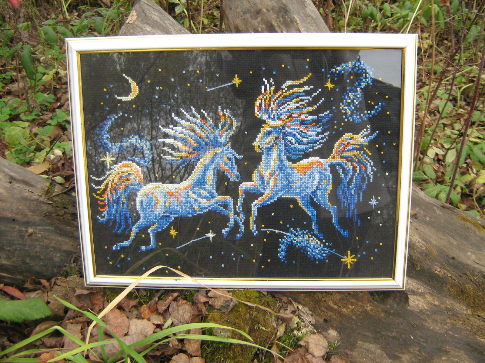 3 сентября 2022 Первое задание сентября - Мой сказочный мир В рамках этого задания я решила рассказать об одном мифическом существе, которого я вышиваю сейчас, и которого вышивала до этого - единороге! Вот такой маленький очаровашка у меня в работе сейчас - набор на пластиковой канве от МП Студии. А вот такой набор от Чаривной мити я вышивала несколько лет назад. А что же мы знаем о единорогах? Единорог- мифическое существо, известное с давних времен. Первое упоминание о нем имеется еще в период до н.э. Согласно первым упоминаниям и рисункам, единороги имели чисто белый окрас. Но сейчас буйство современной фантазии делает этих животных синими, фиолетовыми, розовыми, перламутровыми и даже радужными. В средние века единороги были символом чистоты и благодати. По преданиям поймать и приручить его могли только девственницы. Есть легенда о том, как единорог спас заблудившуюся принцессу, после чего стал священным животным. Рог единорогов обладает волшебной целительной силой. В фильме и книге про Гарри Поттера, кровь единорога лечит от любой болезни. Другое мнение — рог этого мифического создания настолько волшебный, что может превратить грязную отравленную воду в чистую, свежую и питьевую. В средние века этим активно пользовались мошенники- продавали так называемые "кусочки рога единорога" наивным людям, которые боялись отравления, и делали на этом неплохие деньги. Я даже помню, что такие ситуации описывались в первой из книг про Анжелику-маркизу ангелов А. и С. Голон- когда на пиру в Тулузе граф де Пейрак пытался развеять миф о том, что единороги существуют и о том, что кусочки рога, которые его гости клали в бокалы, не помогут им от отравления Королева Елизавета I заплатила около 6 миллионов долларов, по современным меркам, за «настоящий, уникальный и исцеляющий» рог единорога. Чтобы использовать его в качестве скипетра. На самом деле ей продали бивень нарвала. Кстати, эти животные во времена охоты на единорогов, как правило, и страдали больше всего. Подозревали слухи о единорогах и путешественники - например, Марко Поло, который, по его рассказам, наблюдал «единорогов» на Суматре. Это, по его словам, были огромные и уродливые звери, которые любили валяться в грязи и едва ли подпустили бы к себе невинную девушку, да и никакая девушка не согласилась бы приблизиться к подобным тварям. Очевидно, что на самом деле Марко Поло описал носорогов. На единорогов можно охотиться. Официально. В наши дни… На такую охоту, с 1971 года, выдается официальная лицензия в штате Мичиган. Получив ее один раз, можно использовать в течение всей жизни. На охоту рекомендуется приносить с собой розовые ножницы и бутылку коньяка. Также в США выдают патент на проведение операции по пересадке козьих рогов лошадям. Первая операция была проведена в 1980-х годах. Тут я вспоминаю монологи Михаила Задорнова А еще про единорогов есть вышивальная примета- его нужно вышить, если девушка хочет выйти замуж. Ну а выбор у тех, кто хочет единорога вышить очень большой - с ним есть сюжеты практически у всех известных производителей - Панна, Овен, Золотое Руно, Риолис, Чаривна мить, Dimensions и т.д., крестиком, бисером, лентами, картинами, подушками, на одежде... tamara.34, Надежда Минск, alenazo и 11 других сказали спасибо Поделиться сообщением Ссылка на сообщение