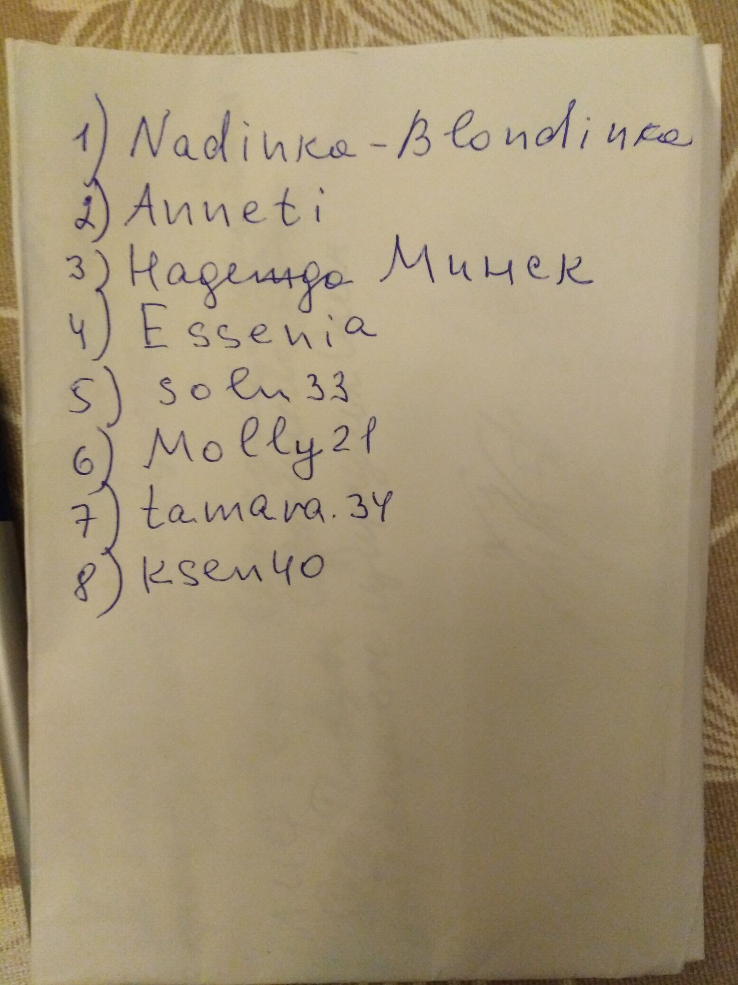 6 января 2023 Уважаемые участницы, проверьте свои данные в таблице, возможно я что-то упустила и не отметила Сейчас результаты для розыгрыша такие: Полностью план выполнили: @Anneti @Molly21 @Nadinka-Blondinka @tamara.34 @Надежда Минск @Essenia @ksen40 @soln33 По баллам в играх лидеры: @Nadinka-Blondinka 143 балла @Essenia - 128 баллов @tamara.34 - 116 баллов Ну а чемпион по баллам @Надежда Минск - 154 балла В Книжном клубе тоже есть свой чемпион - @Nadinka-Blondinka (18 баллов) Пожалуйста, дайте знать, если у Вас что-то неверно, я поправлю, и завтра проведем розыгрыш Надежда Минск, Zishka, Molly21 и 11 других сказали спасибо Поделиться сообщением Ссылка на сообщение