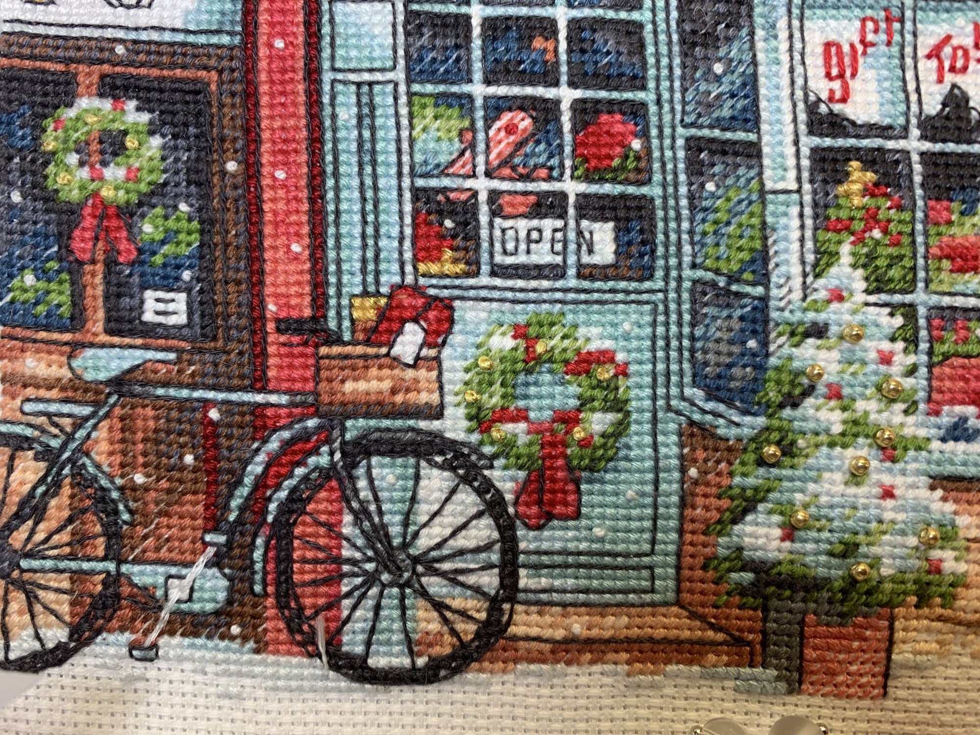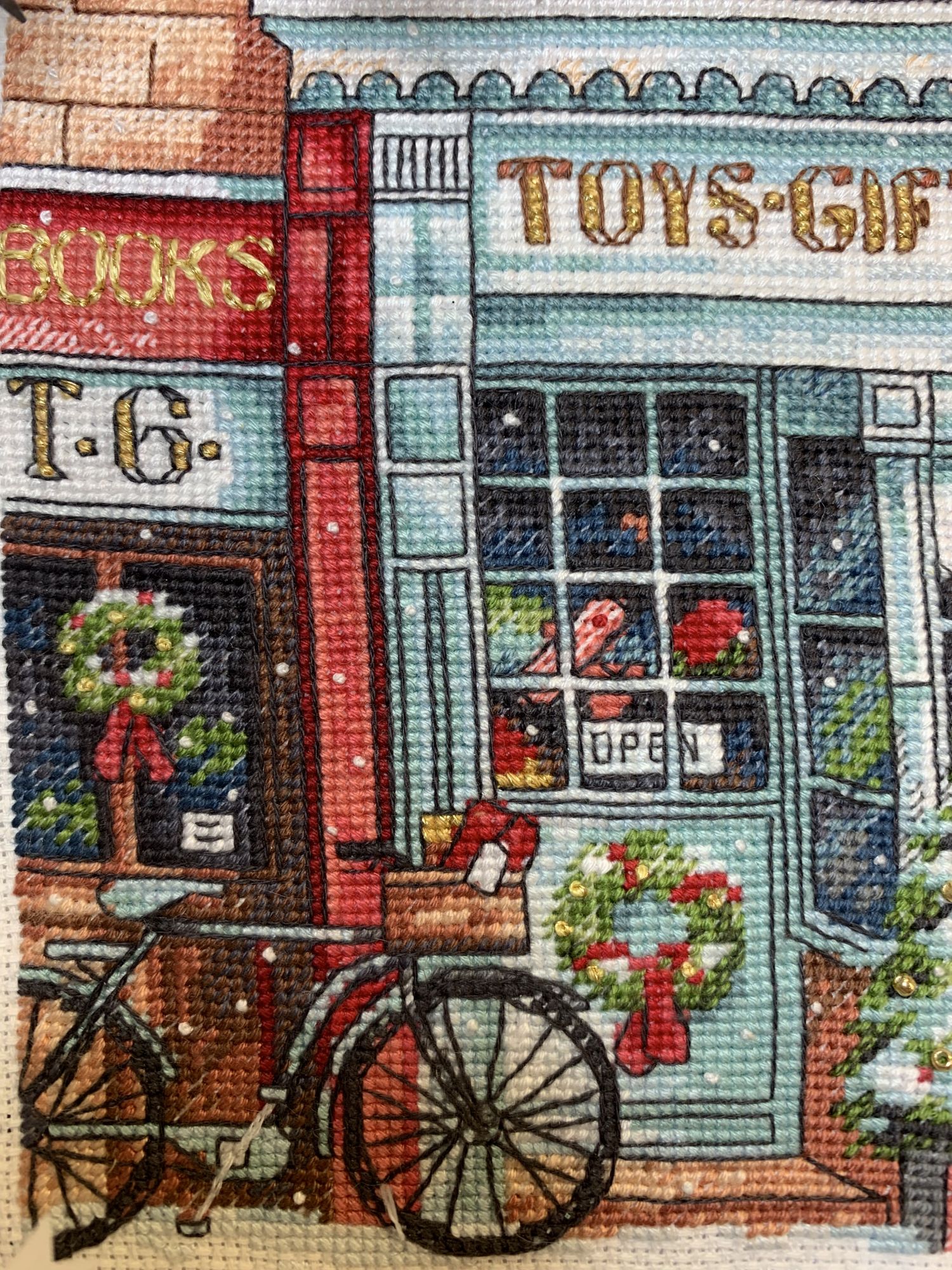 5 февраля 2022 30.01.2022 в 22:00, Fascinata сказал(а): Девочки, несу в наш хоровод одиннадцатую гайку! Вот мой законченный Магазин игрушек: Ох, и плотной же сделалась тряпочка! Сдобренная полукрестами в 3 и 4 нити, прошитая вдоль и поперёк бэком, пробитая поверху гвоздиками фрузелков, моя Вышивка явила собой в результате толстый жёсткий коврик. Белые фрузелки, выражающие снег, я вместо 3 нитей шила в 2: на мой взгляд, в 3 нити как-то крупновато, не так нежно, как моя душа потребовала. И желтые с металликом фрузелки я заменила бисером только на ёлке. Я попробовала бисером все заменить, но поняла, что на венках бисер должен быть помельче, нежели на ёлке, а у меня он был только одного размера. Некоторые детали: (Все фото в гаечку) Девочки, спасибо, что поддержали идею вышивального карнавала, для меня это было здОрово, хоть и чуточку безумно . Я с вами не прощаюсь, остаюсь здесь преданным зрителем и искренним желателем исполнения всех зашитых в крестики желаний! Шикарный результат! Поздравляю! K_AnnA_D, Fascinata, Novia и 4 других сказали спасибо Поделиться сообщением Ссылка на сообщение