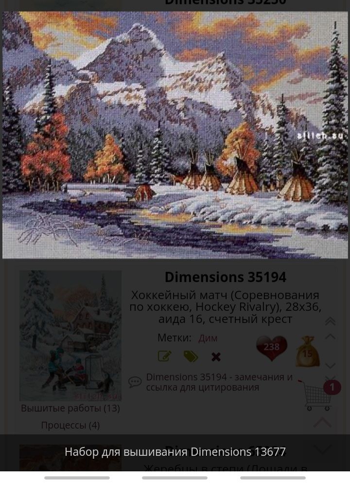 18 декабря 2024 6 часов назад, Auria сказал(а): хотя я мечтаю увидеть в твоём исполнении, Юль, какие-нибудь индийские пейзажи. Те два похожих, но в разных сезонах, помнишь?! Оль, поняла. Этих. Не знаю когда смогу начать. Всё по настроению. Если интересно, можешь поискать по названию, ведь здесь на сайте девушка отшивала первого индейца. Вышивала она не по оригинальному набору, но использовала оригинальные димовские нитки, так что результат должен соответствовать. Сразу скажу, результат потрясающий. Сейчас попробую найти и добавлю ссылку. Второго я и сама не видела в отшиве, поэтому скорее всего, если начну, то именно его, ибо интересен результат очень! Aleksacha , Sneganna, Auria и 6 других сказали спасибо Поделиться сообщением Ссылка на сообщение