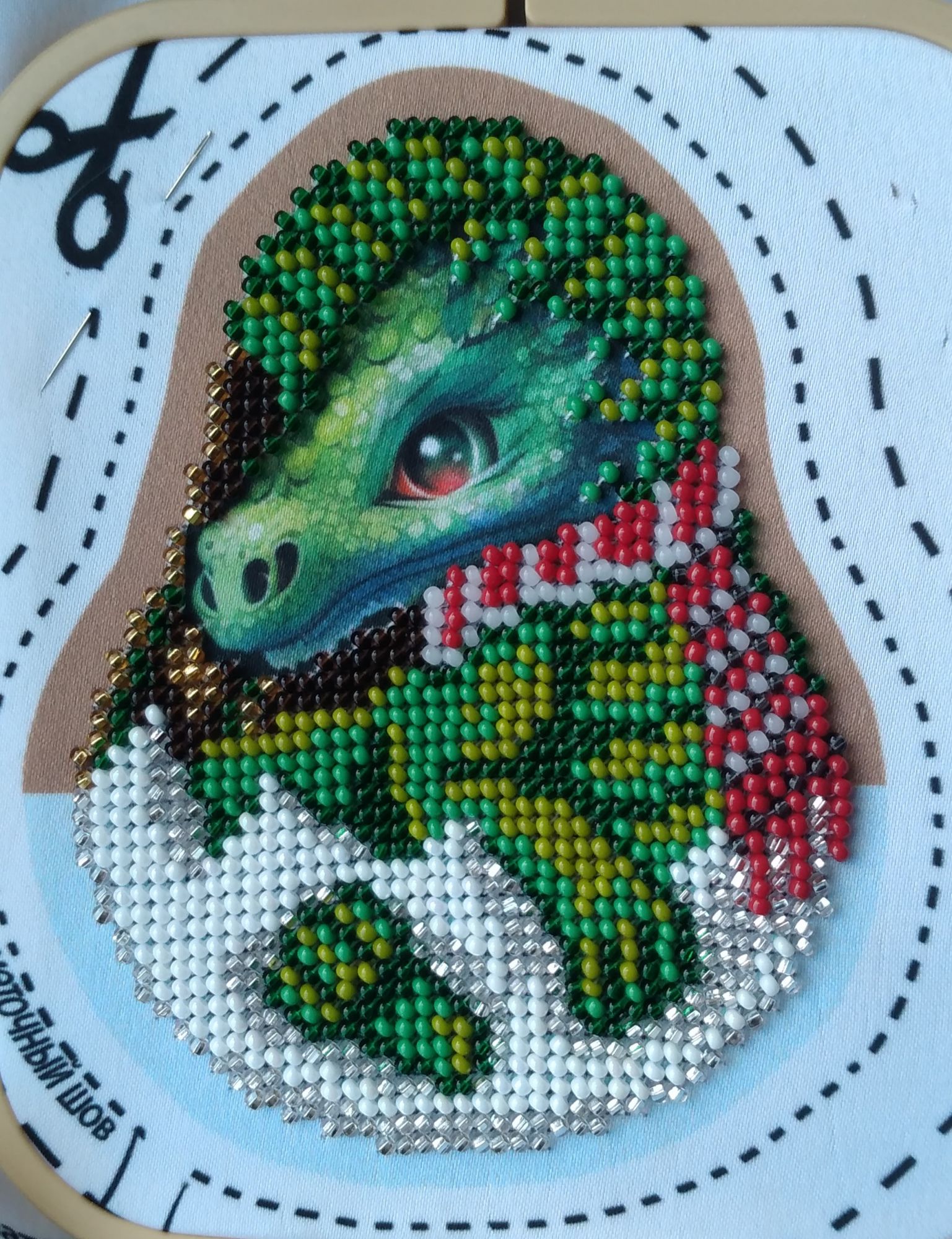 7 января Лицевая часть дракона готова. в гайку Ух и помучил меня подбор бисера на шарф. Сначала я попробовала вышить изумрудным, он сливался с основным зелёным, потом хотела вышить его синим с серебристой сердцевинкой, но такого бисера у меня в запасах не оказалось. Нашла такой бисер в сове-матрёшке от радуги бисера. Побоялась, что если возьму его, на совушку может не хватить. В жёлто-черной гамме шарф напоминал бы рекламу Билайн, оранжевый просто мимо, черно-белый скучно и непразднично. Поэтому вернулась к исходнику, но нашла более подходящий оттенок красного. Сверху подбор производителя, бисер из набора. не в гайку Снизу мой вариант. не в гайку В итоге красный очень похож на цвет бисера, используемый в отшиве игрушки, которая размещена на обложке набора. А может это он и есть. В целом мне нравится как получилось. Теперь процесс пойдёт шустрее. Marusya1978, Забава_, Aleksacha и 12 других сказали спасибо Поделиться сообщением Ссылка на сообщение