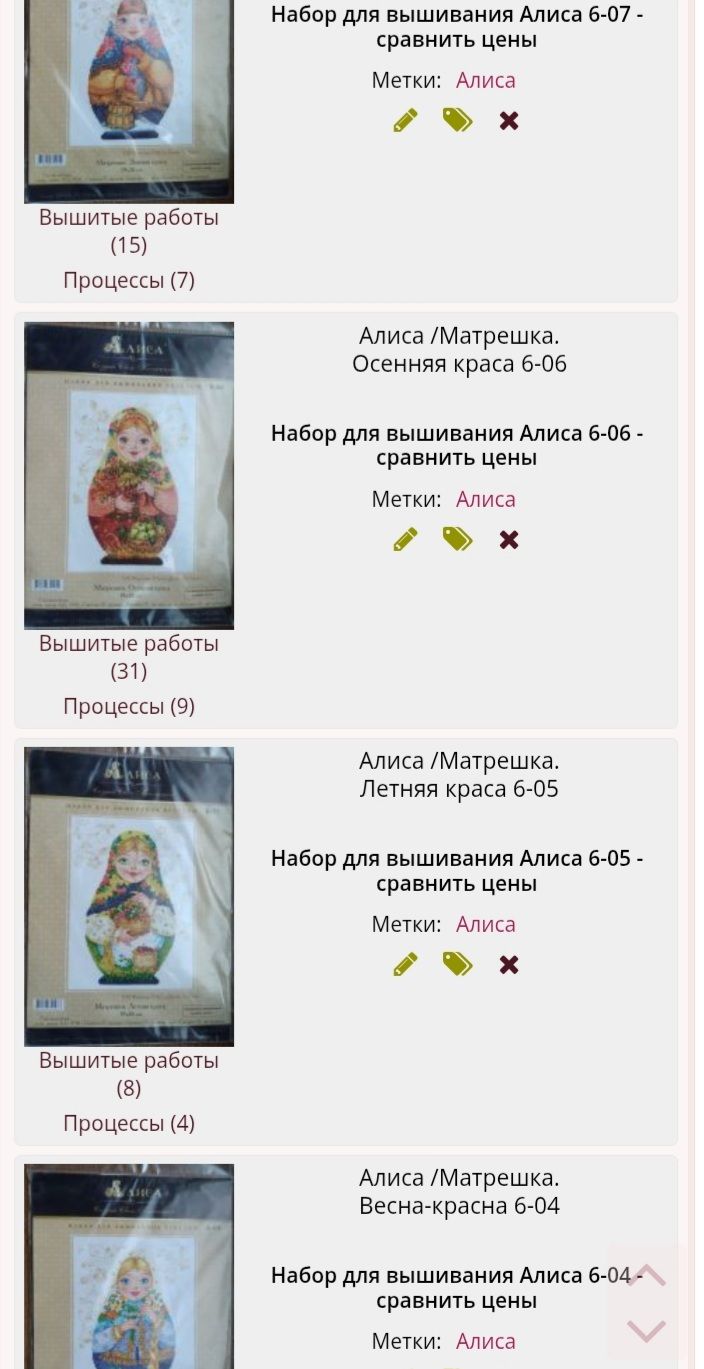 13 мая 15.04.2025 в 00:34, relax_cross_stitch сказал(а): И собрала всю коллекцию стареньких талисманов, чему несказанно рада. Их всего 13. Мне не хватало этих двух. С пополнением коллекции))) Очень понимаю, как сразу хорошо, когда выходит дособрать до полного комплекта то, что и не чаялось уже найти))) 16.04.2025 в 16:12, relax_cross_stitch сказал(а): Спонсор моего невышиванца ремонт+переезд)) Мысленно я вышиваю по несколько часов в день, а в реальности очень малооо. Но я надеюсь что скоро время найдётся и я оторвусь по полной) Даа, ремонт дело обстоятельное Как по ощущениям, близко ли к точке "его можно только прервать"?))) 20.04.2025 в 12:07, relax_cross_stitch сказал(а): Фото для сравнение размера матрёшки и яйца. И все вместе. С финишем))) Получилось долго не задерживаться со сборкой))) 27.04.2025 в 03:14, relax_cross_stitch сказал(а): Сравнение нового талисмана и талисмана из старой коллекции, у новых размер значительно меньше. Интересно, почему так сильно размер поменяли?) 11.05.2025 в 22:15, relax_cross_stitch сказал(а): В этот раз это обереги от радуги бисера. Вышиваются они ювелирным бисером. Ювелирный --- это как петит на МХ?) Он не страшный тогда, особенно если крестом пришивать не надо))) Вот это прямо муторно, совсем уж в час по чайной ложке получается... Ты же вроде пробовала МХ шить? vasilisa-1977 и Marusya1978 сказали спасибо Поделиться сообщением Ссылка на сообщение