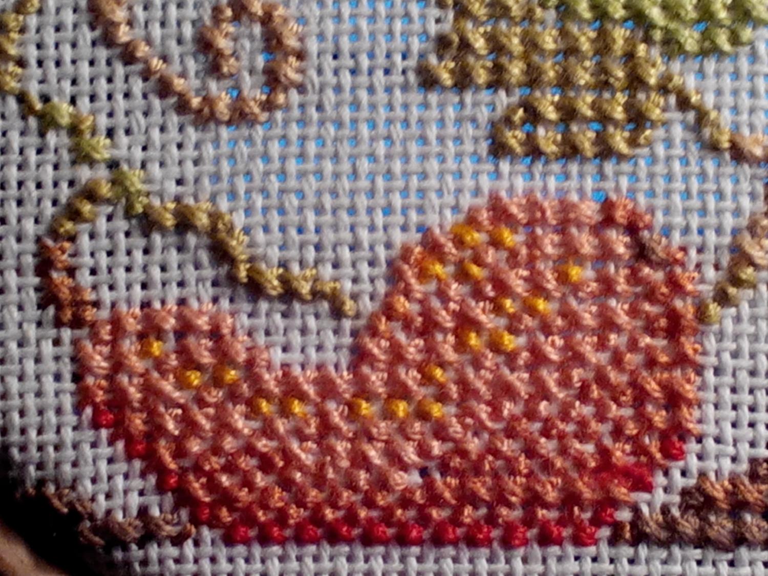 27 декабря 2013 Теперь закрепим материал и продолжим уроки. - Никаких узлов! - Стараться не прятать кончики темных нитей под стежки, выполненные светлыми нитями. Иногда, правда, это требование выполнить невозможно, например, единичный темный стежок глаза на светлом лице, и тогда нужно внимательно смотреть, чтобы спрятанный кончик не просвечивал на лицевую сторону. -При окончании вышивки нитью закреплять ее не менее, чем под 3-4 стежками на изнаночной стороне. - Уже закрепленный кончик нити обрезать вплотную к ткани( или оставить 0,5см кончик для гарантии) иначе к концу работы ваша изнанка будет похожа на махровое полотенце. -Если вы вышиваете четным количеством нитей,то стараться закреплять нить в начале вышивки, используя метод "петля". Стремление к красивым и ровным крестикам, как и к красивой изнанке, может только вызывать уважение. Конечно, само понимание poвных крестиков приходит не сразу, но, вкладывая душу в вьшивку, не стоит забывать и о технике. Добиться идеальных крестиков будет легче, если придерживаться некоторых правил: - Не использовать слишком длинную нить. - Внимательно следить за тем, чтобы верхние стежки были всегда направлены в одну сторону ( "/" - нижний стежок," \' - верхний стежок). ГЛАВНЫЙ СЕКРЕТ В ТОМ , ЧТОБЫ С ИЗНАНОЧНОЙ СТОРОНЫ ЛИНИИ КРЕСТИКОВ РАСПОЛАГАЛИСЬ ВЕРТИКАЛЬНО и параллельно друг к другу!!! Так правильно складывается крестик! Если с изнанки у вас линии будут вертикальные и горизонтальные, то одни крестики сложатся в длину, а другие в ширину, и вышивка будет выглядеть не аккуратной и кривой. Основное правило — верхние стежки должные лежать в одном направлении! - При вышивке нить скручивается, и это значительно ухудшает внешний вид крестиков. Дайте игле свободно повисеть несколько секунд, и нить раскрутится сама. - При вышивке любым количеством нитей, кроме одной, нужно следить за тем, чтобы ниточки ложились ровно, не перекручиваясь между собой. Если крестики одного цвета лежат недалеко друг от друга, в пределах 3 см, нитку не обрезают, а делают протяжки на изнанке, которые впоследствии прикрывают стежками. Вот некоторые примеры лица и изнанки Melissa299, LiLa, ole4k@ и 8 других сказали спасибо Поделиться сообщением Ссылка на сообщение
