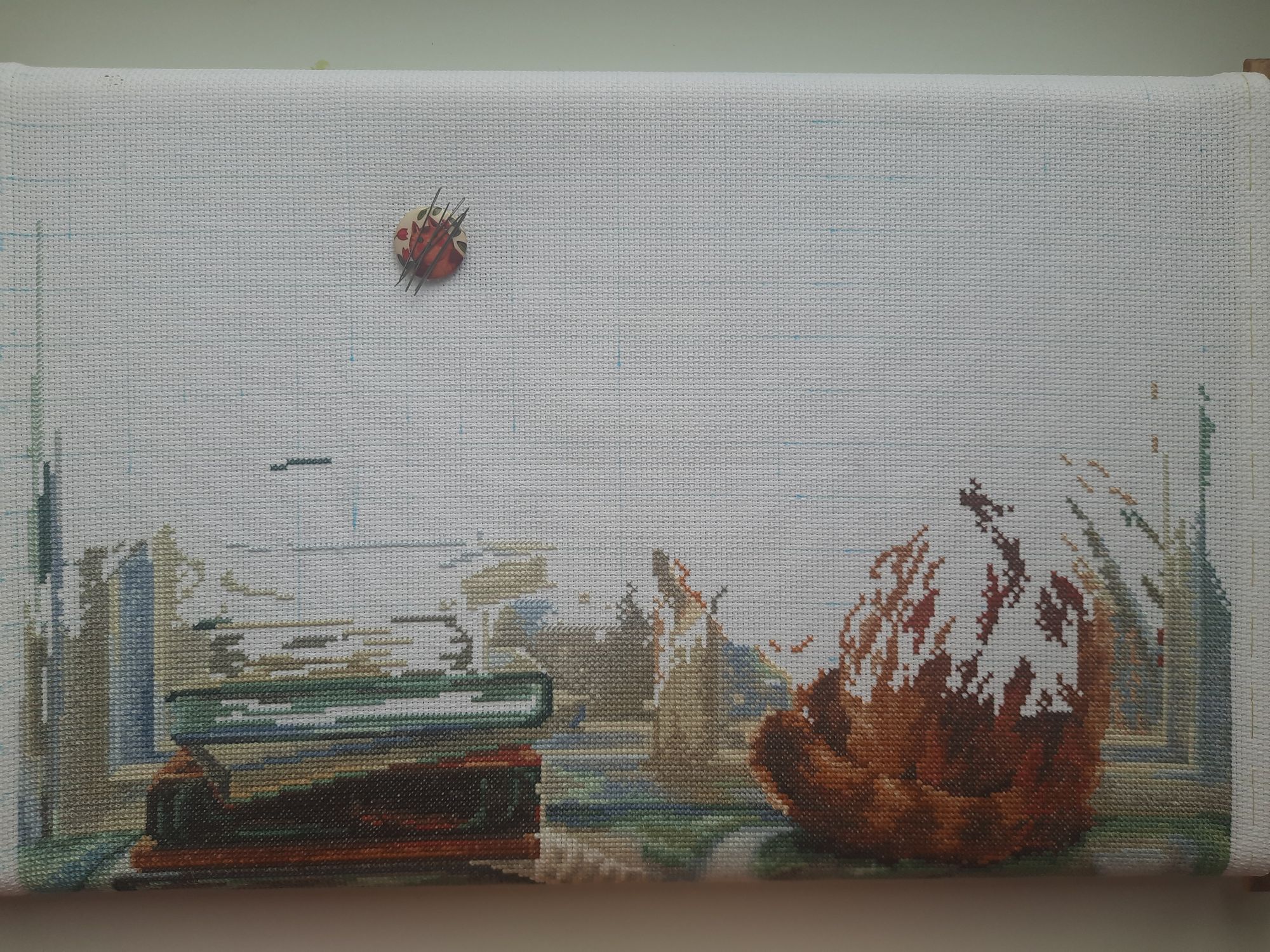 23 июня Сделала новый кадр, он загрузился Получается слегка приглушенно, будем считать, что это утренняя дымка ) Очень понравилось крутить розочки, легко и красиво. С остальными шовчиками поняла, что их лучше шить на 27 равномерке, а у меня 32 - вышивка перекрывает основу, мне сложно считать. В кое-каких элементах сбилать, получились кривенькие. Штош. Зато я вышиваю ) Marusya1978, PariPassu, Tatiana Ch. и 6 других сказали спасибо Поделиться сообщением Ссылка на сообщение