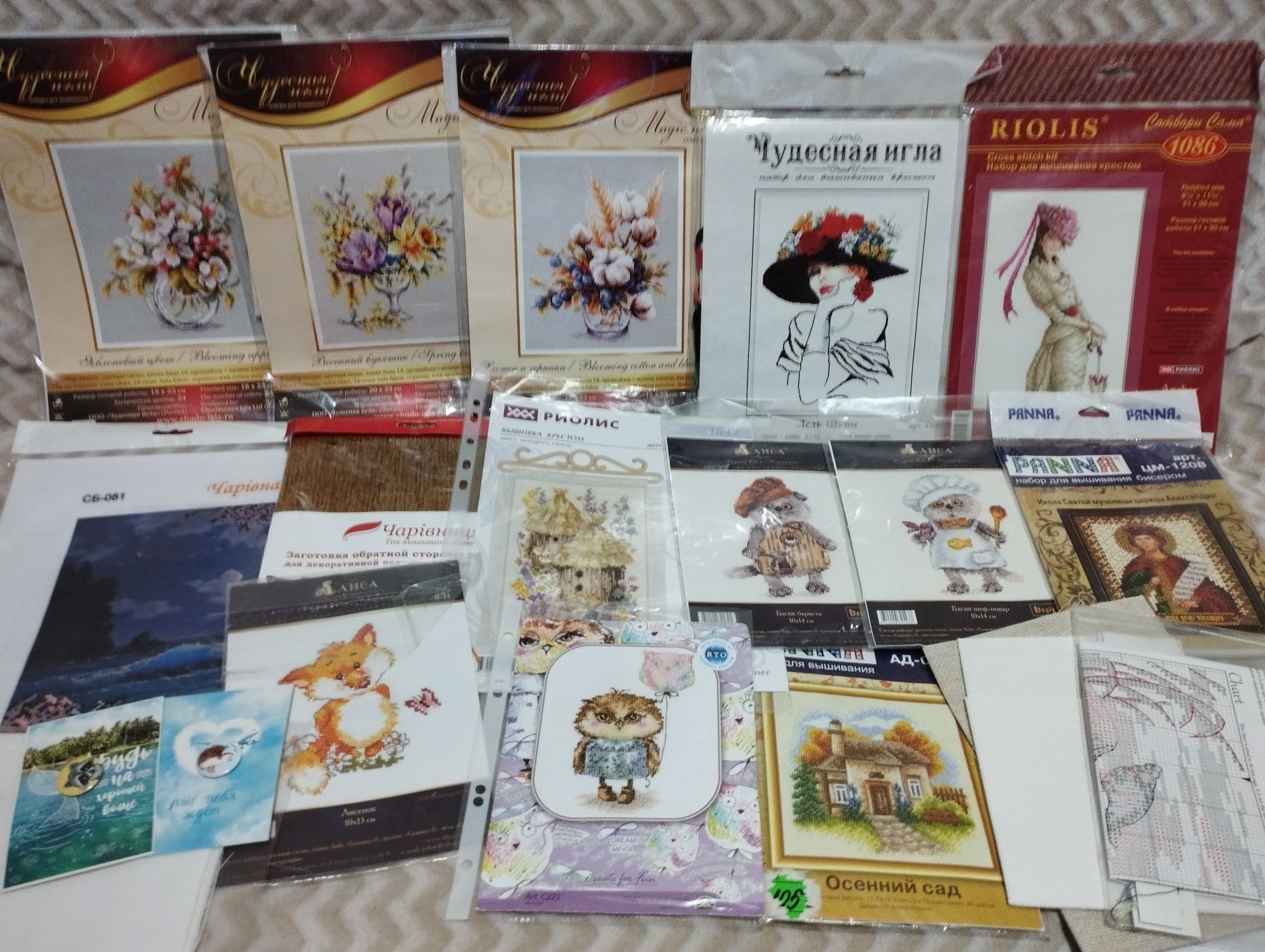3 октября 2023 Фух! Закончила! Два вечера разбора и обладания сокровищами))) К виртуальному разбору по видеосвязи пригласила маму, она тоже вышивает. Итак, общий вид: Подробно. Всяко-разно: По магнитику себе и маме, мне канву и задник для подушки, маме основу для вышивки бисером с красивой картиной. Для мамы. Она специализируется на вышивке дам и икон: Для себя разные симпатичные остатки + схема от Дим, которая не вошла в отдельные фото: Признаюсь, кое-какие из этих наборов давно очень нравились, но не было возможности купить или откладывала на потом, и теперь они у меня есть таким чудесным образом Спасибо большое вам, девочки! От меня дальше поедет эта кучка: Ксен40, Касси, Пумочка-13 и 21 других сказали спасибо Поделиться сообщением Ссылка на сообщение