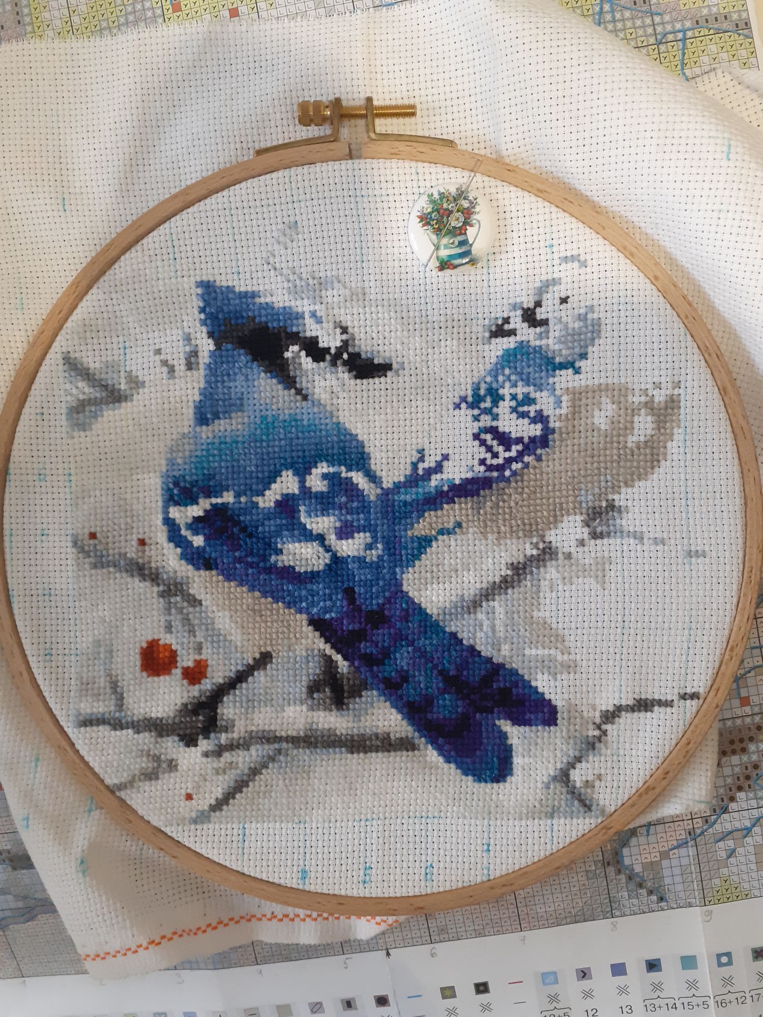 5 января Я сейчас активно занялась сойками, так не заслужено отставленными Было на данный момент в гаечку, пожалуйста Осталось немного хохолок вышить, но это нужно передвинуть пяльца. Немного пошью сугробы и ветки, потом передвину и останется только верхушка, где большие участки идут одним цветом. Это в птичках мешанина Fiona2025, Auria, Охотница и 11 других сказали спасибо Поделиться сообщением Ссылка на сообщение