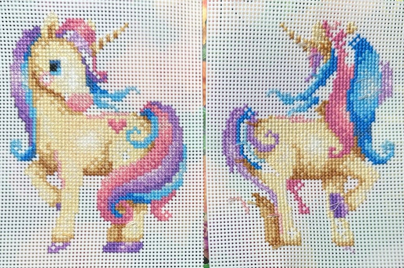 13 июня 2023 Всем привет! Недели стоят невышивальные (у меня куча студентов в лабе, работаю с утра до ночи), но что уж наваяла... 1. Вышить 300 крестиков самым темным цветом в сюжете (или самым темным из оставшихся). "White Peonies" от Dimensions было стало 303 стежка бэкститча сине-фиолетовым цветом. (Да! Честно! Зуб даю! Вот это вот - 303 стежка!) 2. Вышить 150 крестиков на сюжете: Примитив/ Сэмплер/ Техника/ Стимпанк. "Coffee Break" от Design Works было стало 227 крестиков в категории "сэмплер". 3. Вышить 200 крестиков на темной основе. "Night Magic" от Riolis было стало 103 стежка бэкститча на черной канве - и все кончилось. Поэтому: "Twilight Silhouette" от Dimensions было стало 167 полукрестиков = 83.5 крестика + 27 крестиков = 110.5 условных крестиков (на темно-синей канве). Всего 213.5 условных крестиков. 4. Вышить фрагмент, в котором встречается от 10 крестиков одного цвета подряд (по горизонтали или по вертикали). Всего на этом процессе – 100 крестиков. "Purple & Pink Magic Unicorn" от "Жар-Птица" было стало На задней ноге единорога (правая половинка) 10 крестиков по вертикали светло-коричневым цветом. Всего 102 крестика. Праздничный рывок. Я не нарочно, просто совпало (с), но я ужасно рада, что мне не придется считать крестики в этом кошмаре. Финиш. "Night Magic" от Riolis Оно с виду жуткое, но я его постираю.... и поглажу.... когда-нибудь.... EvaMari, Snezka, Darira и 19 других сказали спасибо Поделиться сообщением Ссылка на сообщение