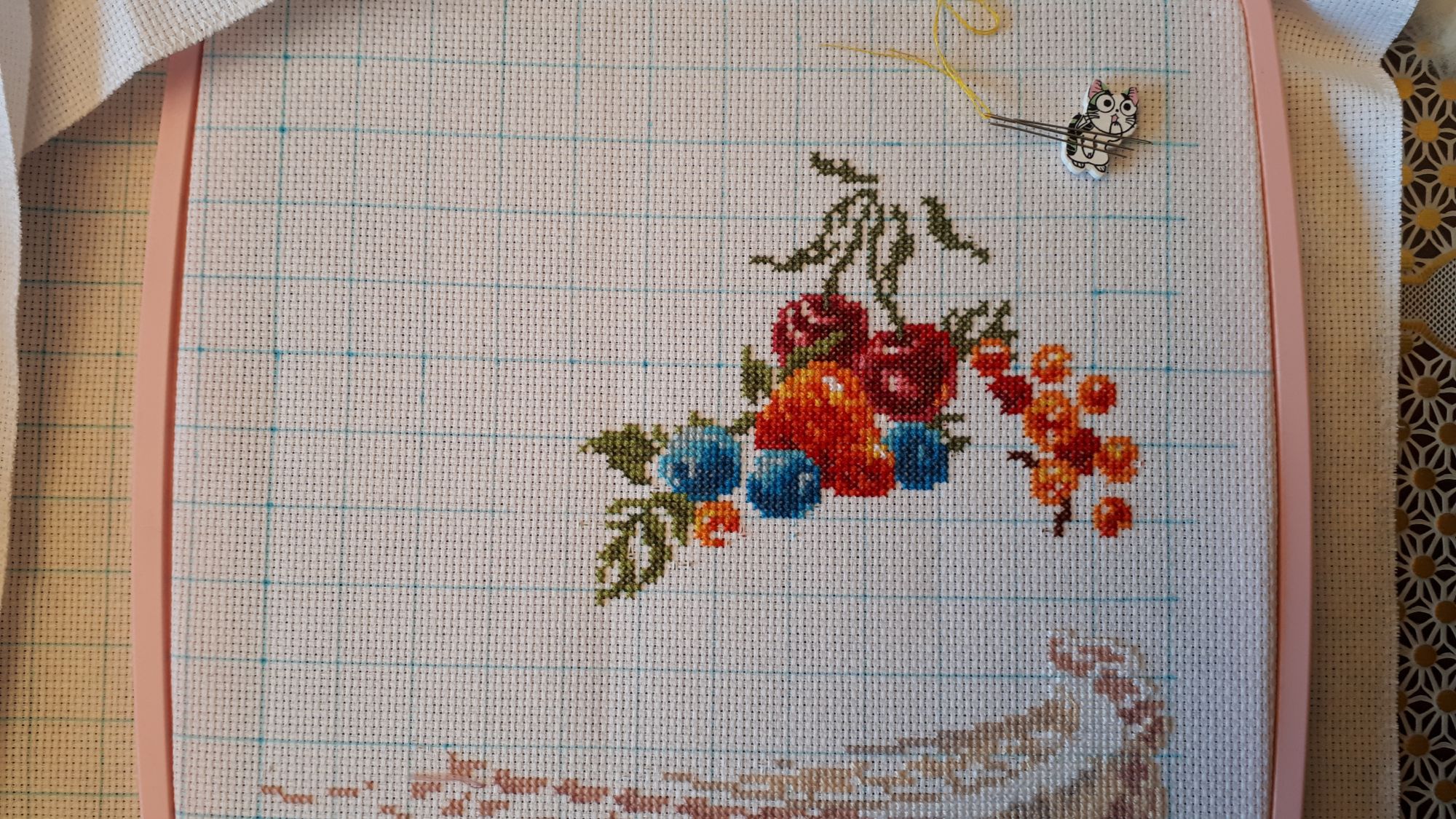 27 июня 2023 Всем привет! Снова понедельник, снова отчет... 1. Вышить 250 крестиков одним или сочетанием цветов: Желтый/Оранжевый/Розовый/Красный. "Have a Sweet Dream!" от Alisa было стало 266 крестиков желтым. 2. Вышить 100 крестиков на сюжете: Пейзаж (любой, в том числе с водоемом, строениями, людьми и животными). "Overlook Cafe" от Dimensions было стало 166 полукрестиков = 83 крестика + 22 крестика = 105 условных крестиков. 3. Вышить 100 крестиков на самом крупном каунте из имеющихся. "Meow-Zen" от Riolis было стало Аида 11-го каунта. 112 крестиков. 4. Вышить 100 крестиков на фоне или большой однообразный фрагмент, желательно одним цветом. "Have a Sweet Dream!" от Alisa было стало 210 полукрестиков = 105 условных крестиков. На этом фон закончился. Совсем. Olga@Olga, semsot, error425 и 21 других сказали спасибо Поделиться сообщением Ссылка на сообщение