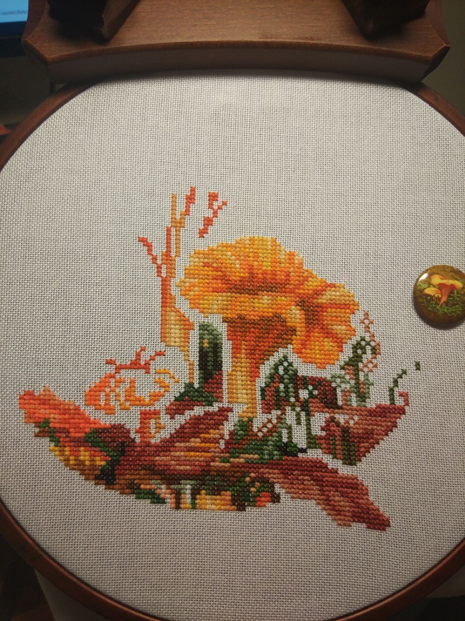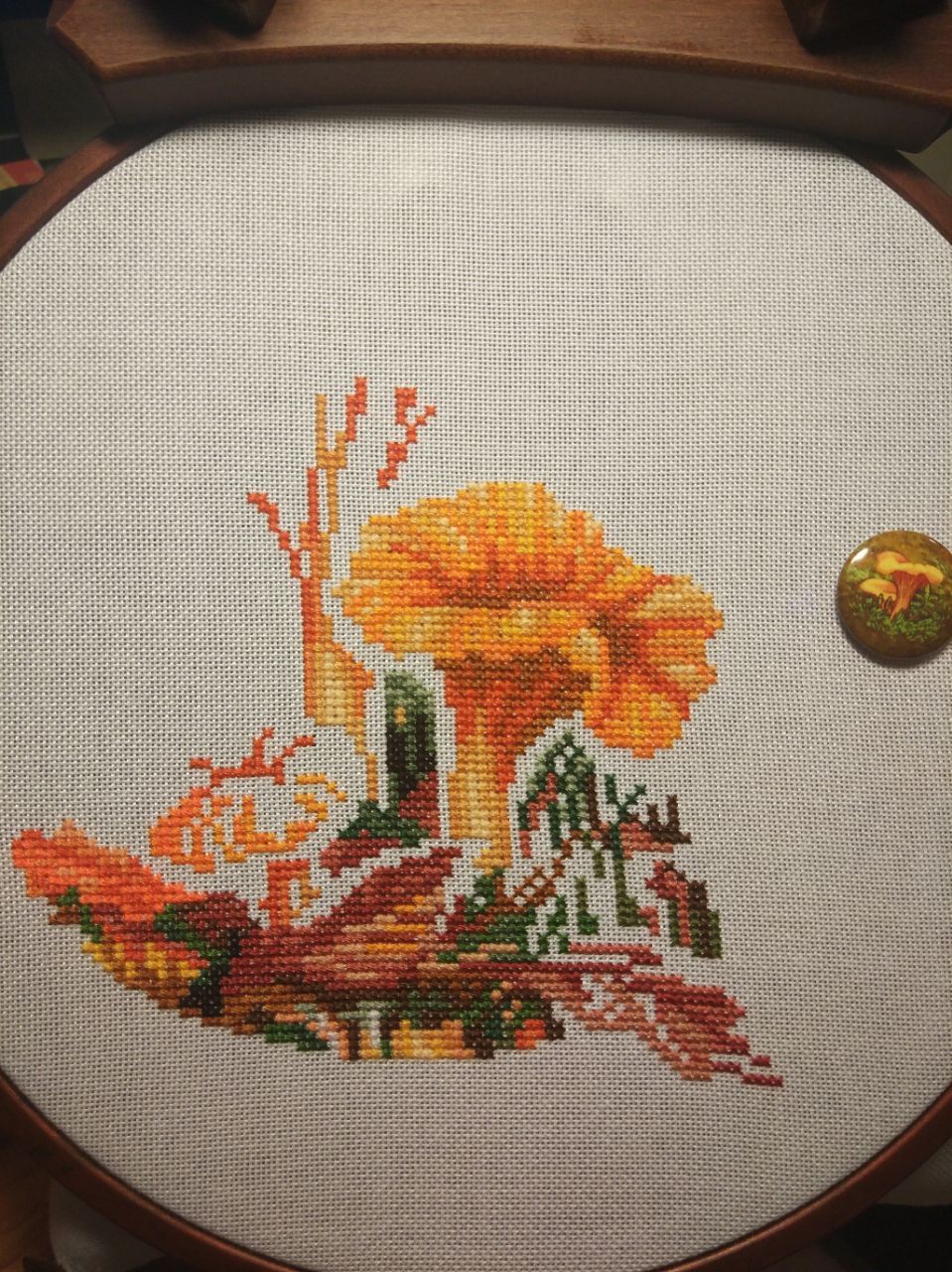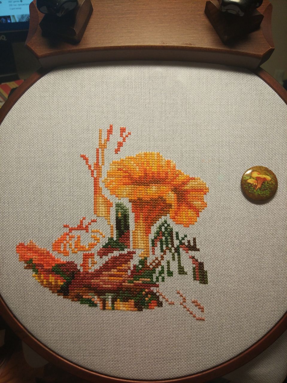 10 октября 2022 Всем привет! Несу отчёт за 6-ю неделю) 1. Вышить 150 крестиков одним или несколькими из цветов: белый, серый, черный +167 тёмно-серым цветом на котёнке от Новой слободы. 2. Сюжет: «Осенние краски». Вышить 100 крестиков на любом сюжете, так или иначе напоминающем об осени За осень у меня традиционно отвечают грибы от Жар-птицы) Вышила +215 на лисичке: 3. Вышить 100 крестиков НЕ на ткани для вышивки. Это может быть: пластик, дерево, габардин+бисер или гладь, вышивка на одежде и т. п. + Эксперимент Продвинула ещё свою игрушку-часики от Волшебной страны. Всего на процессе +892, из них +351 крестик жёлтым цветом - цвет огня. 4. Вышить 50 крестиков-одиночек. Можно – разбросанные небольшие группы крестиков на большой площади На сюжете от Химеры продолжаю закрывать дырочки, +81в пересчёте с полукреста на полный крест. Исследования +2364 на пиве от Марьи Искусницы. Первое фото - "было", остальные - "стало", т.к. переставляла пяльцы на работе. Касси, Вега, AliraRo и 25 других сказали спасибо Поделиться сообщением Ссылка на сообщение