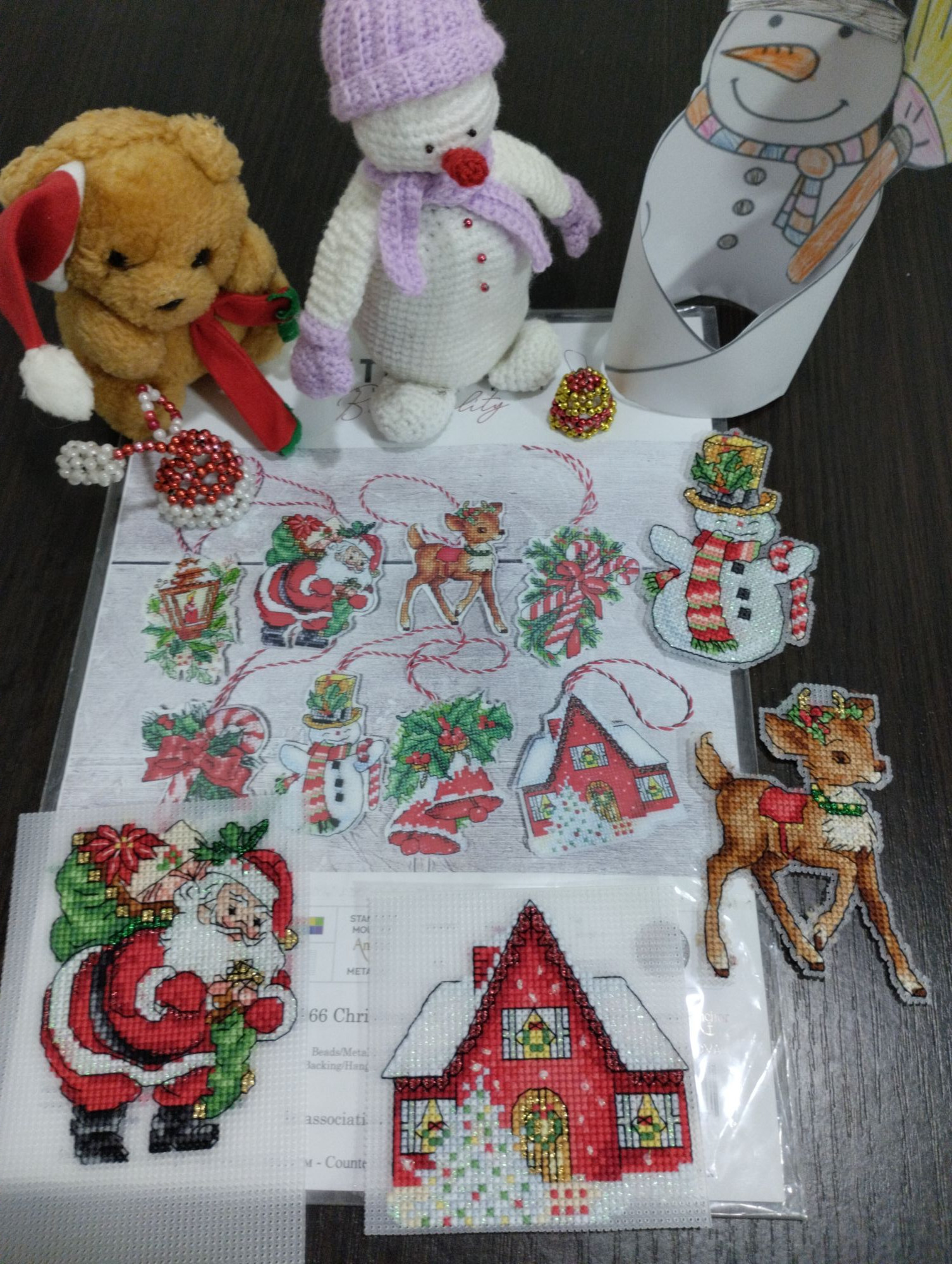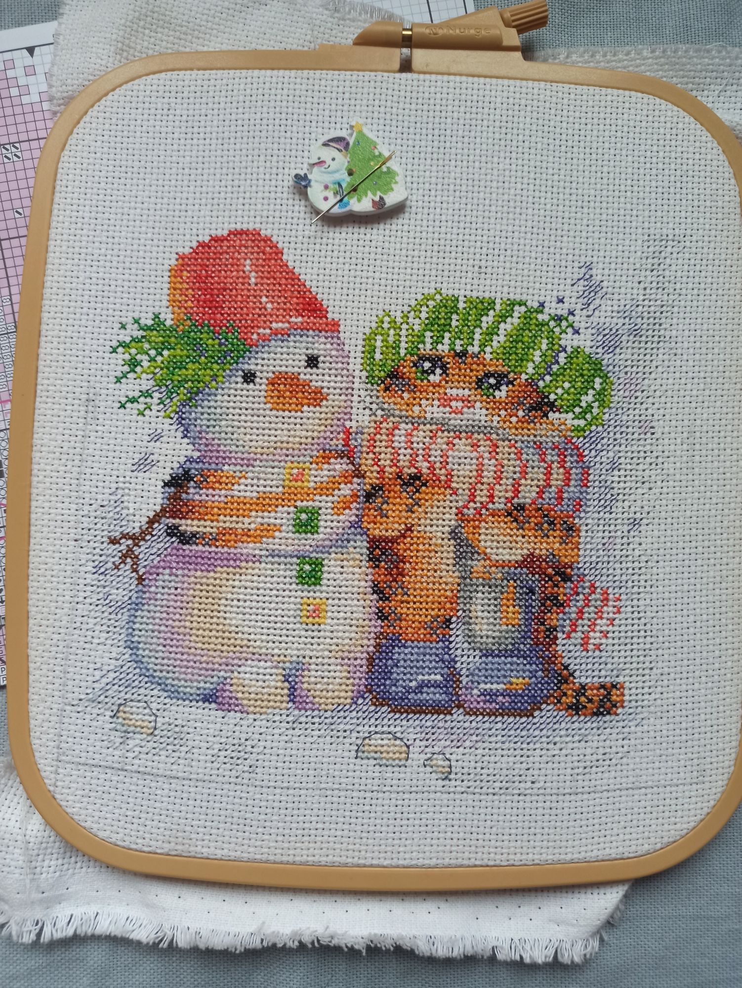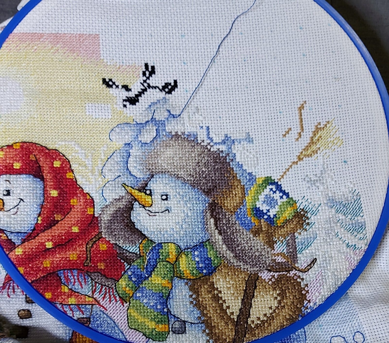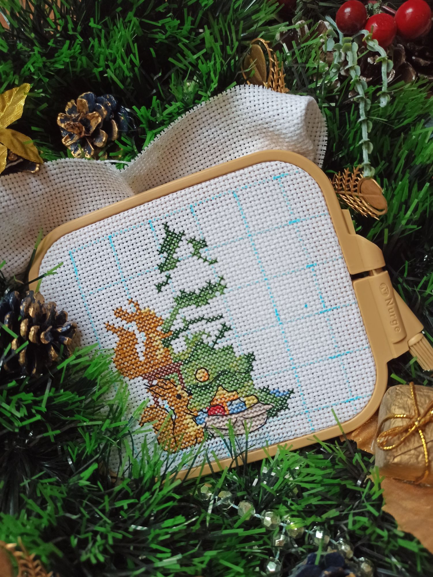 28 ноября 2022 Добрый вечер, милые девочки! Моя тринадцатая неделя Великих Открытий! Полёт нормальный) Задание 1. Сочетание голубого, синего. Рождественский Bell Pull. Вышито 272 крестиков. Было: Стало: Задание 2. Натюрморт, ягоды, плоды. Мережка, натюрморт с рябиной. Рябина - вкусные, нежные и декоративные плоды) Правда, в картине мне ещё только предстоит до них добраться. Вышито крестиков: 275 Было: Стало: Задание 3. Атмосферное фото текущего процесса. Композиция может показаться наивной. Кодовое название: «Наряжаем птичье деревце вместо ёлки или птицы тоже празднуют Новый Год». В выполнении задания участвовали дети, проявили инициативу мне помочь, и было очень важно принять и опубликовать задание именно таким, как получилось в нашем сотрудничестве)) Eщё этими фотографиями мы показали вручную расписанные шарики и бисерные снежинки, выполненные на днях к НГ- 2023. Задание 4. Любимый производитель, дизайнер. Collection D Art - одна из любимых мною фирм- производителей. ПЛЮС ЭКСПЕРИМЕНТ, на ярком и красочном сюжете, обосновать. Вышивала сочетанием нескольких коричневых оттенков. Благодаря свойствам пряжи и окрашиванию именно этого сорта (отличного от привычного мулине), вышивка акриловой шерстью очень яркая, особенно это видно в реальной жизни под разными видами освещения. Блестящие, насыщенные, даже слишком яркие краски. У одной моей подруги любимый цвет- коричневый, я не верила и смеялась. Когда стала вышивать эту подушку с медведем, много раз вспомнила эту подругу, оказывается, коричневый может быть и очень ярким, и блестеть, и быть любимым. Кстати, блеск коричневых нитей лично мне даёт и ассоциации с благородными металлами, и даже с ювелирными изделиями. Ещё, красочность моей вышивке придаёт не только расхваленный коричневый, но и очень яркий сине-голубой фон, сказочный зимний)). На данный момент это самый яркий мой процесс. Краски слишком насыщенные, слишком яркие, но в реальной жизни будут придавать хорошего настроения (подушка- почти игрушка, тискательная вещь) и для данного задания очень подходят. Вышито крестиков: 257 Было: Стало: ЭСТАФЕТА Cross Stitch Collectibles, Fractal Прокрутила раму и освободила поле для деятельности. Нижнюю половину вышитого мы теперь увидим только тогда, когда сниму готовую картину с рамы, т.е. нескоро. На всякий случай напомню картинку того, что должно получиться. Гаечка в моём профиле есть: Вышито к эстафете ровно 300 крестиков Было: Стало: ИССЛЕДОВАНИЕ LetiStitch 980, Collete s Collection продолжаю. Перевод полукрестиков в крестики ведётся при подсчёте строго, согласно правилам игры. Ещё присутствуют крестики бежевые по бежевому, которые плохо фотографируются, но прилежно вышиты. Вышито 1037 крестиков. Было: Стало: tessykat, Snake Gagarin, Snezka и 25 других сказали спасибо Поделиться сообщением Ссылка на сообщение