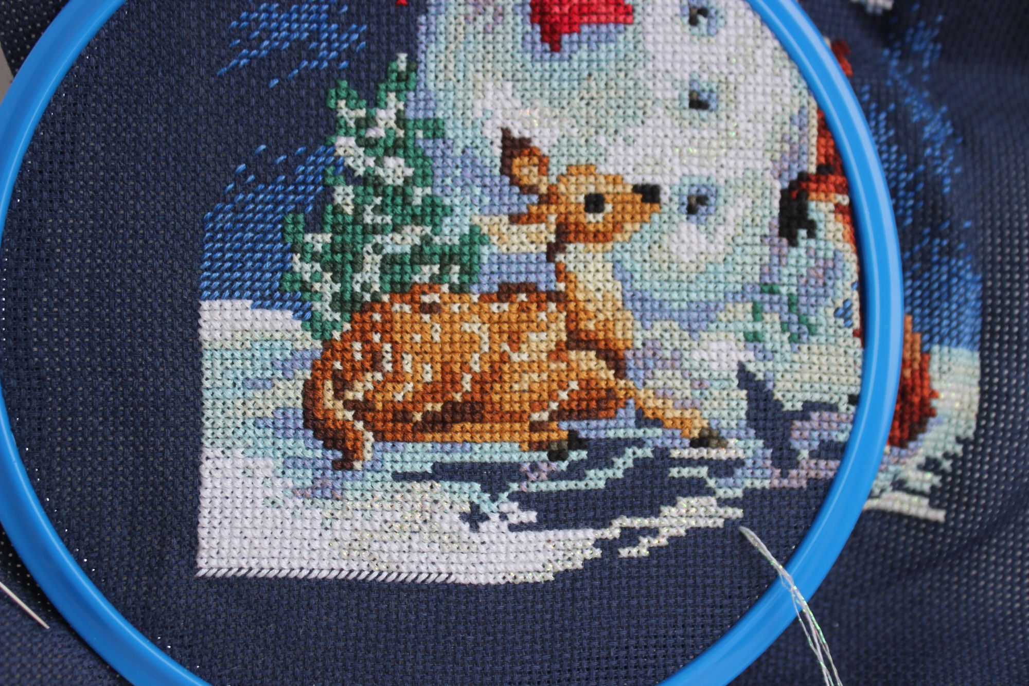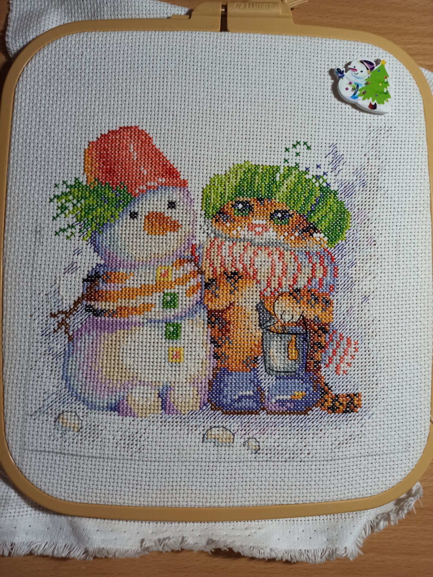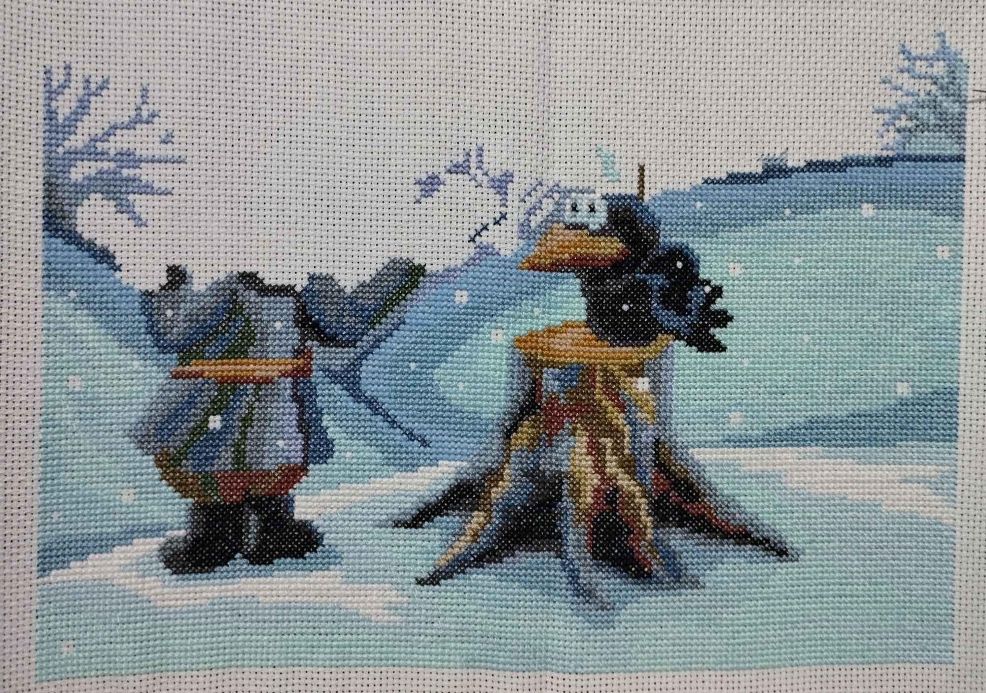 28 ноября 2022 Добрый вечер, милые девочки! Моя тринадцатая неделя Великих Открытий! Полёт нормальный) Задание 1. Сочетание голубого, синего. Рождественский Bell Pull. Вышито 272 крестиков. Было: Стало: Задание 2. Натюрморт, ягоды, плоды. Мережка, натюрморт с рябиной. Рябина - вкусные, нежные и декоративные плоды) Правда, в картине мне ещё только предстоит до них добраться. Вышито крестиков: 275 Было: Стало: Задание 3. Атмосферное фото текущего процесса. Композиция может показаться наивной. Кодовое название: «Наряжаем птичье деревце вместо ёлки или птицы тоже празднуют Новый Год». В выполнении задания участвовали дети, проявили инициативу мне помочь, и было очень важно принять и опубликовать задание именно таким, как получилось в нашем сотрудничестве)) Eщё этими фотографиями мы показали вручную расписанные шарики и бисерные снежинки, выполненные на днях к НГ- 2023. Задание 4. Любимый производитель, дизайнер. Collection D Art - одна из любимых мною фирм- производителей. ПЛЮС ЭКСПЕРИМЕНТ, на ярком и красочном сюжете, обосновать. Вышивала сочетанием нескольких коричневых оттенков. Благодаря свойствам пряжи и окрашиванию именно этого сорта (отличного от привычного мулине), вышивка акриловой шерстью очень яркая, особенно это видно в реальной жизни под разными видами освещения. Блестящие, насыщенные, даже слишком яркие краски. У одной моей подруги любимый цвет- коричневый, я не верила и смеялась. Когда стала вышивать эту подушку с медведем, много раз вспомнила эту подругу, оказывается, коричневый может быть и очень ярким, и блестеть, и быть любимым. Кстати, блеск коричневых нитей лично мне даёт и ассоциации с благородными металлами, и даже с ювелирными изделиями. Ещё, красочность моей вышивке придаёт не только расхваленный коричневый, но и очень яркий сине-голубой фон, сказочный зимний)). На данный момент это самый яркий мой процесс. Краски слишком насыщенные, слишком яркие, но в реальной жизни будут придавать хорошего настроения (подушка- почти игрушка, тискательная вещь) и для данного задания очень подходят. Вышито крестиков: 257 Было: Стало: ЭСТАФЕТА Cross Stitch Collectibles, Fractal Прокрутила раму и освободила поле для деятельности. Нижнюю половину вышитого мы теперь увидим только тогда, когда сниму готовую картину с рамы, т.е. нескоро. На всякий случай напомню картинку того, что должно получиться. Гаечка в моём профиле есть: Вышито к эстафете ровно 300 крестиков Было: Стало: ИССЛЕДОВАНИЕ LetiStitch 980, Collete s Collection продолжаю. Перевод полукрестиков в крестики ведётся при подсчёте строго, согласно правилам игры. Ещё присутствуют крестики бежевые по бежевому, которые плохо фотографируются, но прилежно вышиты. Вышито 1037 крестиков. Было: Стало: tessykat, Snake Gagarin, Snezka и 25 других сказали спасибо Поделиться сообщением Ссылка на сообщение