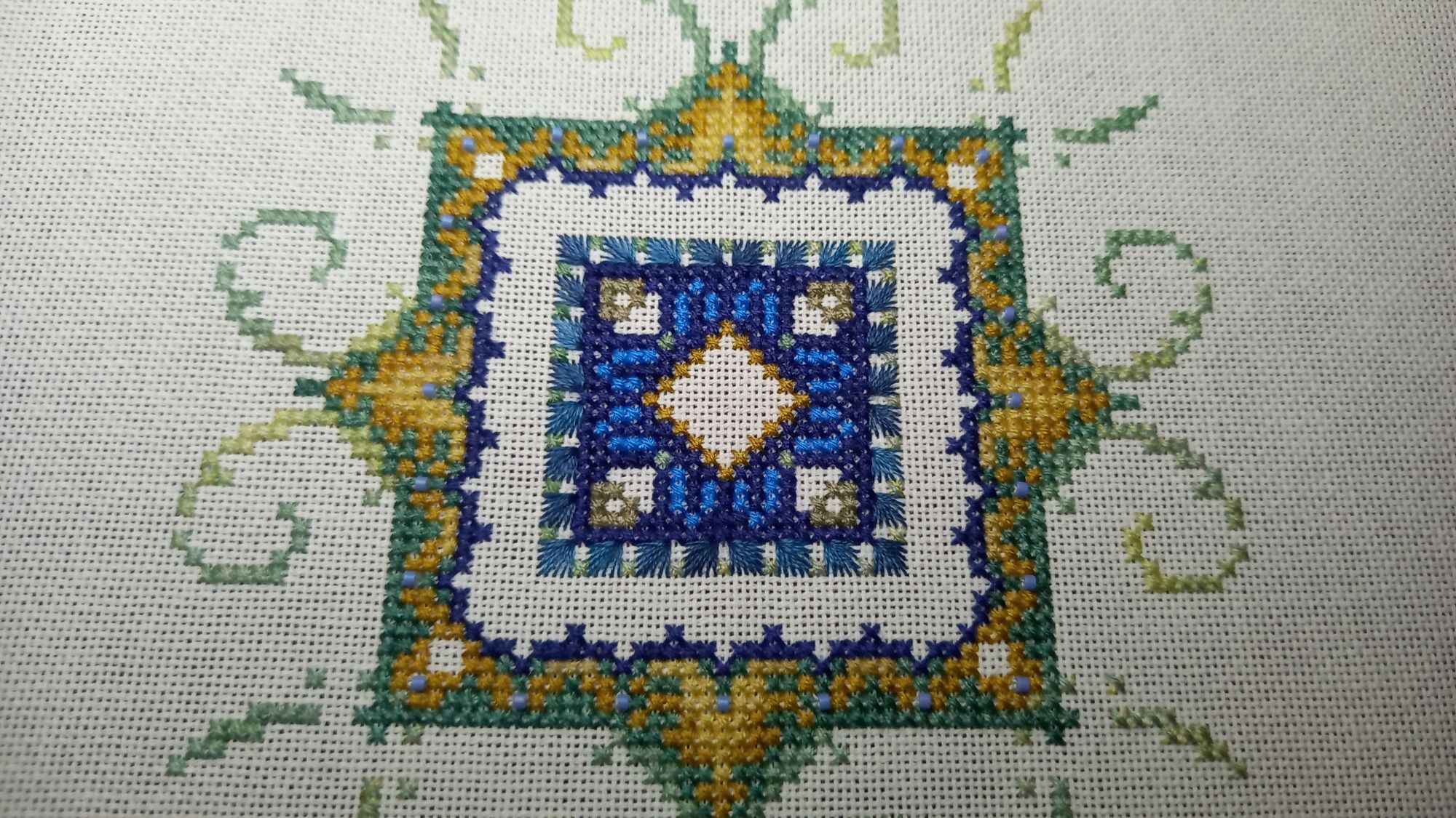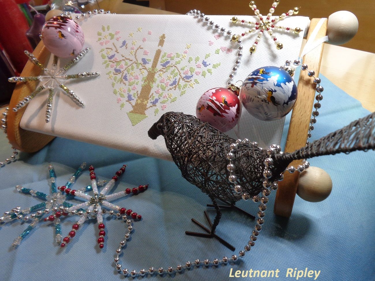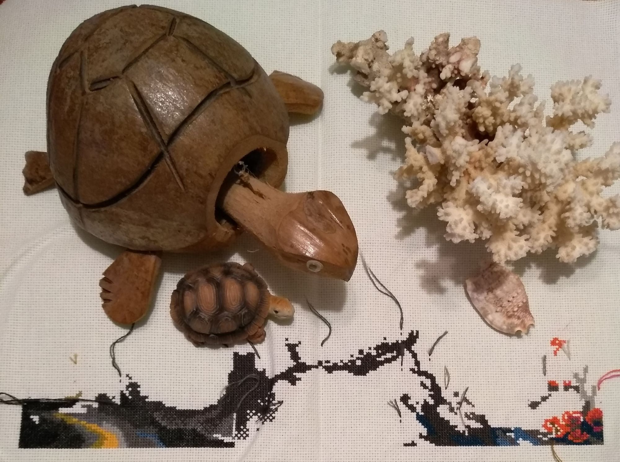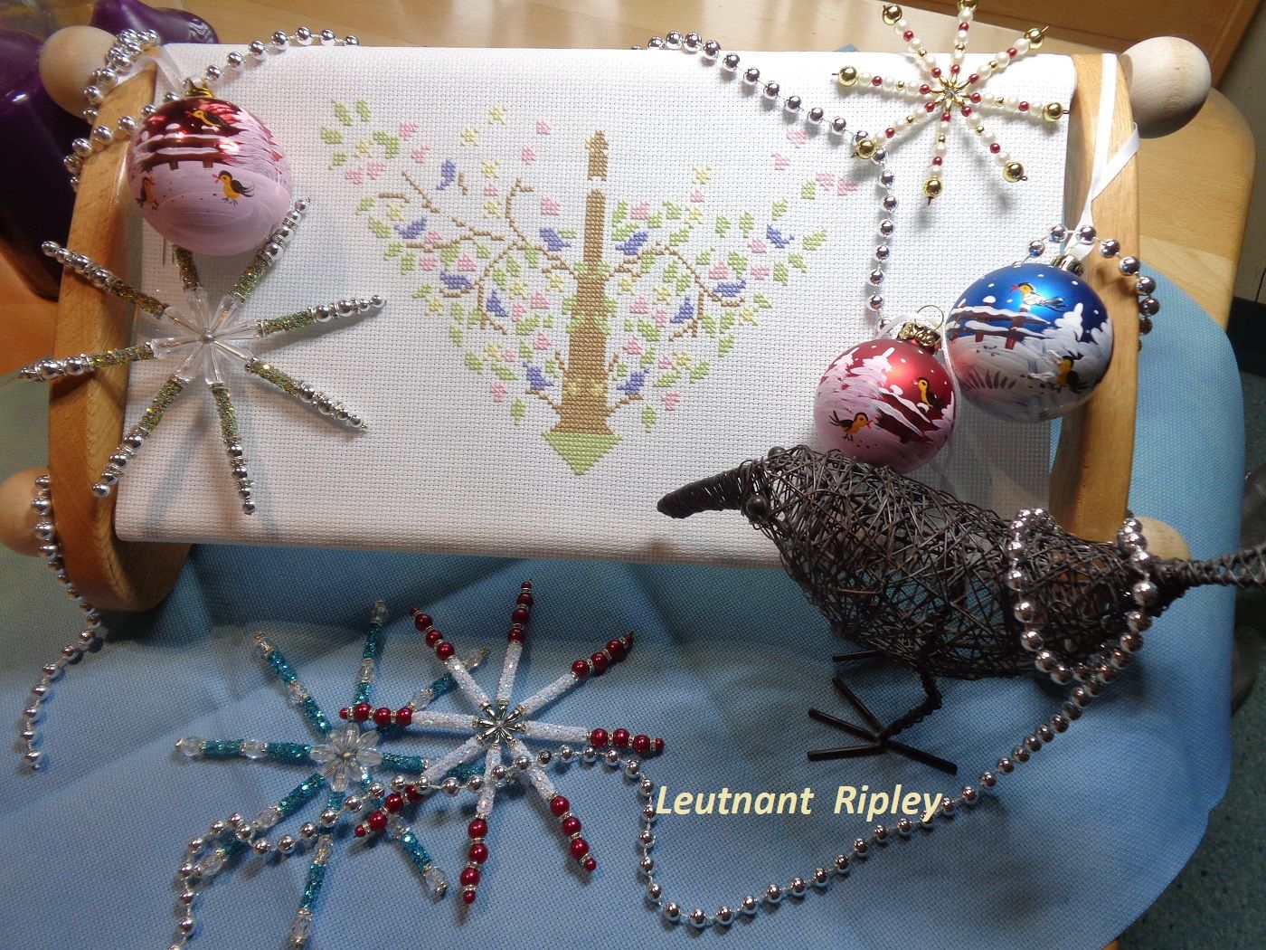 28 ноября 2022 Добрый вечер, милые девочки! Моя тринадцатая неделя Великих Открытий! Полёт нормальный) Задание 1. Сочетание голубого, синего. Рождественский Bell Pull. Вышито 272 крестиков. Было: Стало: Задание 2. Натюрморт, ягоды, плоды. Мережка, натюрморт с рябиной. Рябина - вкусные, нежные и декоративные плоды) Правда, в картине мне ещё только предстоит до них добраться. Вышито крестиков: 275 Было: Стало: Задание 3. Атмосферное фото текущего процесса. Композиция может показаться наивной. Кодовое название: «Наряжаем птичье деревце вместо ёлки или птицы тоже празднуют Новый Год». В выполнении задания участвовали дети, проявили инициативу мне помочь, и было очень важно принять и опубликовать задание именно таким, как получилось в нашем сотрудничестве)) Eщё этими фотографиями мы показали вручную расписанные шарики и бисерные снежинки, выполненные на днях к НГ- 2023. Задание 4. Любимый производитель, дизайнер. Collection D Art - одна из любимых мною фирм- производителей. ПЛЮС ЭКСПЕРИМЕНТ, на ярком и красочном сюжете, обосновать. Вышивала сочетанием нескольких коричневых оттенков. Благодаря свойствам пряжи и окрашиванию именно этого сорта (отличного от привычного мулине), вышивка акриловой шерстью очень яркая, особенно это видно в реальной жизни под разными видами освещения. Блестящие, насыщенные, даже слишком яркие краски. У одной моей подруги любимый цвет- коричневый, я не верила и смеялась. Когда стала вышивать эту подушку с медведем, много раз вспомнила эту подругу, оказывается, коричневый может быть и очень ярким, и блестеть, и быть любимым. Кстати, блеск коричневых нитей лично мне даёт и ассоциации с благородными металлами, и даже с ювелирными изделиями. Ещё, красочность моей вышивке придаёт не только расхваленный коричневый, но и очень яркий сине-голубой фон, сказочный зимний)). На данный момент это самый яркий мой процесс. Краски слишком насыщенные, слишком яркие, но в реальной жизни будут придавать хорошего настроения (подушка- почти игрушка, тискательная вещь) и для данного задания очень подходят. Вышито крестиков: 257 Было: Стало: ЭСТАФЕТА Cross Stitch Collectibles, Fractal Прокрутила раму и освободила поле для деятельности. Нижнюю половину вышитого мы теперь увидим только тогда, когда сниму готовую картину с рамы, т.е. нескоро. На всякий случай напомню картинку того, что должно получиться. Гаечка в моём профиле есть: Вышито к эстафете ровно 300 крестиков Было: Стало: ИССЛЕДОВАНИЕ LetiStitch 980, Collete s Collection продолжаю. Перевод полукрестиков в крестики ведётся при подсчёте строго, согласно правилам игры. Ещё присутствуют крестики бежевые по бежевому, которые плохо фотографируются, но прилежно вышиты. Вышито 1037 крестиков. Было: Стало: tessykat, Snake Gagarin, Snezka и 25 других сказали спасибо Поделиться сообщением Ссылка на сообщение