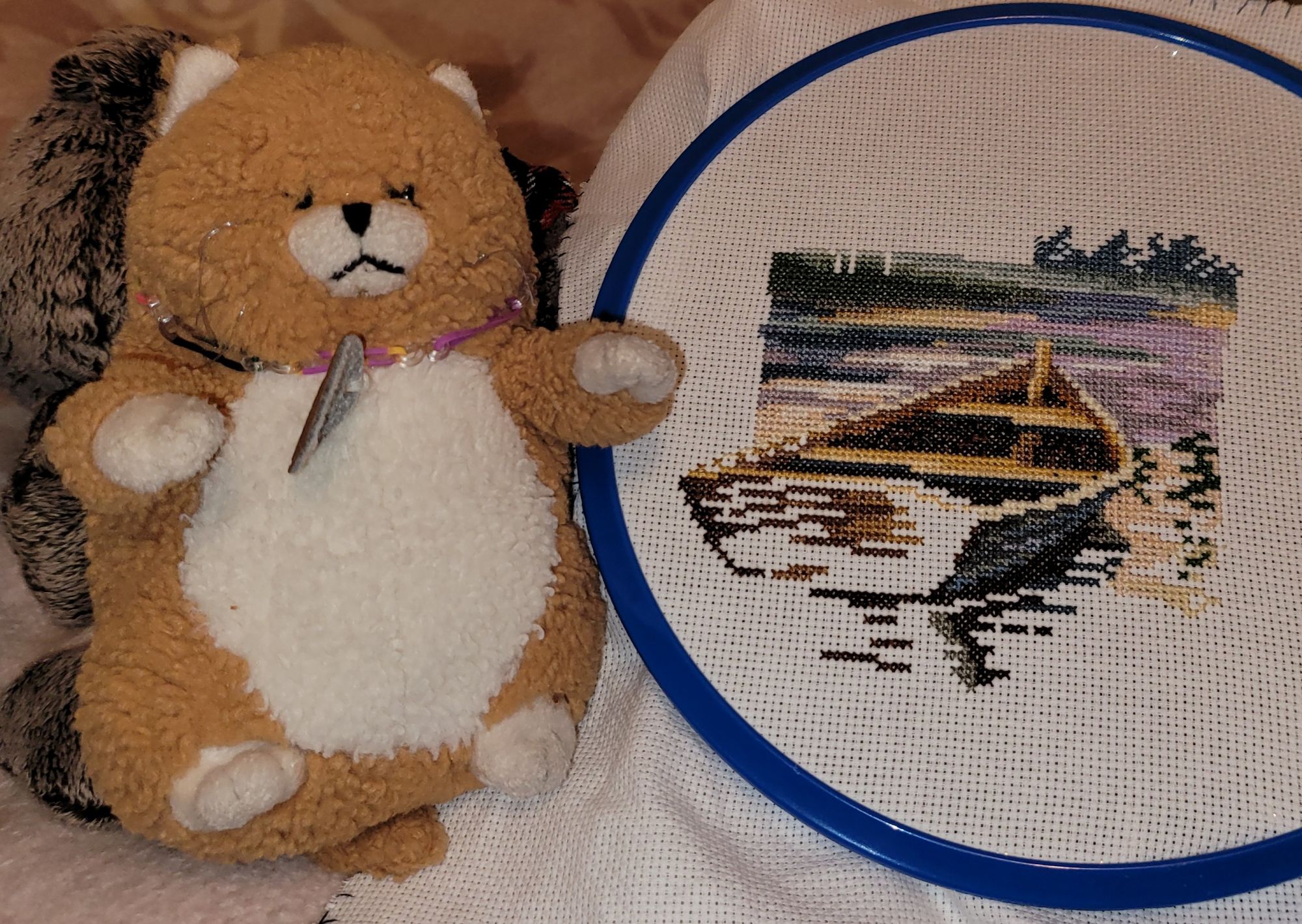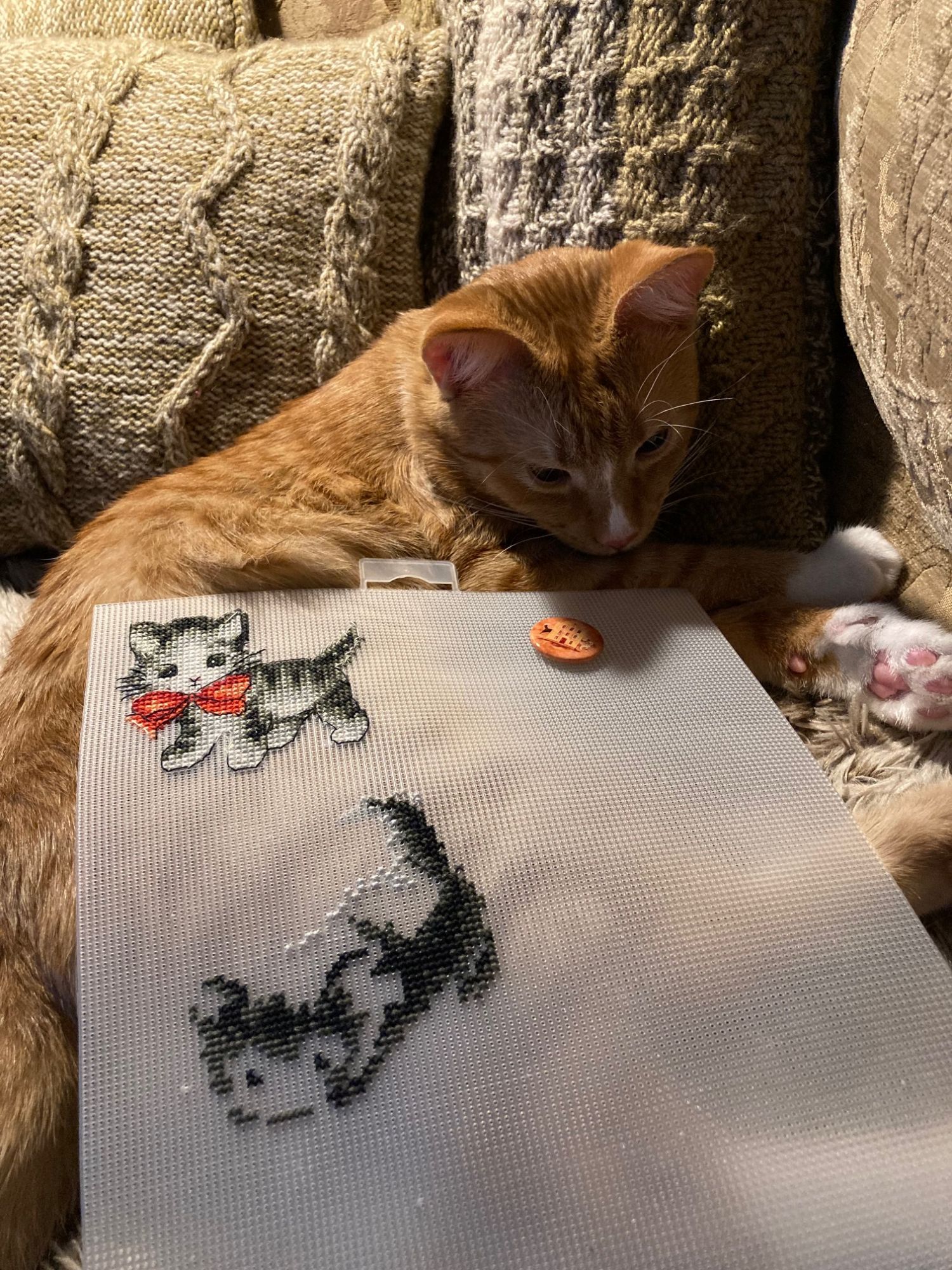 28 ноября 2022 Всем привет! 1. Вышить 250 крестиков одним из или сочетанием цветов: Голубой/Синий/Сиреневый/Фиолетовый +320 синим цветом на трамвайчике от Искусницы 2. Вышить 250 крестиков на сюжете Натюрморт и/или Фрукты/ Ягоды/ Плоды/ Еда/ Прикладное для кухни В наших краях лисички появляются уже примерно в августе, поэтому вышивала лисичку от Жар-птицы (на крайняк в любом случае грибы - это еда ). +361 крестик, я её наконец закончила) 3. Фотоотчет: сделать атмосферное фото одного из текущих процессов. Например, если вышиваете чашку с кофе, окружить ее соответствующими аксессуарами, - варенье, печенье и т.п. Котики от Летистич в компании котика не от Летистич) И снежинка от Волшебной страны в естественной среде обитания. 4. Вышить 100 крестиков на процессе любимого производителя/дизайнера Тут опять волшебная страна. Более ранняя стадия развития той самой снежинки. На фото тут пришито в районе 270+ бисеринок. Фото более поздней стадии развития нет, потому что идея сделать фото с ней пришла ко мне только сегодня утром по пути на работу) Исследования +1237 на Любимом занятии (Чарiвна Мить) Эксперимент Неделя была не особо вышивальная, поэтому я не успела заморочиться и взяла самую многоцветную из своих текущих работ. Внезапно это не Химера, а кошачий алфавит от Vermilion Stitchery: в этих котиках 45 чистых цветов и 18 блендов. Afalinka, Andra123, musya и 27 других сказали спасибо Поделиться сообщением Ссылка на сообщение
