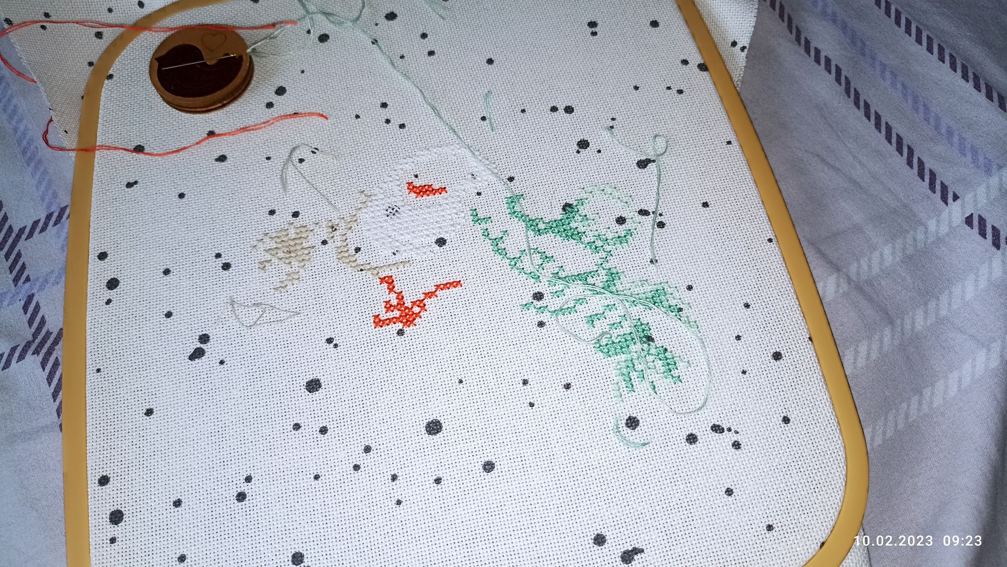 13 февраля 2023 Отчет! 1. Вышить 200 крестиков «Зимними цветами». Это не обязательно белый, черный и голубой. Проявите фантазию и обоснуйте выбранный вами цвет, и задание будет засчитано. + 5. Эстафета + Исследования Серебряное утро (РТО). Было: стало: Просто голубые зимние цвета в пасмурном зимнем же небе. 2. Вышить 200 крестиков на сюжете «Интерьер» Можно: помещение с людьми и/или животными. Можно: крупный предмет интерьера: шкаф, комод, подоконник с цветами (изнутри дома), стол с натюрмортом на нем, плита или кухонная полка и т.п. + 4. Вышить полностью квадрат 10х10 крестиков. Старт - не более 10 крестиков в данном квадрате. Или с нуля. Всего на этом процессе вышить 150 крестиков. Кошки с граммофоном (Риолис). Было: стало: Интерьерный граммофон. И участок 10Х10 - это мордочка черного кота 3. Вышить 150 крестиков на равномерке или гобеленовой сетке. Пионы с незабудками (Риолис). Было: стало: Равномерка. irisheckin, Moon Stitch, Дикая белочка и 26 других сказали спасибо Поделиться сообщением Ссылка на сообщение