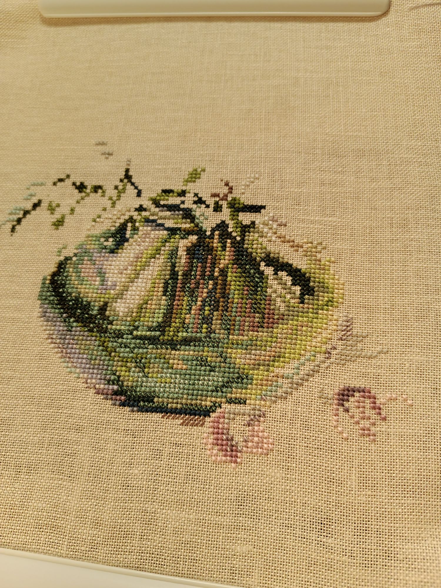 7 марта 2023 Всем привет! Несу очередной отчет. 1. Вышить 150 крестиков Зеленым/Бирюзовым/цветом Морской волны. "Fairy Unicorn" от Riolis было стало 153 крестика блендом зеленого и голубого (а вместе они выглядят как бирюзовый). 2. Вышить 150 крестиков на сюжете, где есть птица. "Scenic Lighthouse" от Dimensions было стало 244 полукрестика = 122 крестика + 29 крестиков = 151 крестик. (А справа от маяка виднеется силуэт птицы, есличо). 3. Вышить 150 крестиков на цветной основе (кроме белой и черной) "Butterfly Vignette" от Dimensions было стало 114 полукрестиков = 57 крестиков + 94 крестика = 151 крестик. (P.S. Забыла уточнить - канва цвета ivory.) 4. Вышить фрагмент, в котором встречается от 10 крестиков одного цвета подряд (по горизонтали или по вертикали). Всего на этом процессе – 250 крестиков. "Winter Ruby" от "Жар-Птица" было стало Крайний левый ряд (по вертикали) на правой половинке - 11 крестиков одним цветом. Всего 253 крестика. Эксперимент. "Bicycle Afternoon" от Dimensions было стало 102 крестика (зелень в левом верхнем углу). Вывод по результатам эксперимента: если прикрутить колеса к треугольной загогулине - может получиться велосипед. Воооооот! Orsana, semsot, ludmilk_@ и 20 других сказали спасибо Поделиться сообщением Ссылка на сообщение