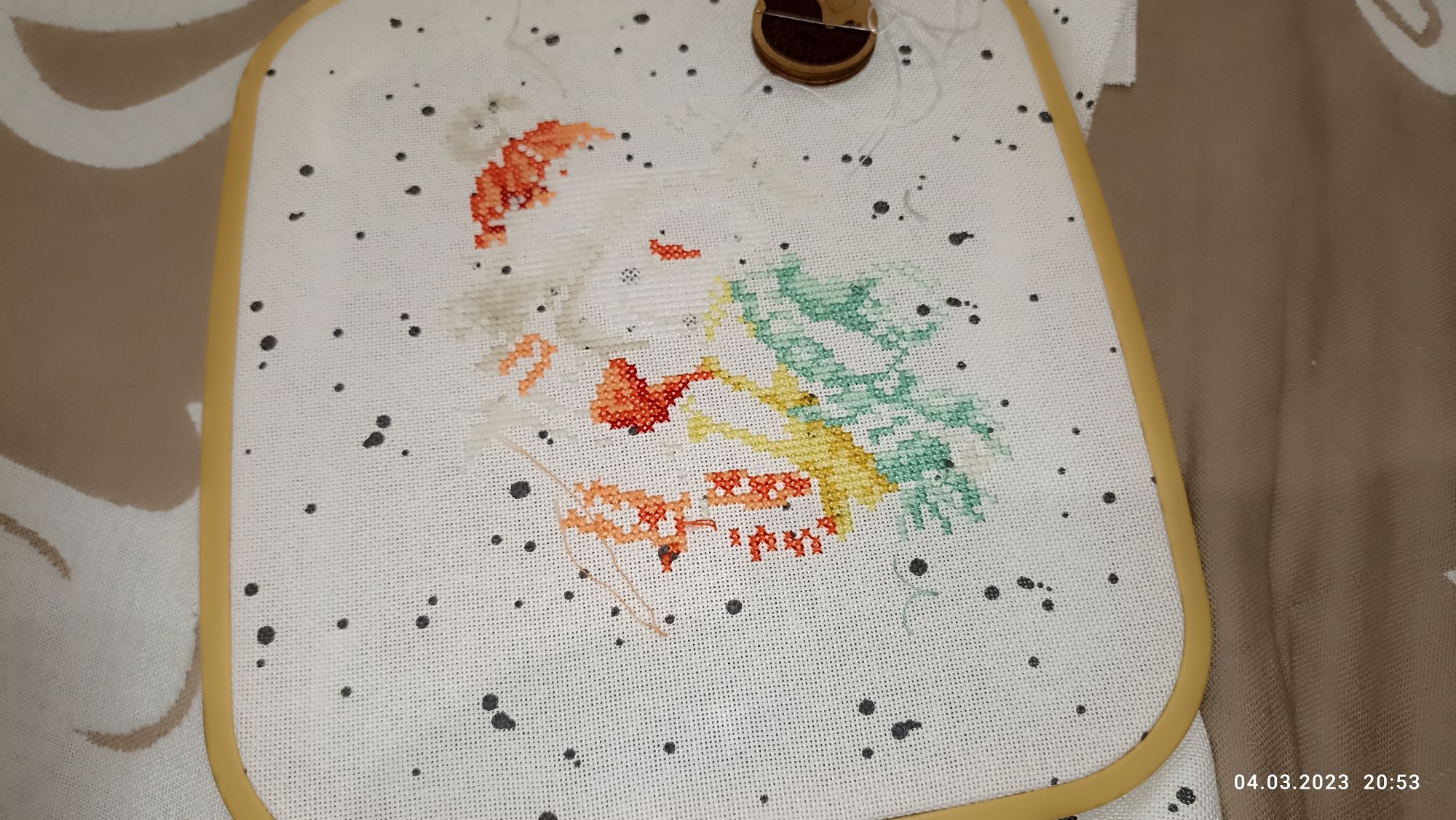 7 марта 2023 доброе утро! 1. 150× зелёным, капусточка, 1017× 2. 150× птиц, 162× и почти целые пальцы, что тоже достижение) 3. 150× на цветном, гортензии, 1554× и они всё ещё остаются шедевром пуантилизма. очень упорные цветы 4. ряд из 10× в 250×. кто-то нашёл в листике две шикарных диагонали, на 30× и 32×, радостно отшил весь лист и только потом понял, что нужен ряд, то есть горизонталь или вертикаль. нашлось в самом низу. в итоге 1642× ИССЛЕДОВАНО взаимодействие мотка индийского анкора и гаммовской аиды16. итог 2438× ЭКСПЕРИМЕНТ. заводная рыба это очень много колёсиков. 354÷2=177× Afalinka, Mangusta, Snake Gagarin и 23 других сказали спасибо Поделиться сообщением Ссылка на сообщение