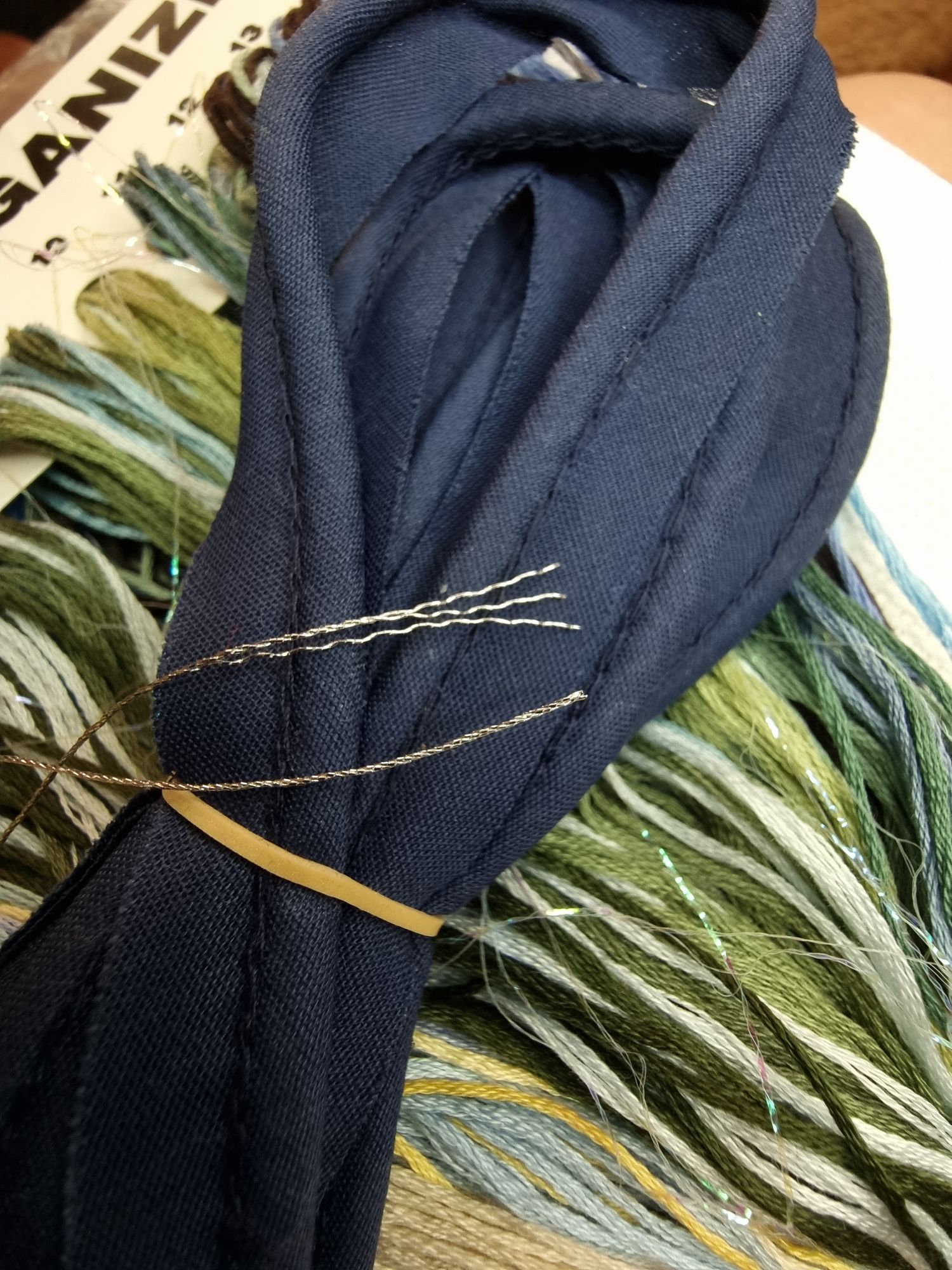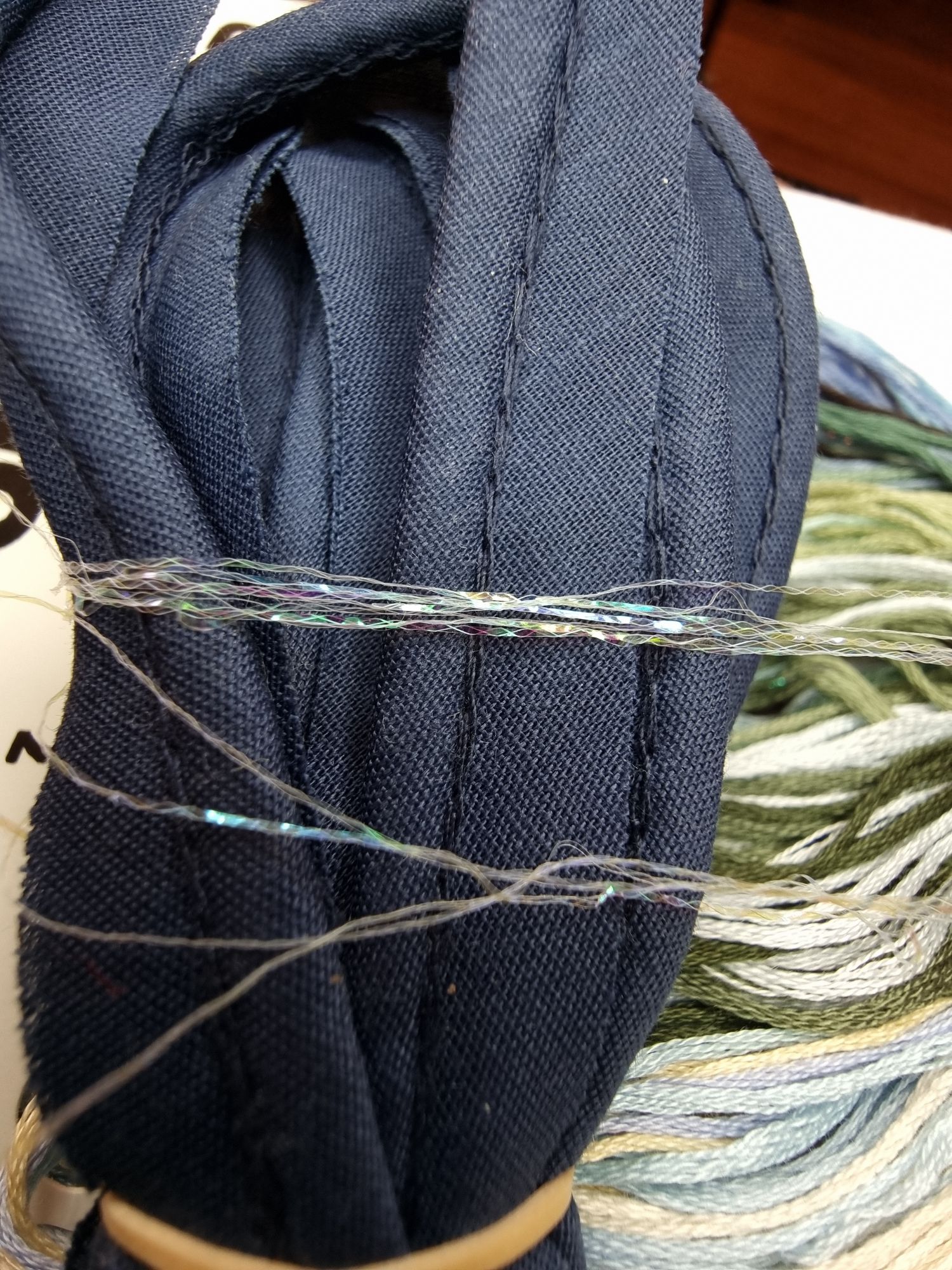 12 января 2022 Доброго дня! Подскажите, что за нитки могут быть в наборе Needle Treasures, в ключе обозначены как filament iris? Какой им аналог можно подобрать? У меня есть мысль, что что-то пойдет не так, и не хватит ниток из набора. Нитка используется для прямого стежка и выкладной нити. Выглядят вот так прозрачные, переливаются под лампой зелёным, фиолетовым, синеватым и т.д. На нитках кое где видны расслоения: это тоже вызывает опасения и некоторые сомнения. Ещё возник вопрос по серебристому металлику: нить скручена из трех ниток, её же не надо разделять для вышивки? В ключе крест в две нити, бэк в одну. Вот два хвоста: расслоившейся и целый. В ключе указана общая длина ниток 60 ярдов, сага считает с запасом в 70% 54 ярда. Я так понимаю, что делить нить не надо. Или надо всё же? Поделиться сообщением Ссылка на сообщение