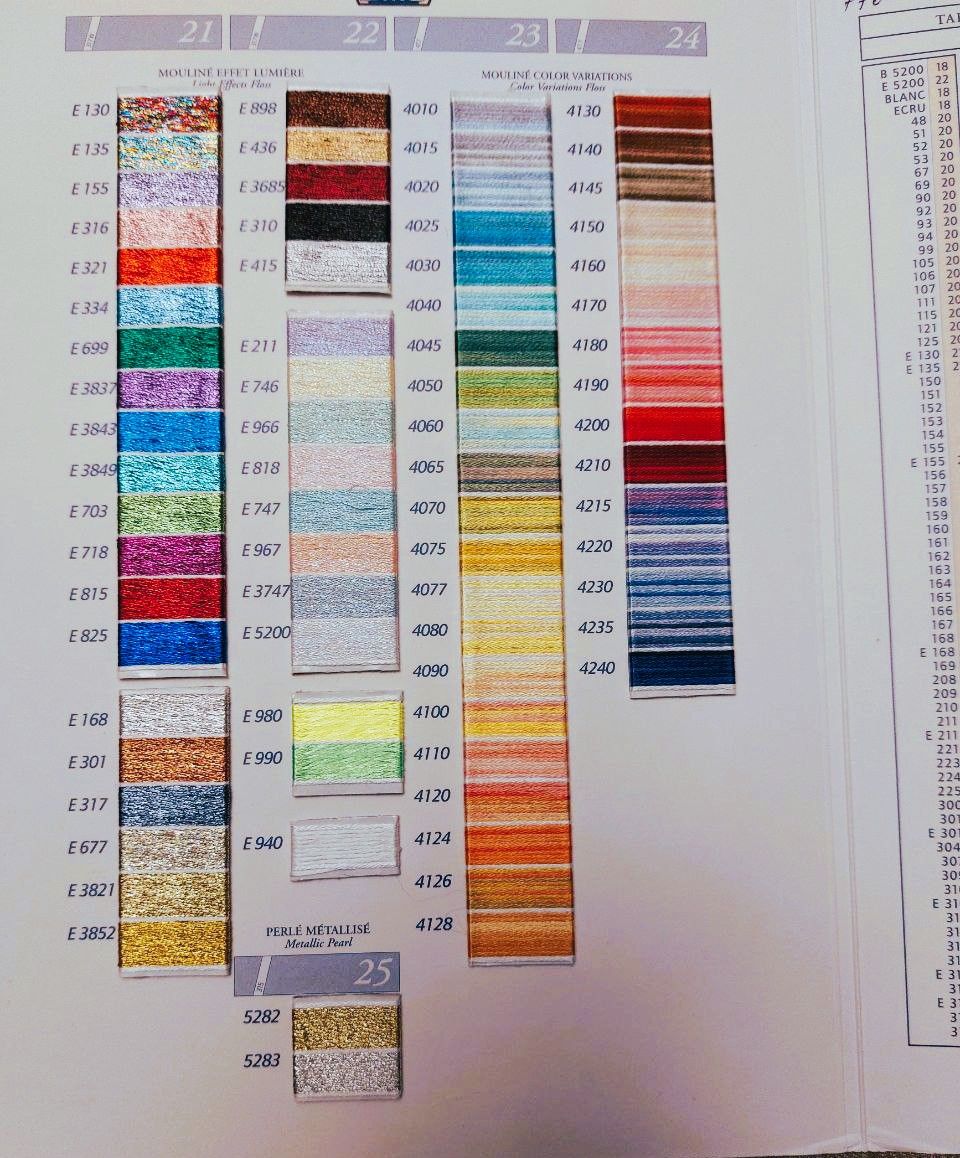7 мая 2 часа назад, Йогуртка сказал(а): Всем привет! Собирала сегодня из своих запасов нитки для вышивки и заметила, что у меня есть моток мулине DMC под номером 5200, а есть мотки B5200. Так вот тот, который просто 5200, значительно желтее, чем B5200. Никто не знает случайно, что это за полтергейст? В5200 это всем известный кипельно белый. Просмотрела свою карту ДМС. Палитра ДМС артикула 117 (однотонные хб) заканчивается №3866, в палитре остальных, "специальных" цветов такого номера нет. Есть Е5200, он серебристый, с люрексом. Моей карте много лет, с тех пор появились новые оттенки - №№ 01-35. Вроде бы, про другие ничего нигде не читала. Вы уверены, что у Вас настоящий ДМС? makalicha1970, lamina-65 и Йогуртка сказали спасибо Поделиться сообщением Ссылка на сообщение