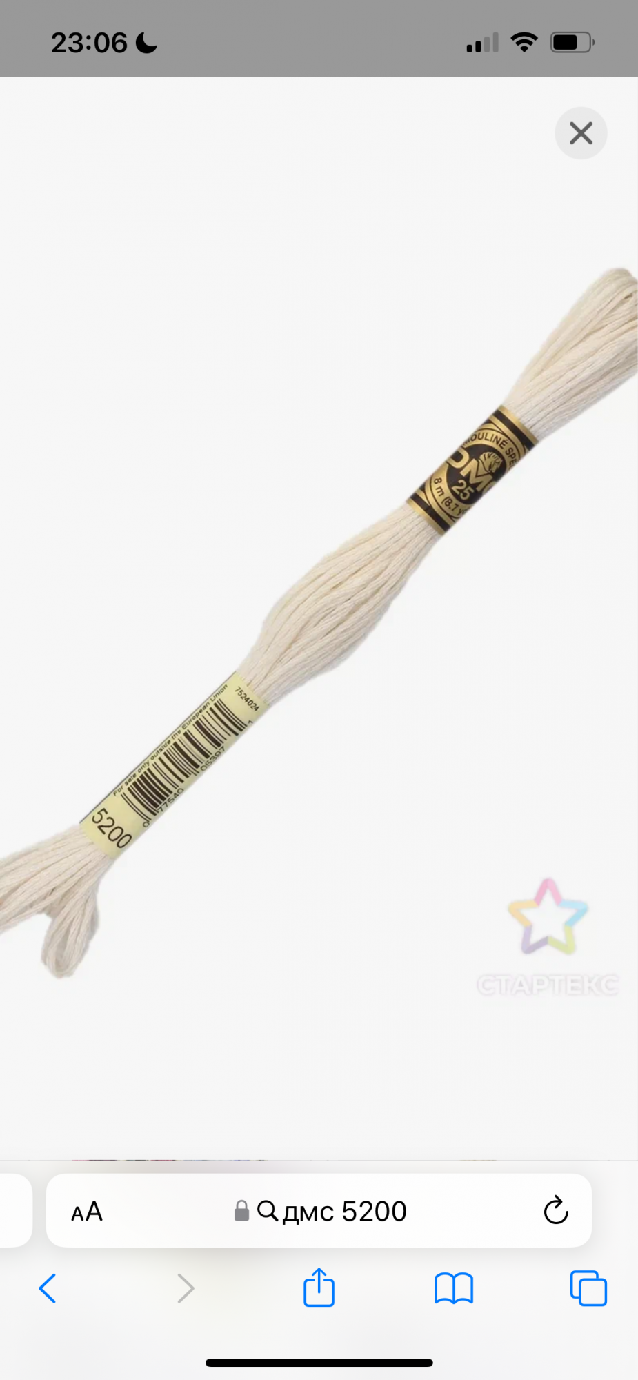 7 мая 3 часа назад, Йогуртка сказал(а): у меня есть моток мулине DMC под номером 5200, а есть мотки B5200 Есть в продаже DMC 5200 на Озоне и на WB Хотя в описании указывается цвет: B5200 На WB написано "молочный" Lucia-del-Umago, Йогуртка и Darira сказали спасибо Поделиться сообщением Ссылка на сообщение
