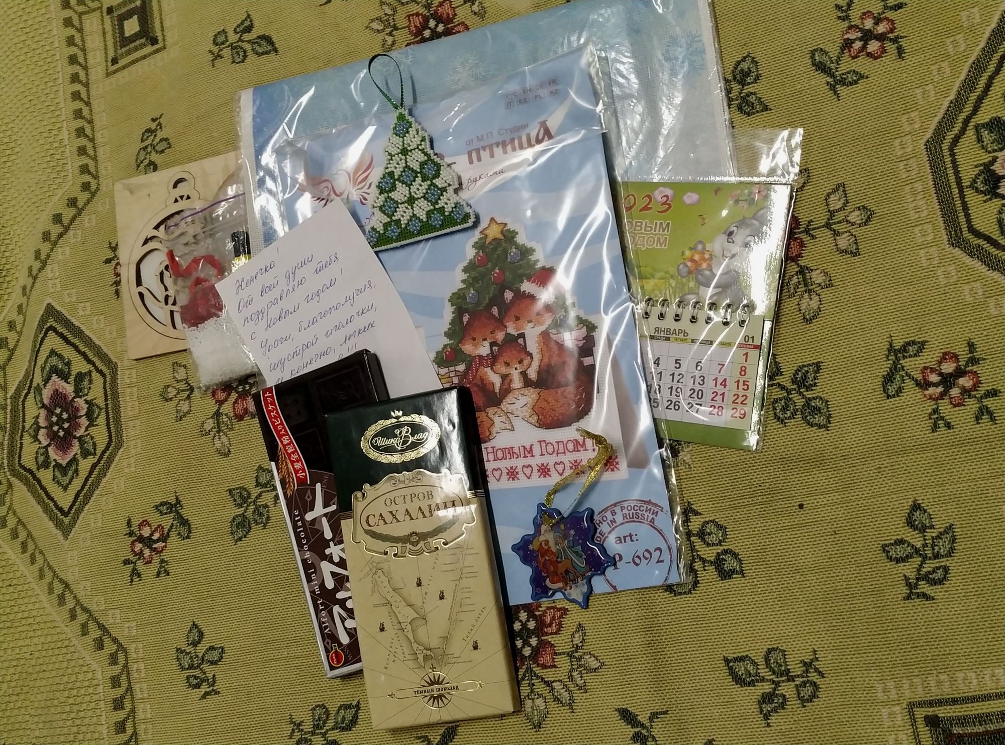 10 декабря 2022 13 часов назад, Фро-J сказал(а): Девочки, добрый вечер, хотя уже, скорее, доброй ночи . Пятничный вечер пролетает, не успеешь глазом моргнуть . Я спешу поделиться своей радостью – ко мне приехал, я бы даже сказала: примчался, новогодний подарочек от Наташи korund. Вот, Наташ, зря ты скромничала – сюрприз просто волшебный ! Начну по порядку. Меня осчастливили прелестной миниатюрной елочкой . Пишу и время от времени беру ее в руки полюбоваться, и улыбаюсь. Муж, кажется, решил, что я с мороза вместо чая выпила чего покрепче . Кстати, о чае… Раз уж о нем заговорила, то сначала похвастаюсь вкусняшками . И, да, одну я уже попробовала – невозможно же удержаться , а внутри меня тоже поджидал сюрприз – шоколадка оказывается разделена на дольки с шикарным кораблем , а с обратной стороны – минипеченька . На «Остров Сахалин» я пока любуюсь, как-то вспомнилась, что в детстве я коллекционировала фантики – такой, наверное, стал бы венцом коллекции, интересный дизайн, еще и с экскурсом в историю края . И снова к вышиванию. Мне подарили два потрясающих набора и дизайнерскую канву с зимним принтом . Набор от Чаривны мити для меня совершенный сюрприз – не видела такого, но не терпится за него взяться. На открытки от МП Студии поглядывала, но как-то до покупки так и не дозрела. А теперь – прощайте мои планы на сокращение процессов, обязательно начну, причем до НГ . И на канву уже наметились определенные планы . И под занавес… В посылке были еще два премилых магнита – календарик с символом наступающего года (хотя и озадачивает, почему дизайнеры поместили на календарь пасхального кролика ) и магнит-игрушка . И весь сюрприз целиком . Наташа, спасибо огромное! Мне все очень-очень-очень понравилось! Женя, поздравляю с новогодним сюрпризом! korund, Наташа, потрясающе интересный и красивый сюрприз, волшебная вышитая елочка! Наборчики очень оригинальные. lvlist, Дикая белочка, Ксен40 и 2 других сказали спасибо Поделиться сообщением Ссылка на сообщение