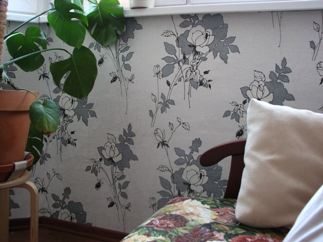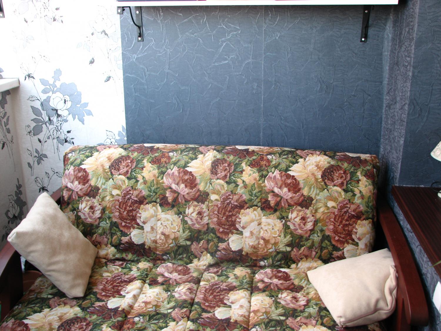 Сам диванчик, пока без пионов (смотрю и понимаю, что без них - как-то грустно). Справа от него виден подоконник (стена между комнатой и лоджией):