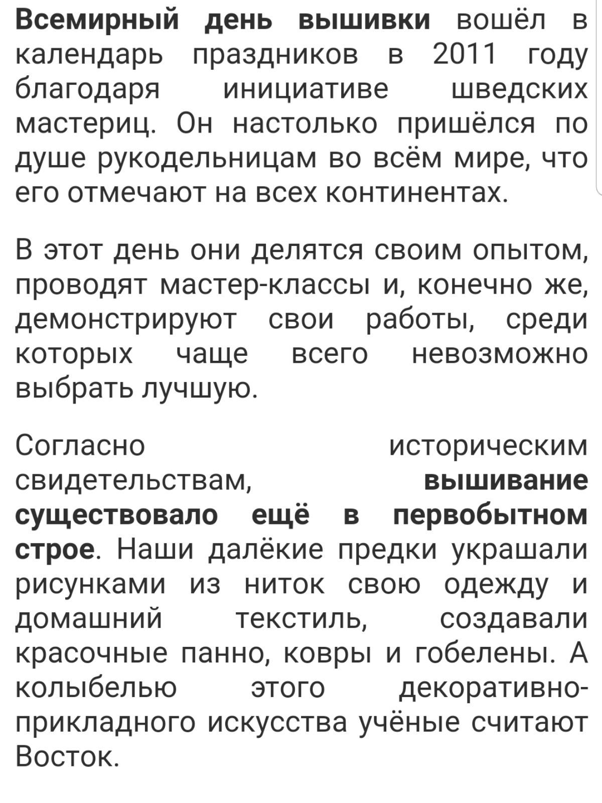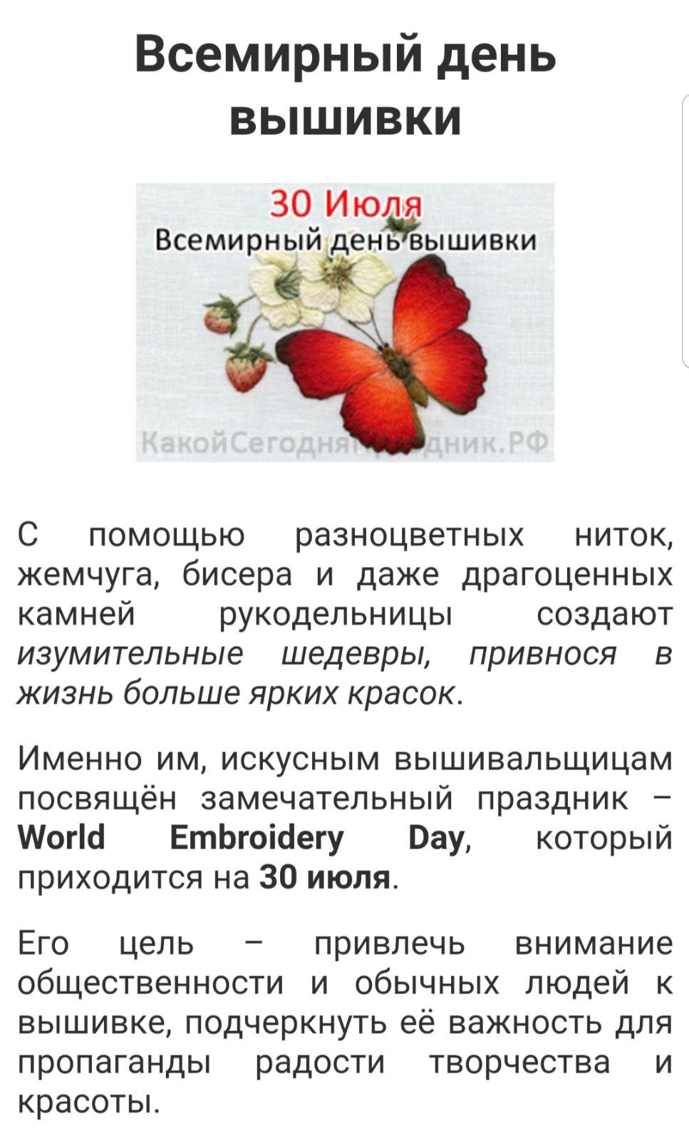 30 июля 2023 1 час назад, Надежда Минск сказал(а): Девочки, поздравляю всех с нашим праздником! Сегодня - Всемирный день вышивки! Девочки, мои поздравления Zishka, Anneti, Мультифрукт и 4 других сказали спасибо Поделиться сообщением Ссылка на сообщение