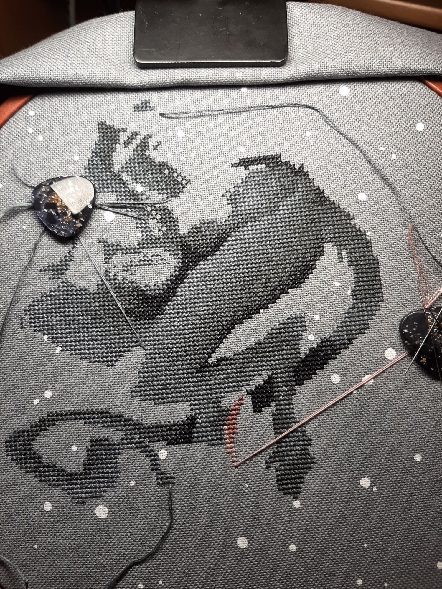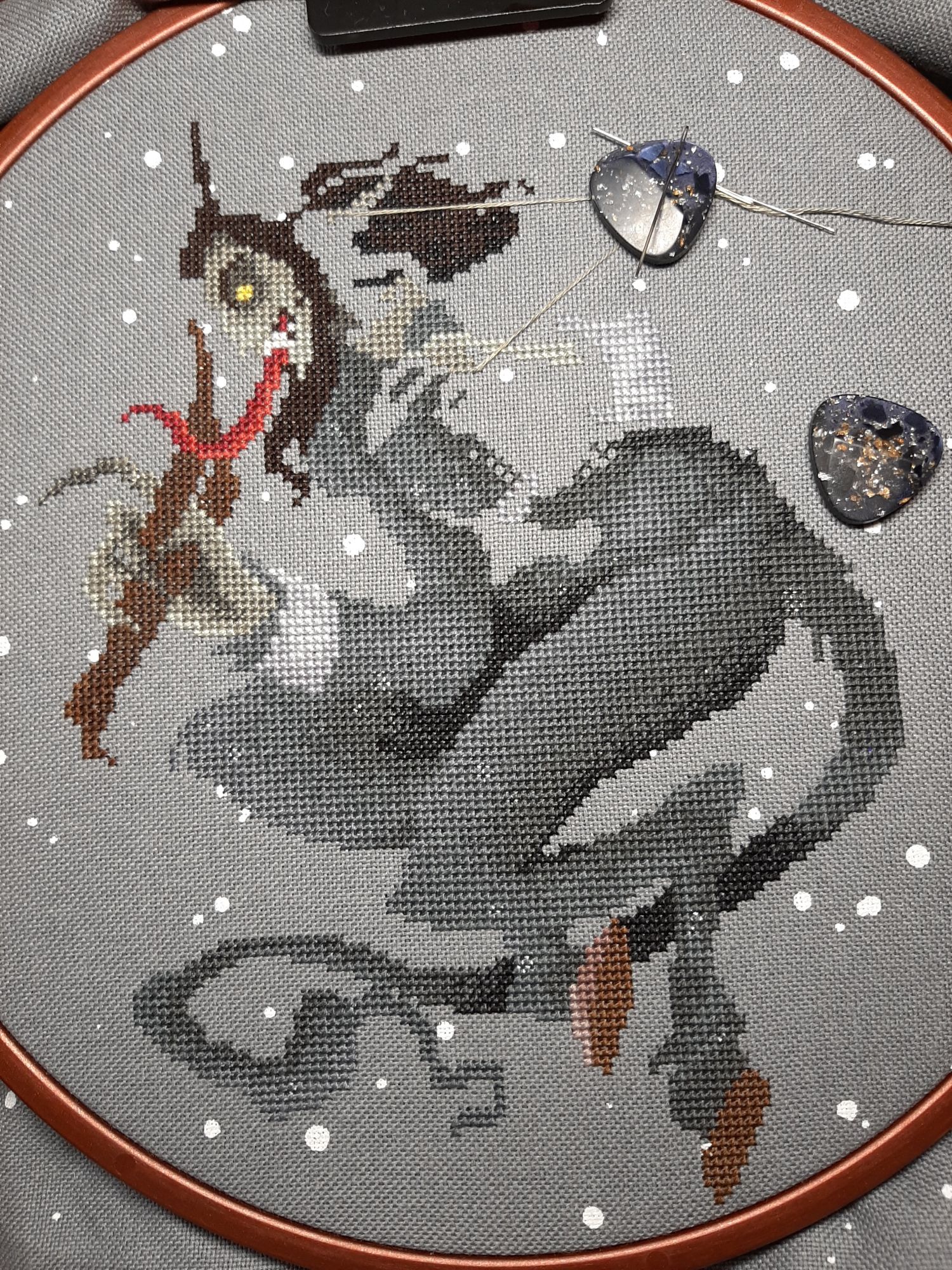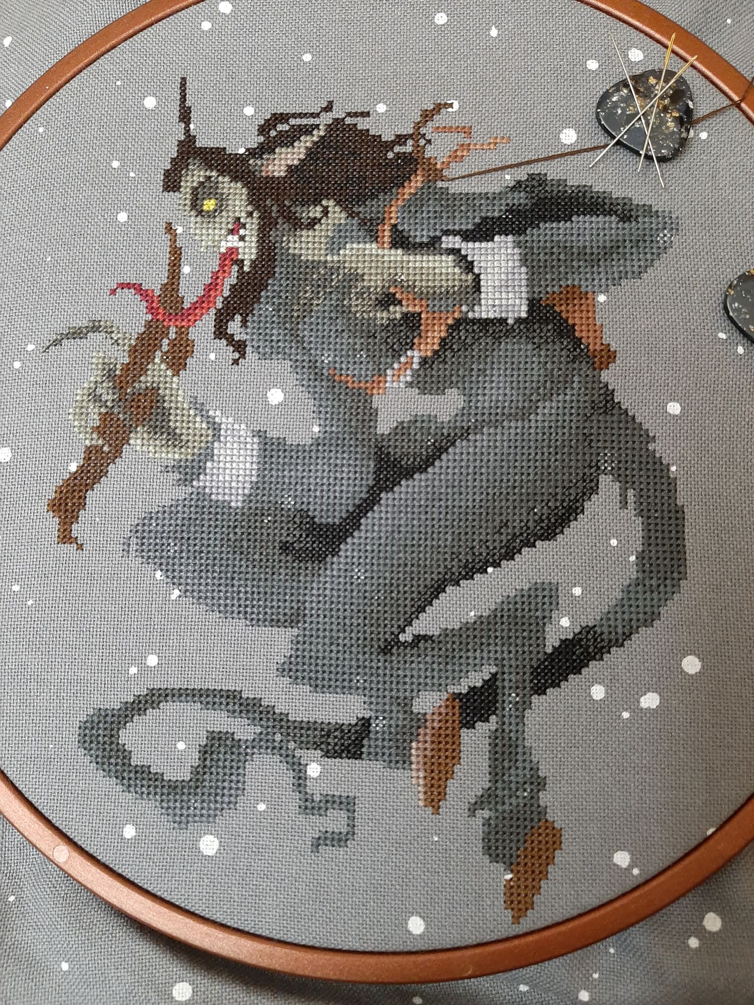 18 июля 2024 Всем привет! Давно я ничего не выкладывала, но это из-за того, что финишей нет, а ещё вышивку сейчас подвинуло другое моё хобби. Так что показываю практически завершенного Крампуса, я ему даже колокольчики купила, чтобы на рога прицепить вместо бисера. До Нового года закончу! Ксения Новикова #36163, Крампус Остался только бэкстич, я как раз в процессе, обычно бэк у меня идёт лучше крестиков, но тут я только крестики довышивала, и в апреле в вышивке случился небольшой перерыв, пока не хочется вышивать. Путешественница, Забава_, relax_cross_stitch и 5 других сказали спасибо Поделиться сообщением Ссылка на сообщение