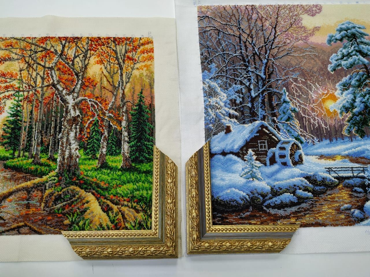 24 апреля 2024 16 часов назад, Molly21 сказал(а): У меня минус один процесс - "Сервал" вышит! Маша, он прям как живой! До того здорово передана поза, взгляд! Так и хочется его погладит, хоть это и хищник! 42 минуты назад, Светлана Юрьевна сказал(а): Две вышивки уже в оформлении. Вот посмотрите какие багеты интересные. По-старинке хотелось к бисеру приложить золотистый витиеватый багет, но выбрала по-проще по-бюджетнее - гладкий сизый к Зимнему лесу и парный к Осеннему лесу. А по-моему, гладкие багеты подошли идеально! Витиеватые красивые багеты, но здесь они перетягивали бы часть внимания на себя. Обе картины великолепны! Molly21, Светлана Юрьевна, tamara.34 и 1 другой сказали спасибо Поделиться сообщением Ссылка на сообщение