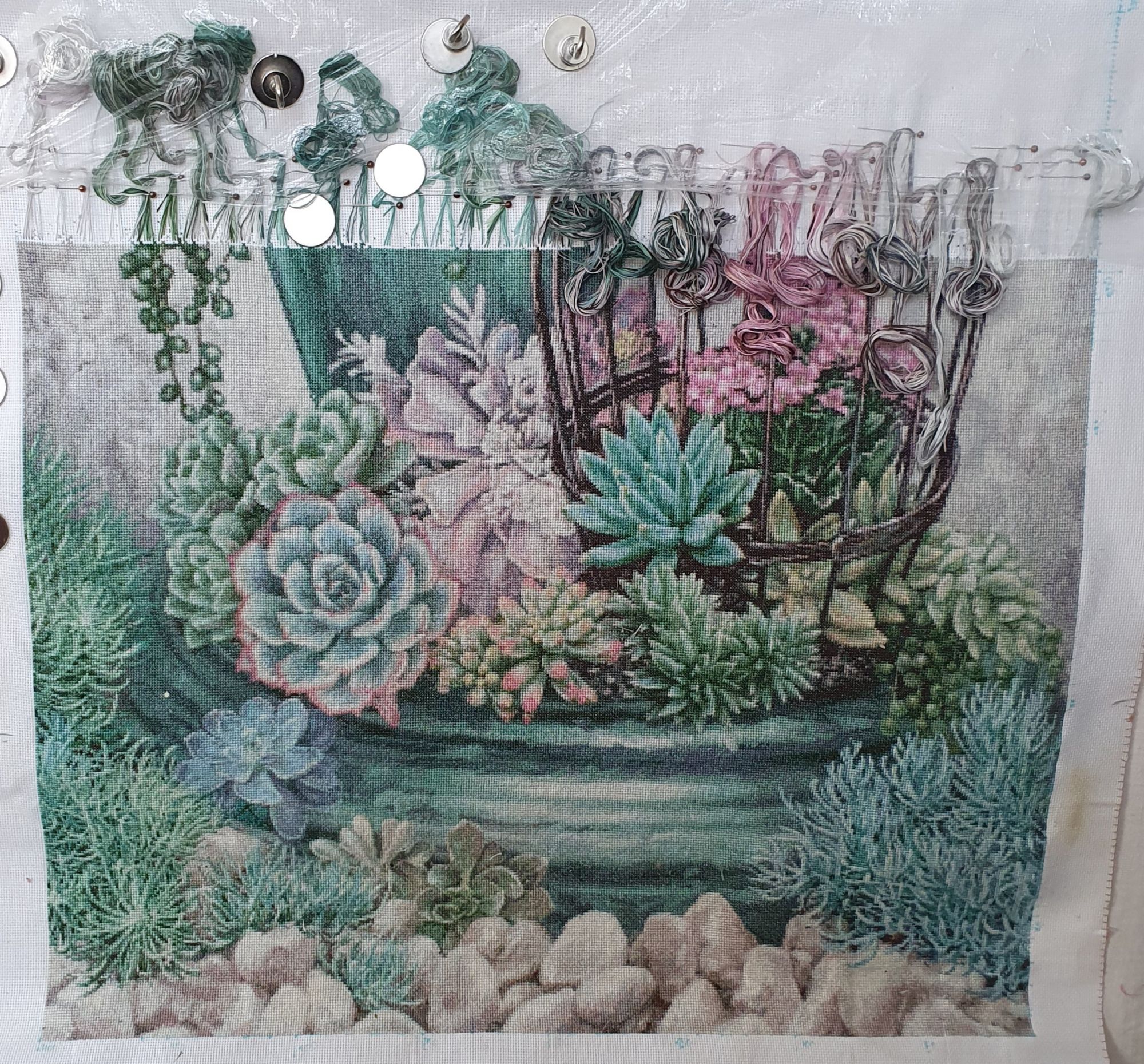 3 апреля 01.04.2025 в 14:34, Охотница сказал(а): "Суккуленты" Месяц март выдался напряженным. Хоронили сына соседки (рак). Последние недели стали очень тяжелыми. У соседки не остаось никого - ни детей, ни внуков. И близких людей практически нет... Вышивала, конечно. Но не столько по времени, как обычно. Хотя норму в 300 кр в день нагнать удалось. В основном благодаря фону. А вот приычные диагонали снова сбивались на полпути. В итоге нижняя ножка вытянулась вперед на 6 диагоналей дальше, чем должна бы. Или наоборот - верхушка не догоняет на 6 диагоналек:-) Сначала появились длинные строчки одного символа в фоне. Самые внимательные из вас наверное помните, что я предпочитаю длинную строчку из одного символа отшивать целиком. Для этого не довожу диагональ доверху, возвращаюсь к "подножью" и поднимаю следующие диагонали, чтобы сделать"фундамент" под эту саму длинную строчку. Затем к этому безобразию присоединилась верхушка клетки. Итог месяца - почтидошитые прутья клетки, початая макушка и пологий склон фона. В цифрах план был 9300 кр Отшито 9476 кр. Запас получился малюсенький, всего 176 кр, но радует, что в данных обстоятельствах не ушла в минус. Сола,продолжаем любоваться этой красотой. Девочки нашли название растения,которое я даже не видела. Из всех на вышивке знаю молодило и каланхое. Интересно описание парковки....непонятно, но увлекательно.... Охотница, АлёNка, vodonika и 1 другой сказали спасибо Поделиться сообщением Ссылка на сообщение