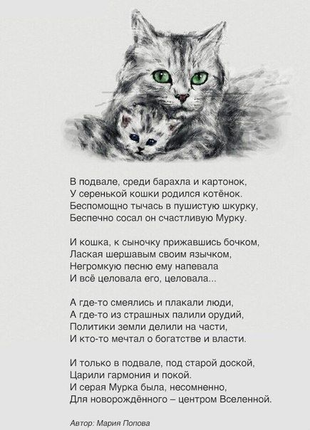 1 февраля 2017 Опасайтесь поддаться влиянью словесного звона, Выбирая котенка, возьмите себе на заметку: Самый лучший котенок сидит у заводчика дома, А не ищет хозяина, запертый в тесную клетку. Очень сложно подчас оценить малыша непредвзято, Не поверить словам, гладко льющимся в силу привычки... Нынче многие знают, какие больные котята И с какой "родословной" бывают в продаже на "Птичке". Сколько слез было прoлито теми, кого обманули, Кто спасти не сумел обретенного только что друга... Дорогой покупатель! Следите, чтоб Вас не толкнули За холодную грань все того же порочного круга... Жаль, понятие "совесть" порой растяжимей резины, И без совести люди бывают и в нашем сословье – "Размноженцы", что оптом сплавляют котят в магазины – Очень маленьких, слабых, без всяких гарантий здоровья. Продавцу магазина погибший котенок не важен – Покупатель российский и сам не особо разборчив... Но котенок – не вещь, не товар для оптoвой продажи, Не объект, подлежащий списанию в случае порчи!.. Жаль, на это на все наплевать молодым бизнесменам: Пусть не лучший товар – магазину реклама поможет! И котят, что похуже, скупают по сниженным ценам, А потом продают в магазине в три раза дороже. Из уютной квартиры – в мир полок, опилок и сеток, Стеллажей с наполнителем, пыльных коробок, картонок... Спертый воздух и шум, и толпится народ между клеток... Как он вынесет это, породистый нежный ребенок? Магазин процветает – к чему соблюденье приличий, Раз продажи идут и исправно работает касса? Сбились кучкой котята... Не видя меж ними различий, Продавец сообщает: "Они у нас все – шоу-класса!" Опасайтесь поддаться влиянью словесного звона, Выбирая котенка, возьмите себе на заметку: Самый лучший котенок сидит вместе с мамою дома, И никто не запрет его в тесную грязную клетку. автор Anais, питомник «Ermine Trace» www.shaded.ru Veta, Птица, Vika71 и 2 других сказали спасибо Поделиться сообщением Ссылка на сообщение