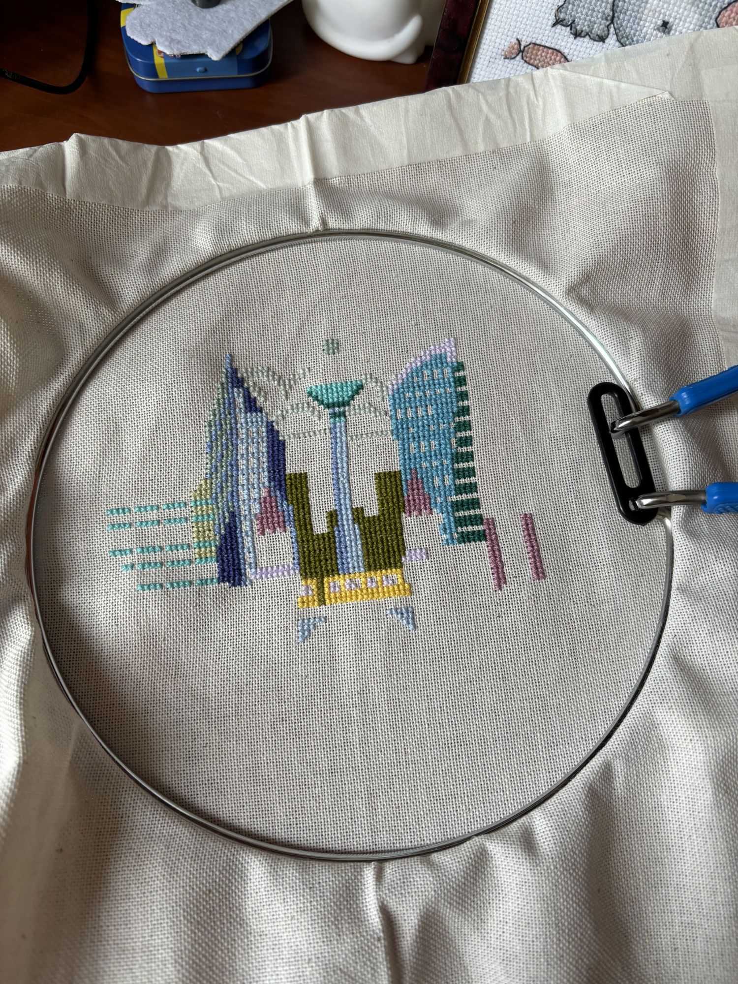 22 июля 2024 Всем привет! 1. Вышить 250 крестиков самым веселым цветом + 4. Вышить фрагмент, в котором встречается от 10 крестиков одного цвета подряд (по горизонтали или по вертикали). Всего на этом процессе вышить 100 крестиков + Дар богам Оранжевый цвет вполне себе весёлый, а им я тут повышивала очень много. Фрагмент с 10+ крестиков одного цвета подряд есть в фоне, например, слева. Всего на процессе +1028 2. Вышить 150 крестиков на сюжете: Люди реалистичные, в том числе - сюжеты с детьми Люди там остались далеко внизу, но они есть и вполне себе реалистичные, пусть и видно их только со спины: Вышила +1108 стежков полукреста = 554 крестика. 3. Фотоотчет. Атмосферное фото одного из текущих процессов. Например, если вышиваете чашку с кофе, окружить ее соответствующими аксессуарами, - варенье, печенье и т.п. Мой Берлин пока только строится, но у меня к нему уже есть всякие подходящие атрибуты) Посвящение божеству Одним из символов Усиньша можно считать число 9, а на Берлине от Satsuma Street как раз отображено ровно 9 достопримечательностей города. +237 И очередной квадрат у меня финишировал. 5929 крестиков = Ф3. Prague, Ксен40, Alichka и 12 других сказали спасибо Поделиться сообщением Ссылка на сообщение