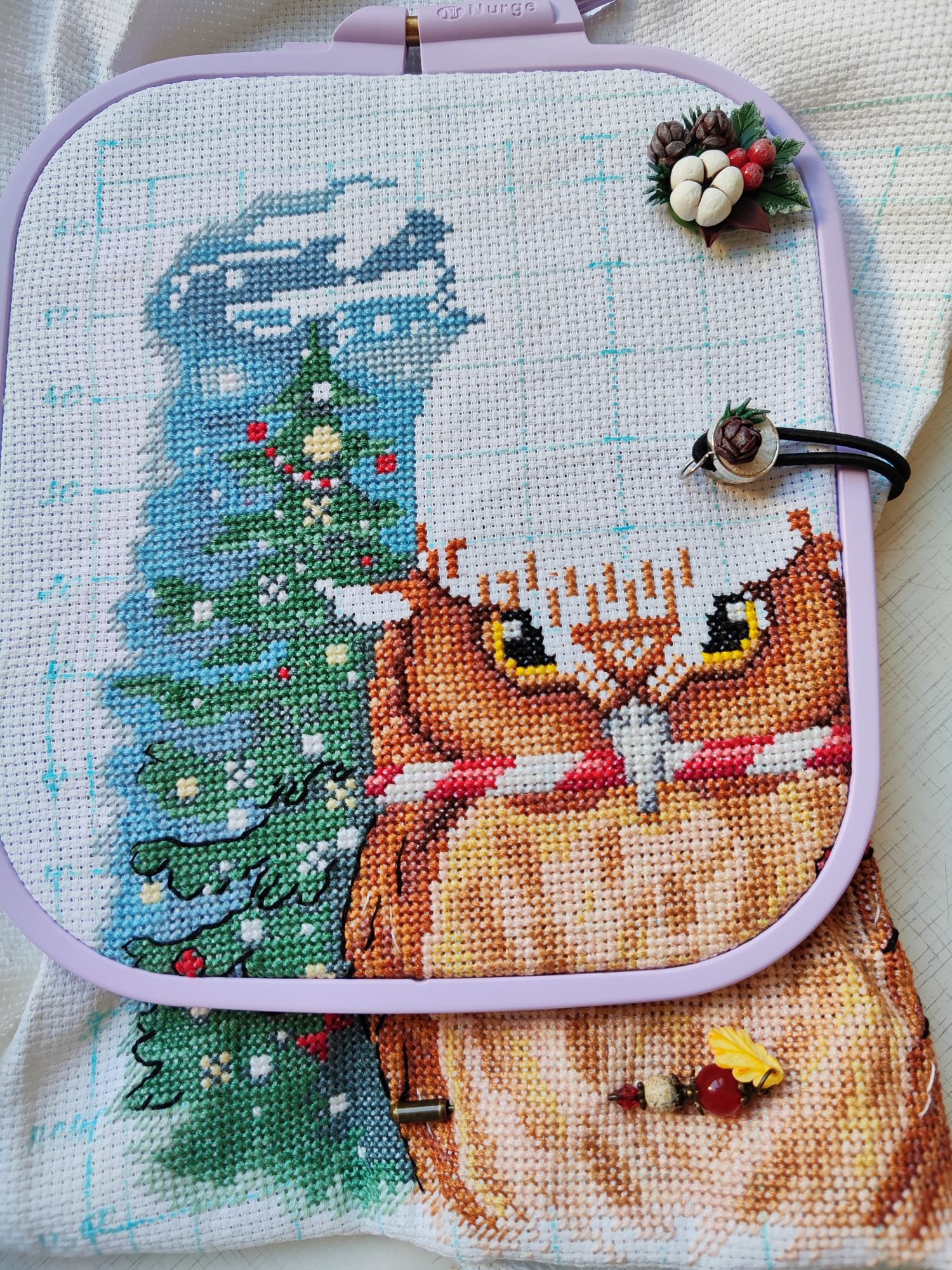 30 октября 2023 Добрый вечер, милые девочки! Моя девятая неделя Мифологии Европы! Полёт нормальный! С удовольствием уступаю пальмы первенства тем, кто вышивает больше, все умницы и молодцы, горжусь вами! А я только что вернулась из небольшой, но замечательной поездки, приуроченной... Исполнилось 15 лет со дня нашего бракосочетания. Попробуй тут, отвлекись на вышивку! Не ожидала, что будет так здОрово)) Думала отметить скромно, но муж и гости сделали дату запоминающейся, спасибо им за такие сюрпризы)) Ночью сидеть с вышивкой не буду И вот что мне всё-таки удалось: Задание 1. Цветами дерева. Выполняю бежевым и оттенками коричневого, оттенки напоминают мне цвета деревянной мебели) ПЛЮС Задание 2. Где кто-то идёт или бежит. Кошка идёт по крыше, совершая ежедневный обход кошачьей территории)) Не исключено, что она и побежит, если музыка трубача ей не понравится)) ПЛЮС ПОСВЯЩЕНИЕ БОЖЕСТВУ Посвящаю вышивку этого сюжета богу Гефесту, т.к. в сюжете изображены кованый балкон, декоративная кованая решетка на окне, фигурные ограждения на крыше и кованые же козырьки над дверьми подъедов. Все эти части строений изготовлены посредством современного кузнечного мастерства, почтим своим вниманием Гефеста! Все три задания на дизайне ЗР «Утро в нашем городке» Выполнено 410 крестиков. Было: Стало: Задание 4. Процесс, который ближе всего к финишу. Пластмассовая бабочка уже скоро закончится. Она близка к финишу. Вышито 202 крестика. Было: Стало: Orsana, musya, Killwale и 24 других сказали спасибо Поделиться сообщением Ссылка на сообщение