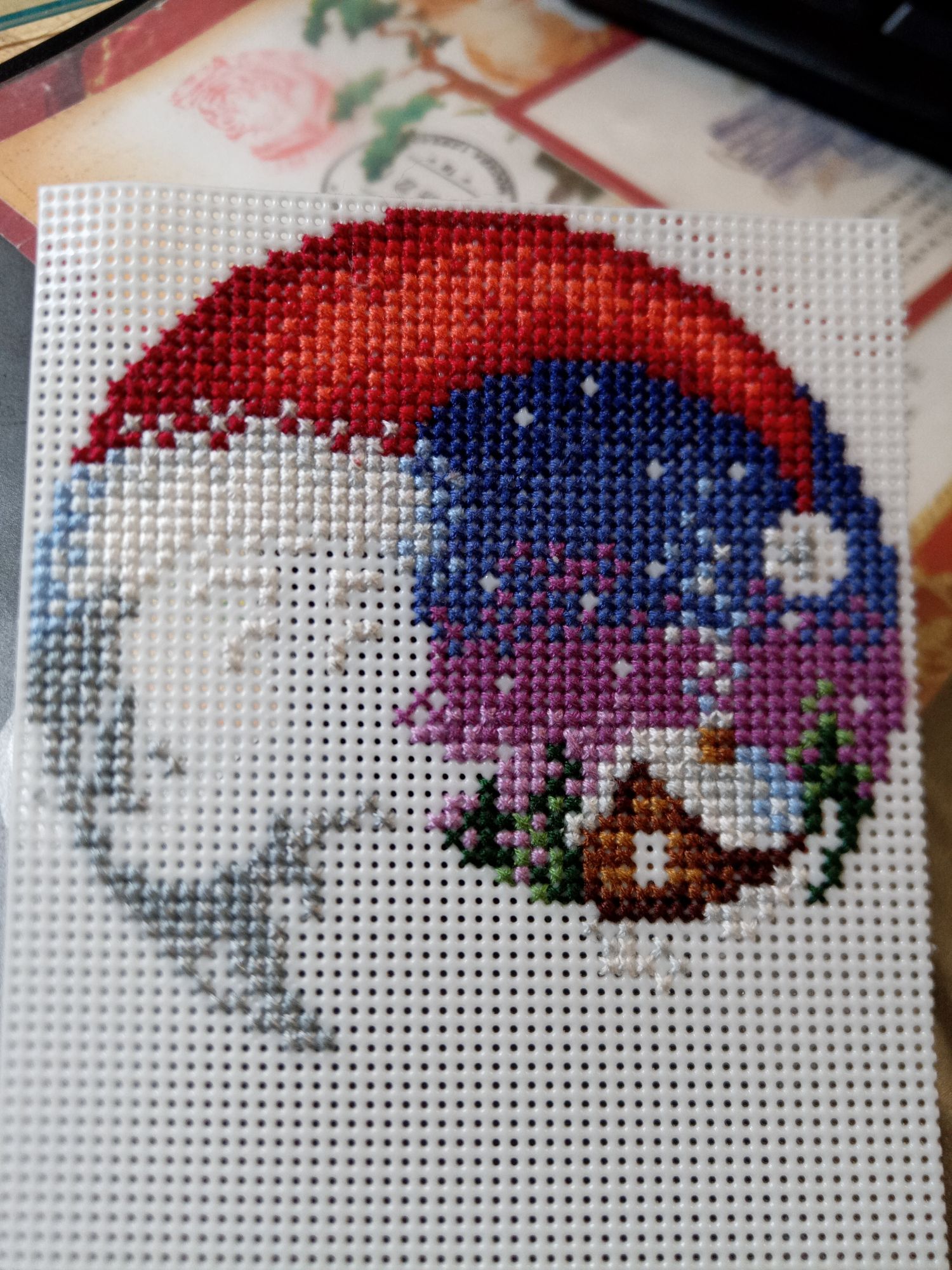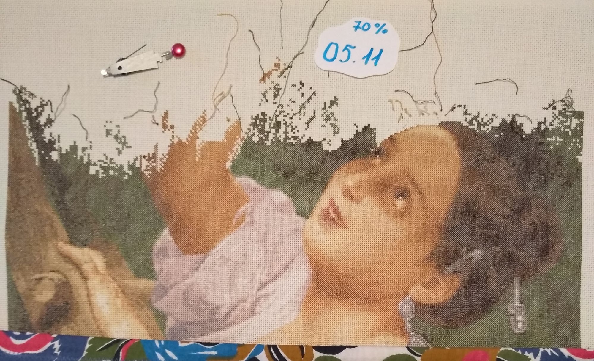 6 ноября 2023 Всем добрый вечер! Когда куча выходных, самое сложное - не забыть отчитаться до конца понедельника 1. Вышить 150 крестиков цветом неба. Можно взять один цвет или их сочетание Сейчас ноябрь, небо всё чаще не голубое, а серое, мрачное - так что повышивала на этот раз серым. +221 2. Вышить 150 крестиков на сюжете: Цветы / Букеты/ Сад/ Подоконник + Праздничный рывок-1. Продвижение на 1000+ На картине от Лука-с есть цветы - какие-то вьющиеся по стене и в горшках внизу что-то вроде герани. +1393,5 3. Фотоотчет. Впечатление недели На этой неделе впечатления в основном погодные, было несколько приятных тёплых и солнечных дней, солнце красиво рассветало и красиво закатывалось. Туман, впрочем, временами тоже был красивый. Хотя главное впечатление недели для меня - то, что у кота то ли переходный возраст закончился, то ли просто проснулось желание общаться, но он начал приходить по вечерам ко мне валяться и помогать вышивать. 4. Вышить логически завершенный небольшой фрагмент (домик/ цветок/ человечка/ зверя и т. п.), всего на этом сюжете - 150 крестиков + Посвящение божеству + Праздничный рывок-2. Продвижение на 1000+ На Пилигриме дошила наконец ворона, замок в верхней части и вышила полностью деревце под замком. +1281 за эту неделю. Для Аида процессе точно есть лошадка и собаки. Праздничный рывок-3. Старт 500+ Вписалась в СО Марии Караваевой, на первой фигурке тут с нуля примерно 1500 крестиков. И ещё, я не в курсе, считаются ли финиши из совместников, потому что, с одной стороны, тут вроде 9 фигурок, а с другой - схемы выдаются поочерёдно и я не знаю, успею ли вышить все) Короче, просто на всякий случай покажу, что ёлочку закончила, в ней 2045 символов, на крайняк пусть тоже пойдёт в 3 пункт с впечатлениями недели, потому что это было очень приятное впечатление недели))) Наta, Хозяйка смешных зверей, Darira и 23 других сказали спасибо Поделиться сообщением Ссылка на сообщение