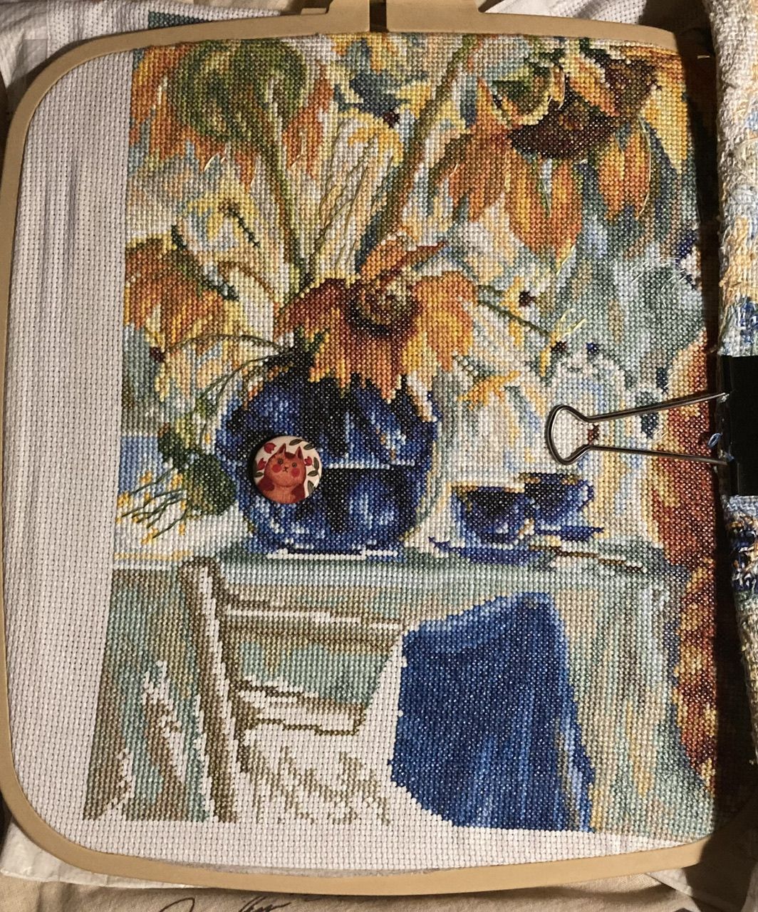 20 мая 2024 Всем привет! 1. Вышить 150 крестиков самым темным цветом на сюжете. Или самым темным из оставшихся Тёмно-зелёный: 2. Вышить 100 крестиков на сюжете где кого-то или чего-то ПЯТЬ На этом сюжете от Риолиса внизу пять больших вазонов с тюльпанами) Вышила +159 3. Вышить 100 крестиков блендами + Дар богам Тут у меня вообще много блендов осталось, только за сегодня вышила в районе 170. Всего на процессе +1406 4. Вышить 100 крестиков на процессе, в котором есть что-то пугающее + Посвящение божеству Пугающее будет субъективным, потому что лично меня пугают бабочки, а тут их на сюжете довольно много (конечно, таких схематичных, как тут, я не боюсь, но если бы они были не схематичными, я бы это вышивать точно не стала ) Для Диана Кехта тут много всякой воды, и судя по тому, что там происходит, возможно, она даже слишком целебная))) +514 almmatea, Essenia, Касси и 17 других сказали спасибо Поделиться сообщением Ссылка на сообщение