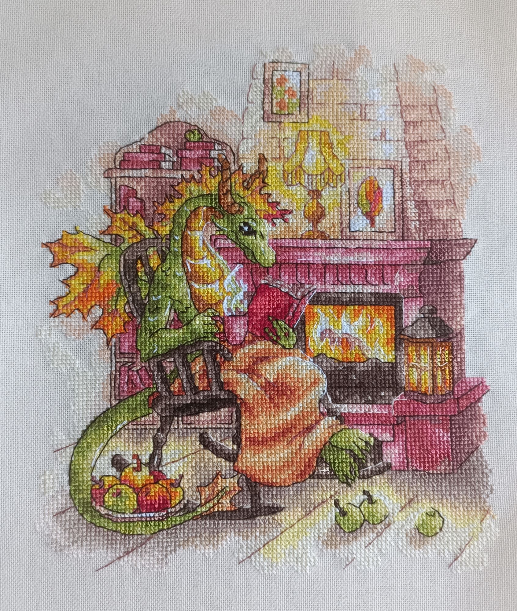 1 декабря 2023 Процесс "Осенний дракон", 33% Я сегодня с быстрым отчётом о том, что навышивалось за эту пару дней. 29.11.2023 в 15:06, LadyL сказал(а): Галя, скорейшего выздоровления! 29.11.2023 в 18:01, Kattrielle сказал(а): Поправляйся Простуда и в тёплой постельке не добавляет жизнелюбия, а на ногах и подавно( Девочки, большое спасибо за добрые слова. Вчера дошла до врача и получила по первое число за свою самодеятельность. Заставил сесть на больничный и лечиться нормально, поставили подозрение на пневмонию. 29.11.2023 в 18:01, Kattrielle сказал(а): Мой хомяк со знанием дела говорит, что бесполезно сие Анкоровская панелька милая))) очень в ней цвета приятные Я пока держусь. Не хожу на маркетплейсы, новые сюжеты не смотрю, за ноябрь ничего не покупала (начало ноября не считается ) . Да, мне она именно цветами и понравилась, хотя это скорее пейзаж, а я вообще не про пейзажи. И очень хотела вышить что-нибудь с овечками. Последнее время выбираю сюжеты не только по финальной картинке, но и по цветам, чтобы процесс был приятный. Не чувствую в себе готовности половину работы вышивать сухую траву или серое небо, к примеру. 29.11.2023 в 15:06, LadyL сказал(а): Большое спасибо, что поделилась впечатлениями от набора. Пожалуй для меня это самое интересное в финишах других. Одно дело полюбоваться на красивую вышивку, и совсем другое ещё и узнать впечатления Рада, если было интересно. Сама люблю почитать про какие-то нюансы схемы, которые узнаются именно в процессе. Много ли одиночек, есть ли шахматка, вот это всё. Чтобы заранее понять, нужно ли в это ввязываться. 29.11.2023 в 15:06, LadyL сказал(а): Погоди беспокоиться. Ты когда рядом вышьешь стежки, плед на фоне остального цвета может уже казаться скорее бежевым. Посмотрела ещё раз превью схемы и цвета DMC - нет, всё в порядке, он и должен быть оранжевым. Что-то с отображением цветов в программе, видимо. 29.11.2023 в 18:01, Kattrielle сказал(а): Чёрная равномерка - это развлечение для сильных духом (и зрением). Во истину. Я до своего невышивуна прям с ума сходила по чёрной канве, самая моя сумасбродная авантюра - это Полярная сова от Панны Не представляю, чем я думала, когда решила за неё взяться. (фото из интернета, я свою так и не закончила тогда, а в переездах процесс потерялся) Kattrielle, LadyL, Забава_ и 1 другой сказали спасибо Поделиться сообщением Ссылка на сообщение