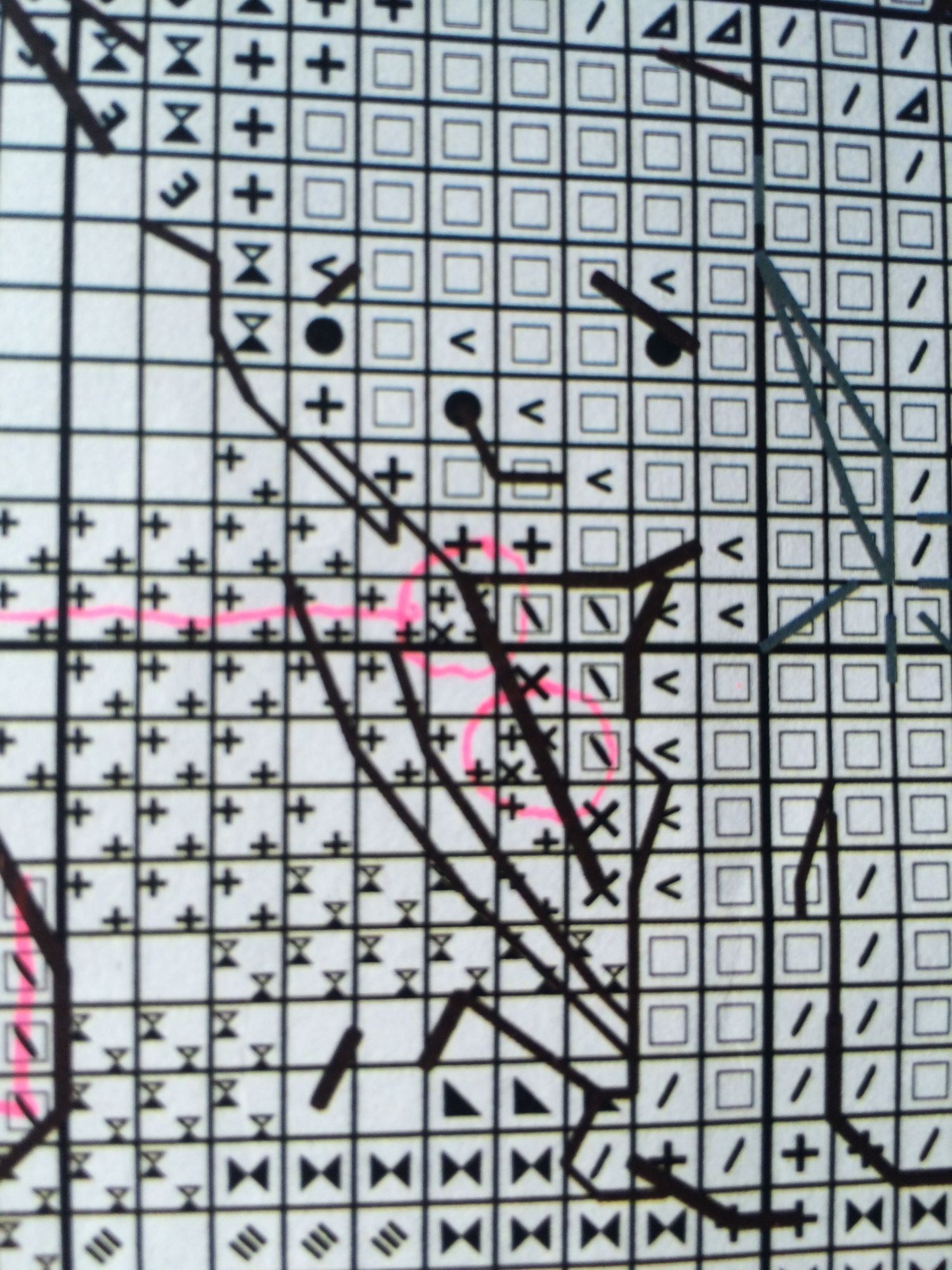 15 сентября 2016 10 минут назад, natalieke сказал: Мне кажется что эту клеточку с 2 плюсиками надо читать не как 2 элемента в разных углах, а как одно цельное обозначение, то есть один полукрест в данном случае. Расположение плюсиков дополнительно показывает направление полукреста, и делает схему более похожей на то что должно в итоге получиться. Тем более что направление полукреста здесь такое, что все равно образуется одна черточка, разницы не будет, состоит она из двух маленьких стежков или одного большого. С двумя треугольниками поставленными друг на друга то же самое, просто описать этот элемент сложнее, слово плюсик короче ))) вот и я подумала, что проще тогда уж 2 полукреста там сделать. Пока еще не шила то место, тружусь на работе. Поделиться сообщением Ссылка на сообщение