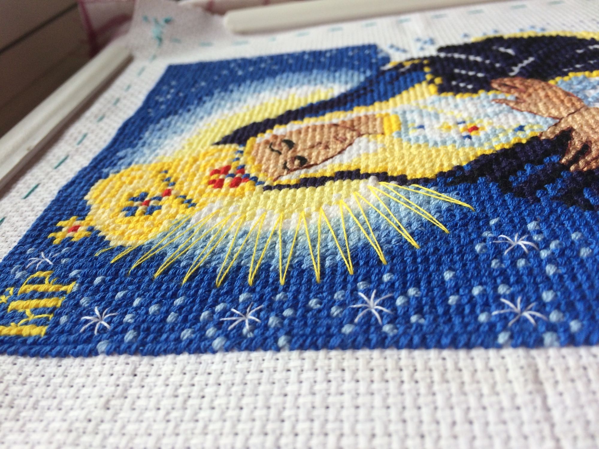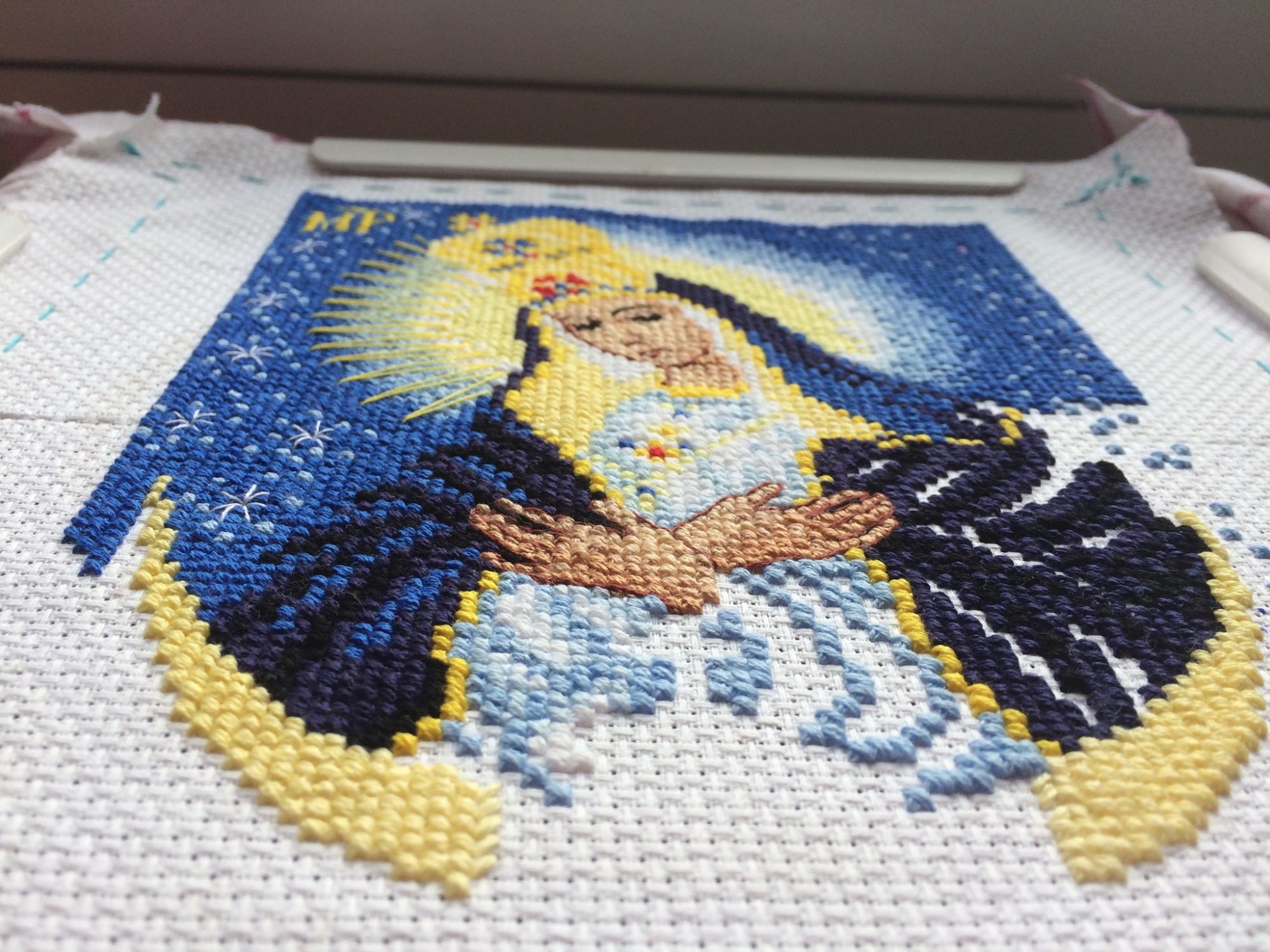 26 апреля 2016 Девочки, привет! И я с иконой, только вот какая проблема: начинала вышивать лет 6 назад сверху мононитью на раме (т.е. натяжка сверху и снизу). Спустя все эти годы решила продолжить вышивку, взяла нить для бисера и натянула на куснапы. Работа пошла гораздо быстрее, очень удобно стало вышивать: натяжка барабанная со всех сторон, нить в узлы не путается, все хорошо. Но есть огромнейшнее НО: верхние ряды стянуты относительно всех остальных. Судя по измерениям линейкой, разница в 4 мм целых.. И вот вопрос: мне перешивать верх, чтобы икона была одинаковой по ширине, или в багетке смогут натянуть так, чтобы разницы не было заметно? Маса сказал(а) спасибо Поделиться сообщением Ссылка на сообщение
