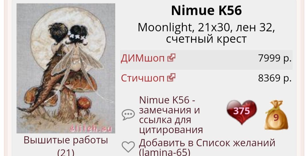 18 августа 2024 26.07.2024 в 02:46, lamina-65 сказал(а): ФОТОЗАГАДКИ Ниже даны фрагменты наборов для вышивки. Вам надо угадать производителя и название. Ответы отправлять мне в личные сообщения 1. 2. 3. 4. 5. 6. 7. 8. 9. Срок выполнения: до 5 августа включительно. За каждый отгаданный фрагмент -1 балл ОТГАДКИ 1. 2. 3. 4. 5. 6. 7. 8. 9. korund, tessykat, Ксен40 и 3 других сказали спасибо Поделиться сообщением Ссылка на сообщение