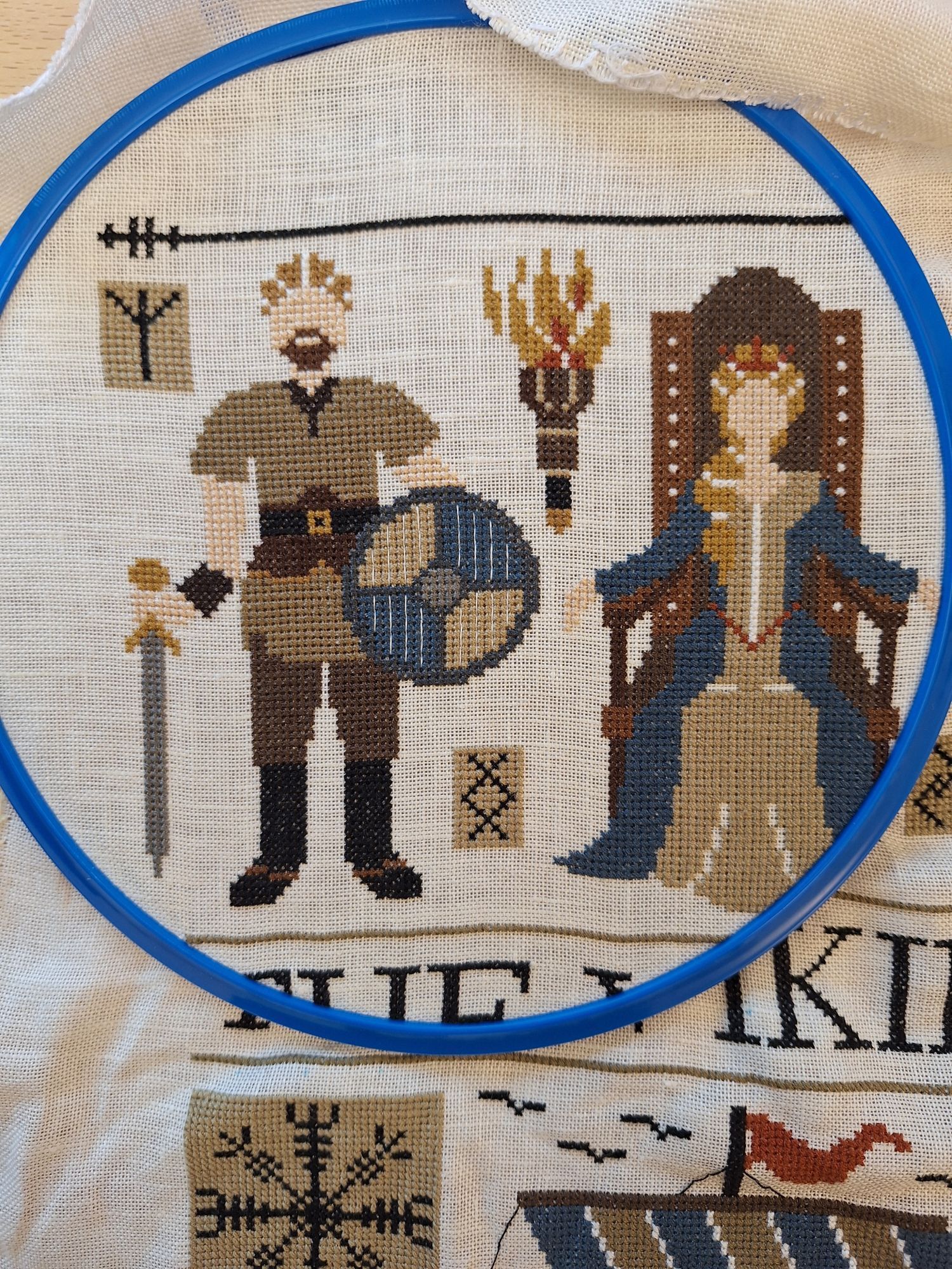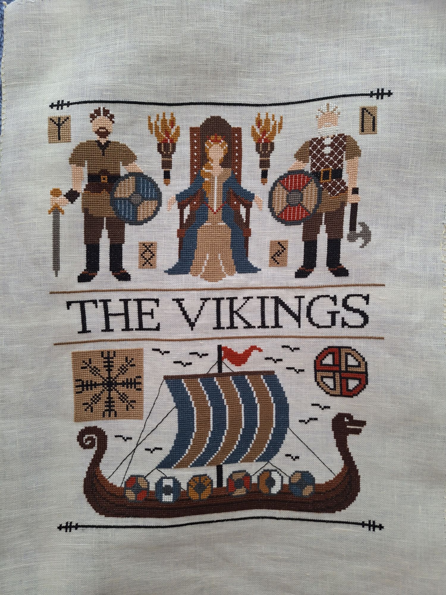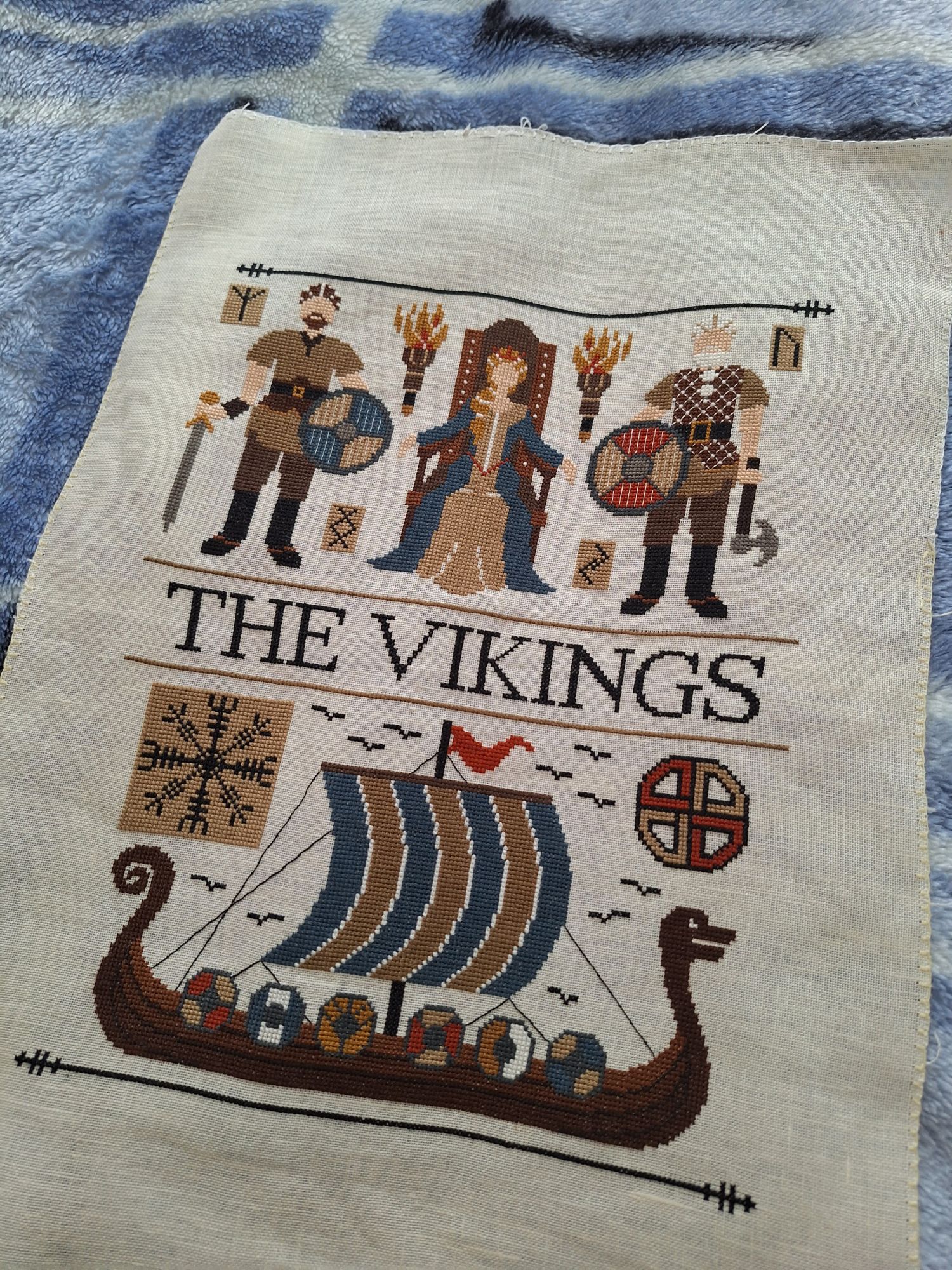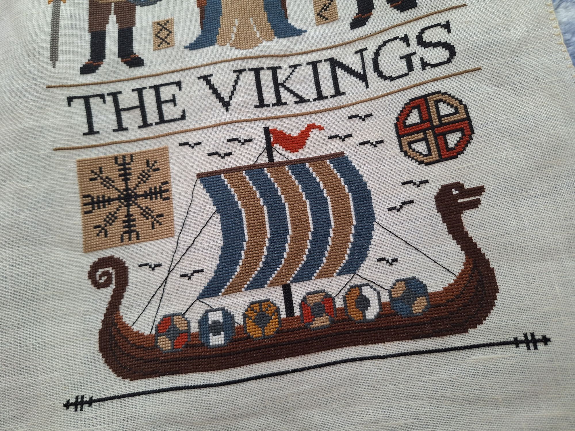 20 октября 2024 16.10.2024 в 10:35, wHiTe raBBit сказал(а): Всем привет! Поделюсь моими продвижения по семплеру и попрошу совета. Вышиваю вот такой семплер для мужа свекрови, он поклонник викингов Решила я немного изменить дизайн и сделала замену. Правый мужчина стал с белой бородой, а левый с коричневой, заменила девушку на мужчину слева. Проблема один: мужчина оказался шире девушки и теперь меч выходит за рамки вышивки. Пока решила исправить нижную черную границу, чтобы было параллельно и посмотреть как будет ( корабль будет не совсем по центру), по идее надо и справа черные границы продлевать наверное. Проблема номер два: я то думала на головах у них короны, а тут вчера в мужем поняли, что это наверное волосы((( планирую перешивать у мужчин цвет волос в цвет бород)))) но это хоть не так сложно сделать что вообще с границами делать, чтобы стало параллельно? Так не особо видно, но если погладить и в оформлении будет заметно, что верхняя левая черная граница длиннее остальных В итоге я перешила у мужчин волосы и продлила все черные границы справа и слева, а также коричневые линии в центры справа и слева. Теперь все симметрично. Можно конечно ещё перешить символ в правом верхнем углу, но боюсь на льне останутся дырочки. Имхо и так смотрится гармонично, как считаете? Выполнен пункт плана : 1. Вышить семплер по схеме The vikings дизайнера The little stitcher. С нуля Fancyworker, soln33, Olga@Olga и 6 других сказали спасибо Поделиться сообщением Ссылка на сообщение