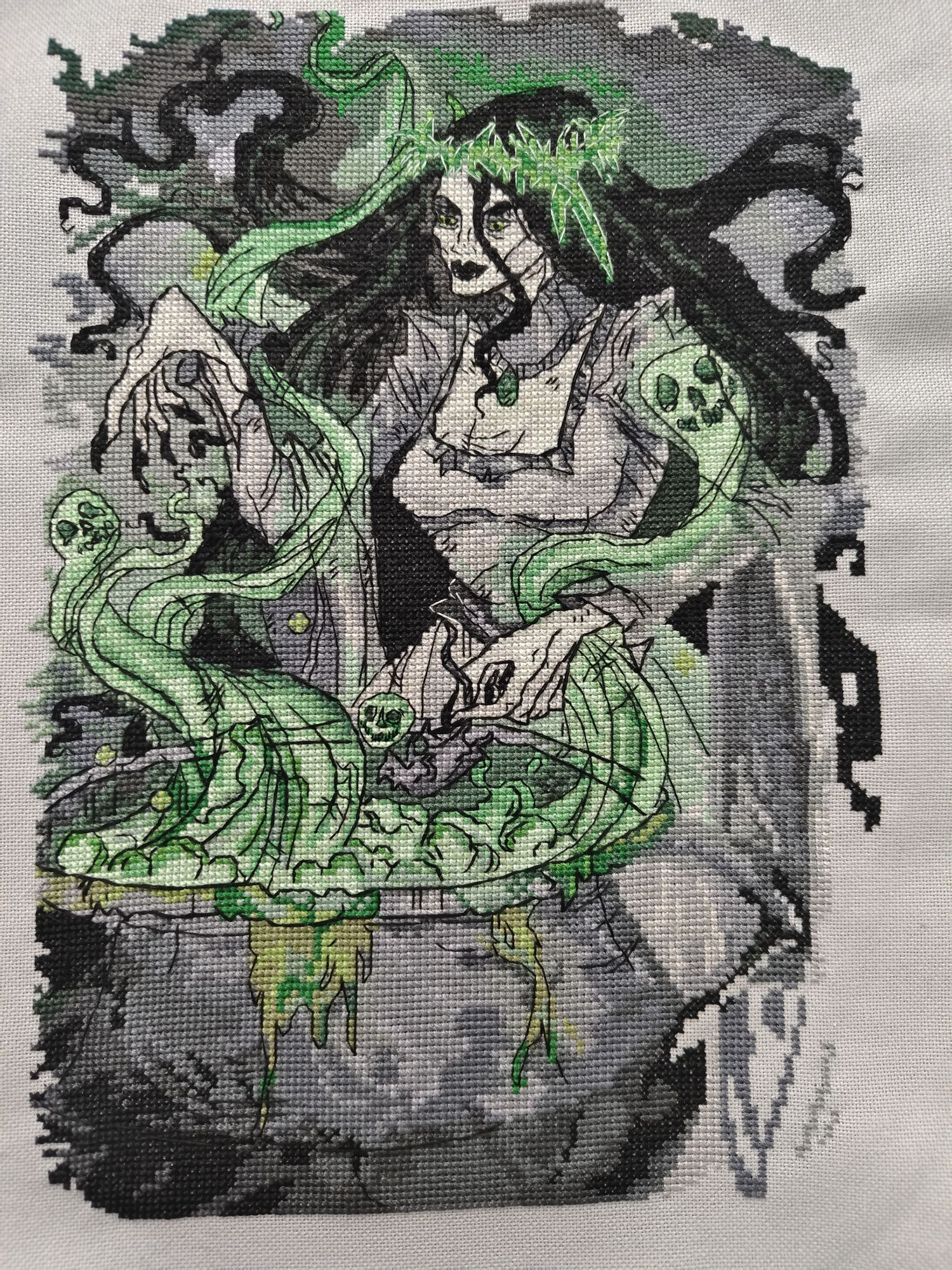 28 сентября Мой вышивальный сентябрь подходит к концу, пора показать, что случилось за это время:) Финиши Финиш №1 Смирнова Дарья (LadyD) - Ведьма Марта Это была очень легкая работа, хотя изначально я боялась большого количества бэка, но он оказался вполне простым. Мне не нравится проработка кролика:( Как будто совсем не понять, кто там у нее на руках... И да, она мне напоминает немного Мадам Чесноук из Хогвартс Легаси Карта Литы закрыта Финиш №2 RTO - Hop-CORN (добавьте уже в зелёную гаечку, пожалуйста:)) Загорелась их вышить, как только они вышли в продажу, наконец-то это случилось:) Ооочень простой набор с отличными материалами, РТО как всегда на высоте! Финиш №3 Воденикова Любовь - Винтажные тюльпаны Это случилось! 6 тысяч крестиков смогли финишировать с марта месяца:) Очень нежно и красиво, но 28 цветов и 21 бленд... Некоторые просто использовались по 10 крестиков... Финиш №4 Rosewood Manor - Осенний квакер Ну и закончим еще одной моей старой работой:) Год сделала этот, а букву оставила от фамилии, думаю неплохо вышло. Нитки Валдани остались, но еще на один отшив точно не хватит, некоторые просто в впритык ушли. Продвижения 1)Dimensions - Зимние кружева Следующий фрагмент готов, я все еще надеюсь что мне повезет его закончить в этом году, хочется уже следующий какой-нибудь голд взять в работу... 2) Раманова Елена - Столпы Аргоната Второй ряд на месте:) 3) Риолис - Сербский пейзаж Это сложно, но веду его вперед, есть тоже надежда на финиш в этом году. 4) Panna - Дорога во ржи Продвижения по летним стартам тоже есть:) 5) Design Works - Стремление ввысь Тут уже 30% работы, совсем незаметно идет 6) Юлия Мартыненко - Черничный полдень 7) Марья Искусница - Садовый Давно не брала в руки Садовый, продвинула его немного за сентябрь. 8) Jardin Prive - Histoires de Moutons Это претендент на финиш в следующем месяце:) 9) Селезнева Анна (AnnyFunnyXx) - Изумрудный отвар (еще не финиш!) Ну и мою ведьмочку тоже хочется завершить до Хеллоуина, остался по большей части бэк. Старты По традиции я оставляю равным количество процессов, а это значит случилось 4 старта: Старт №1 - Lola Crow - Greenhouse of Oddities Это что-то невероятное, мне это было сразу надо! Мне кажется, что его можно рассматривать бесконечно и находить каждый раз что-то новое... и странное:) Нитки ДМС, основа мурано - лунное серебро, работала пока над крышей оранжереи, пока все нравится:) Старт№2 - РТО - Осенний пейзаж Пора доставать свои старые наборы, негоже им столько лет лежать:) Это старая разработка РТО и это чувствуется - тут нет блендов, нет бэка и полукреста, разброс крестиков НЕВЕРОЯТНЫЙ, я чуть не сломала глаза, пока перенабирала схему, ну и не жалею потраченного времени на это - по бумаге это шить - боль. Канву решила не заменять, выглядит очень органично и на Аиде. Получается очень здорово:) Старт №3 - Merejka - Dahlias (Георгины) Я решилась попробовать нового для себя производителя. Сразу перемотала нитки на обычный органайзер, больше не буду вышивать с намоток, это очень неудобно. Материалы отличные, но глаза немного устают от красных/розовых оттенков + разброс крестиков тоже довольно приличный. Вышивала один день, сложно пока сделать какие то выводы. Старт№4 - Ирина Даргель - Птица вещая Ну и куда без карты Мабона, Осеннего равноденствия. У меня с этой картой случился затык - мне пришлось гуглить что такое ведьмины четки, и вот сходу не вспомнила ни одну схему с ними Пробежалась по схемам в Саге и у