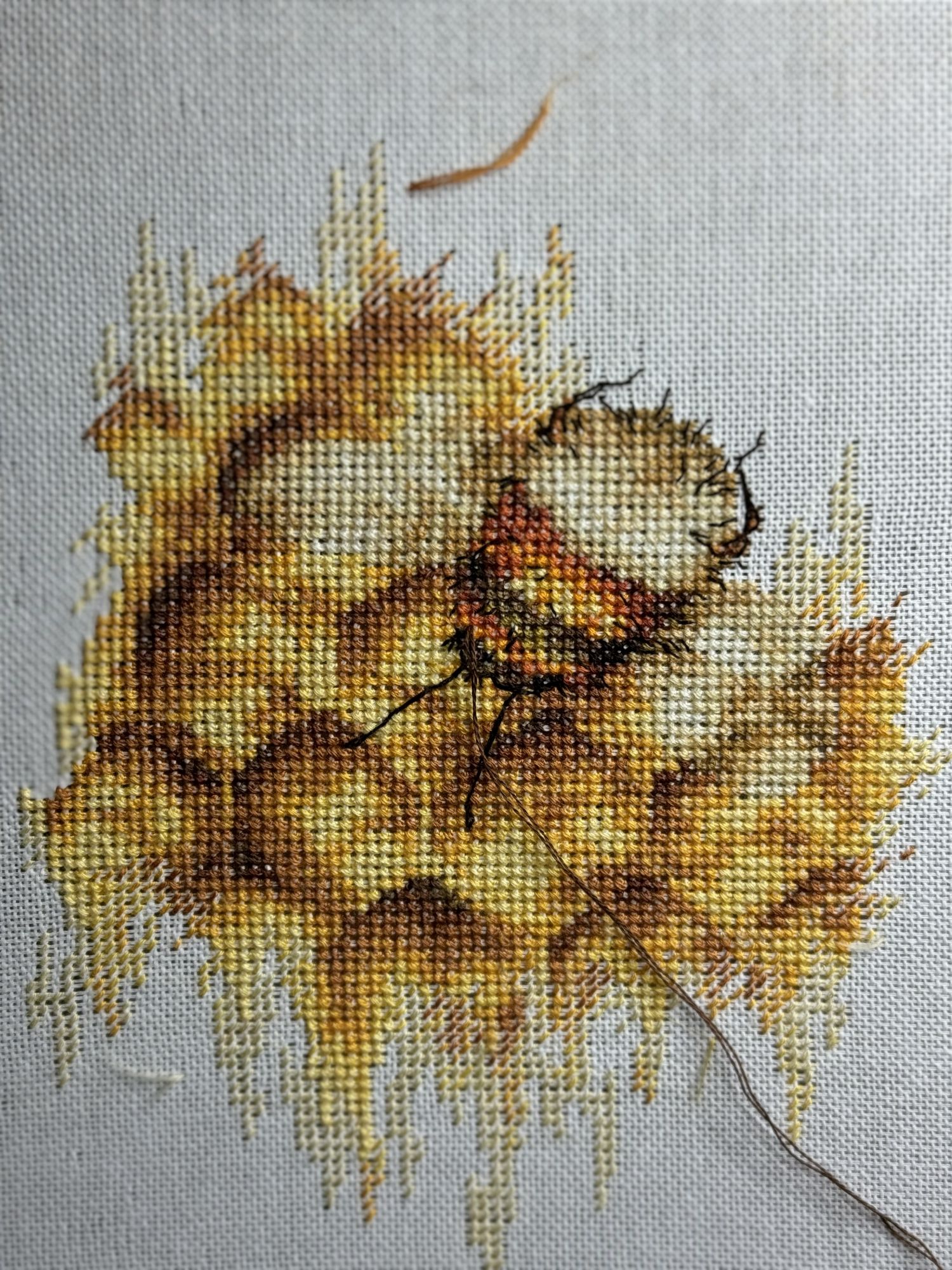 20 сентября 2024 У меня тоже финиш: моя версия «Душистого и пушистого» по набору Vik Dollin, купленному в прошлом году на «Формуле рукоделия» Один цвет бэка заменила по своему разумению на более темный, так как тот, которым предлагалось вышивать, терялся на фоне. Большие фрузелки сделала в 4 нити вместо 2, а маленькие вообще не стала делать. Несколько раз переделывала, пробовала и так, и этак, в конце концов решила оставить так, как получилось. Одуванчик, Надежда Минск, lamina-65 и 30 других сказали спасибо Поделиться сообщением Ссылка на сообщение