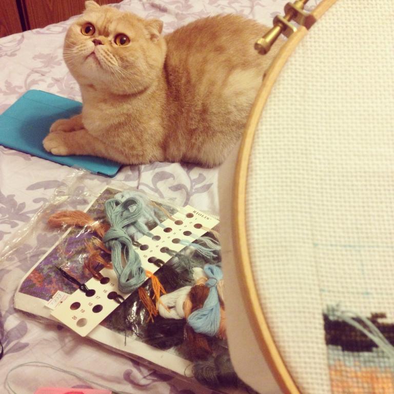 5 ноября 2014 Всем привет! давно меня тут не было, вот такая я блудливая )) семья, работа, да и просто вдохновления не было вышивать. Буквально три дня назад села вышивать после длительного перерыва. давно уже вышила Черешню, сейчас фото выложу, а сейчас вышиваю Риолис 1080 "заснеженный домик". Риолис 1080 Вот, что получается (тут еще мой помощник на фото, за ниткой наблюдает): natlus и Татуся сказали спасибо Поделиться сообщением Ссылка на сообщение