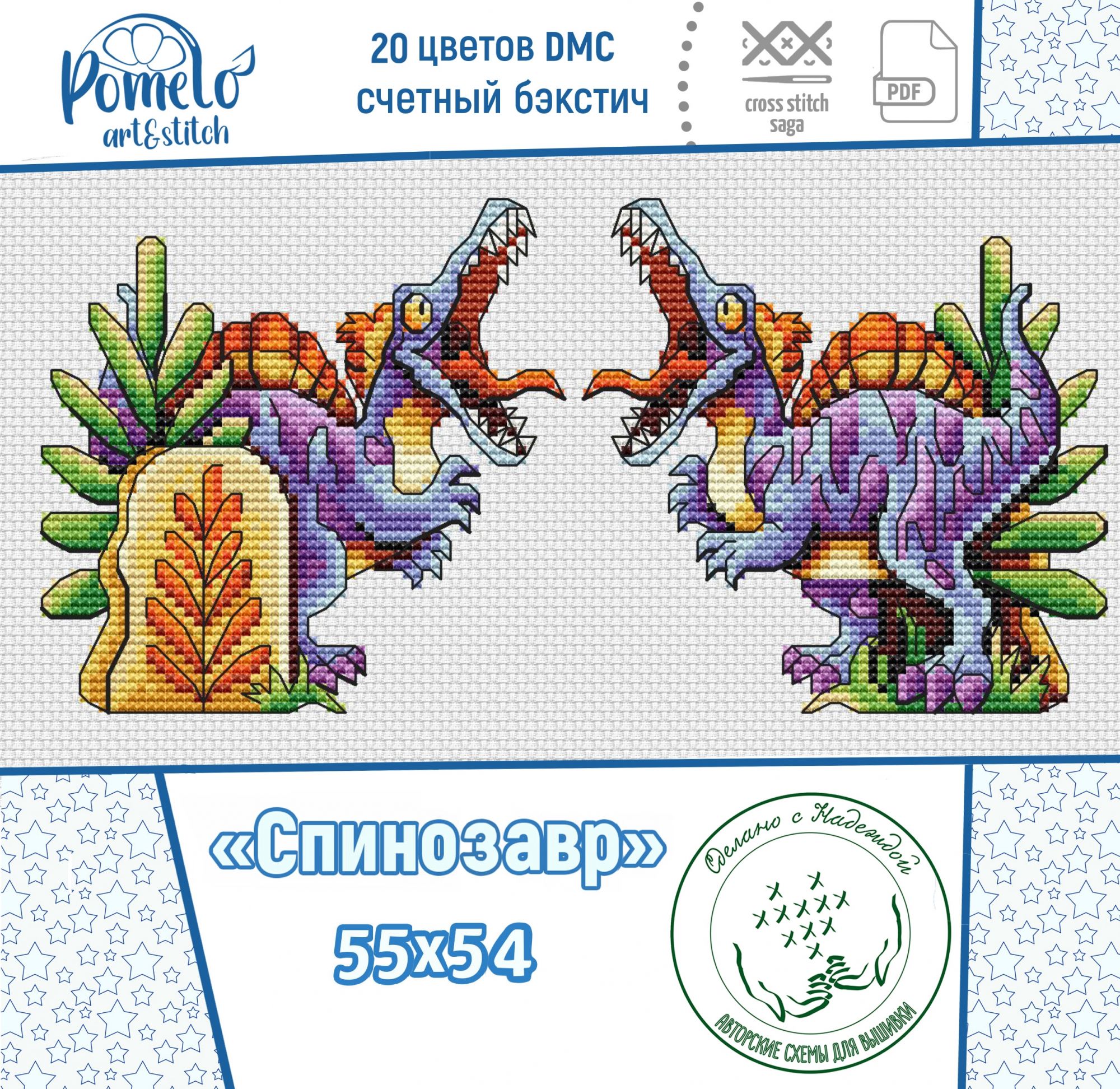 15 октября Бесстрашный и немного страшный -- спинозавр! Для ваших внутренних и внешних детей Исходная иллюстрация, а также часть дизайна: Norberta Atisto (группа Pomelo art&stitch) Формат: PDF, DIZE, SAGA (электронная схема) Размер готовой работы: 55х54 стежков (10х10 см на Аиде 14) -- одна сторона Палитра: DMC, 20 цветов (без блендов) Техника: счётный крест, бэкстич (счётный) Марафон по саге: 4192,5 -- обе стороны monstrochka сказал(а) спасибо Поделиться сообщением Ссылка на сообщение