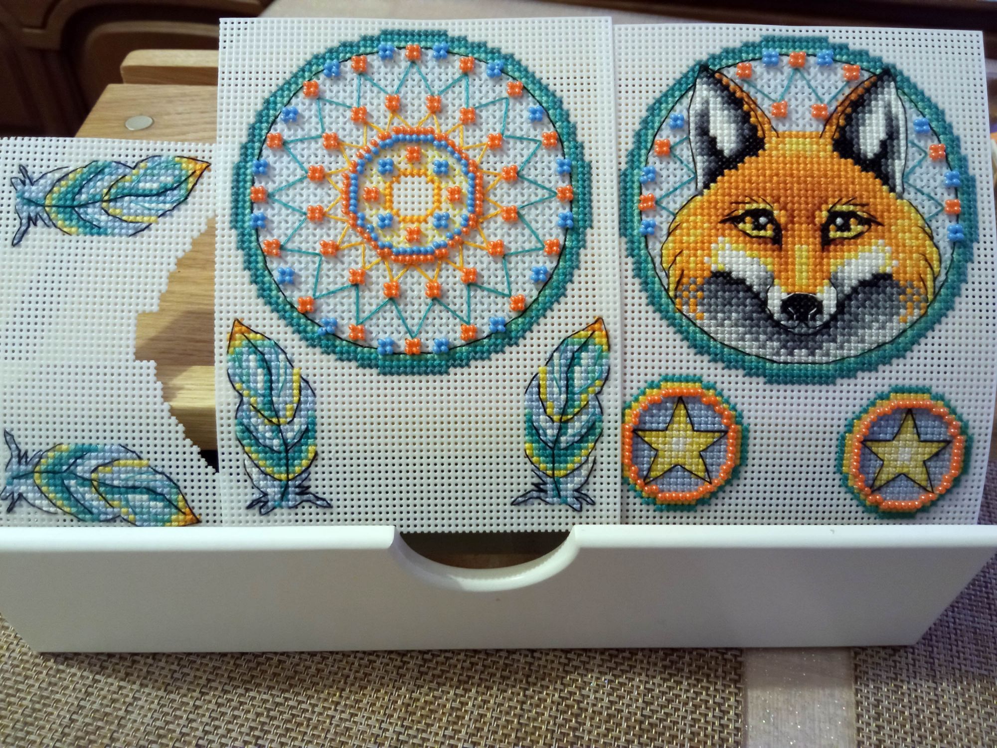 14 октября 2024 Отчет 1. Вышить 100 крестиков любимым цветом. - синие оттенки Дельфины (Золотое Руно Ф-031). Было: стало: 2. Вышить 100 крестиков на сюжете, где кого-то или чего-то три. - три книги Сны Мурлыки (RTO M642). Было: стало: 3. «Наведи порядок на своей вышивальной планете». Сюда входят: перемотка ниток на бобинки, организация процесса, подбор ниток и/или основы для нового процесса, разбор отшитых/ненужных наборов на комплектующие, составление списков материалов для заказов на будущие процессы, завершение небольшого процесса или "доведение до ума" процесса, требующего доработки (сборка игрушки, изготовление брелока или магнита, оформление) и т.п. Начала оформлять ловца снов - лису: Вырезала детальки: сшила одно перо и кругляшок) Устала и пошла набрала в РМ вишенки от МП-студии Сбор всей игрушки-ловца ожидайте в следующих сериях)) ЭСТАФЕТА (300+) Зимний город (Риолис 727). Было: стало: 4. Вышить 100 крестиков на процессе, где больше всего цветов. (52 цвета) + Посвящение божеству (100+) - летают птицы - они родственники птице Гамаюн) + Праздничное подношение (1000+) Пробуждение (Panna Ж-1841). Было: стало: error425, Darira, Leutnant Ripley и 21 других сказали спасибо Поделиться сообщением Ссылка на сообщение