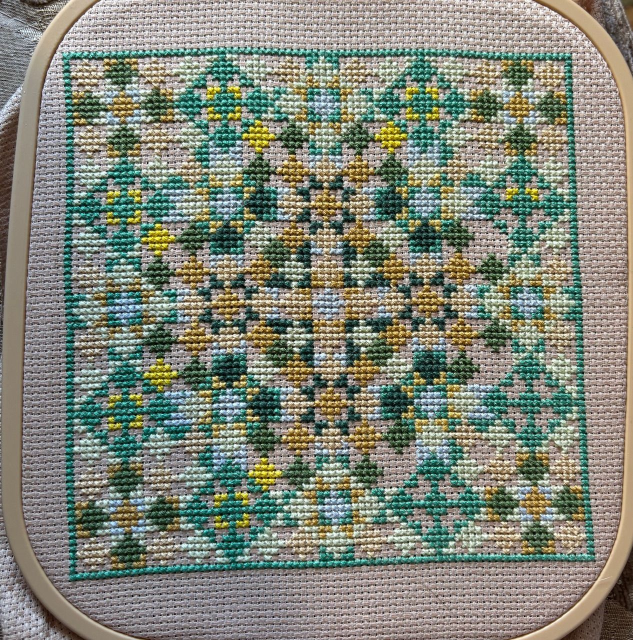 15 октября 2024 (изменено) Наверное, дополню свой отчёт. Самая первая фотография - это на самом деле состояние перед стартом. Но именно на ней виден левый край работы. На первой неделе я шила другой угол и не стала снимать работу целиком. Средняя - отчёт с прошлой недели, на ней только прогресс в правом верхнем углу. И последняя - итог этой недели. Изменено 15 октября 2024 пользователем wednesday_next error425, korund, semsot и 13 других сказали спасибо Поделиться сообщением Ссылка на сообщение