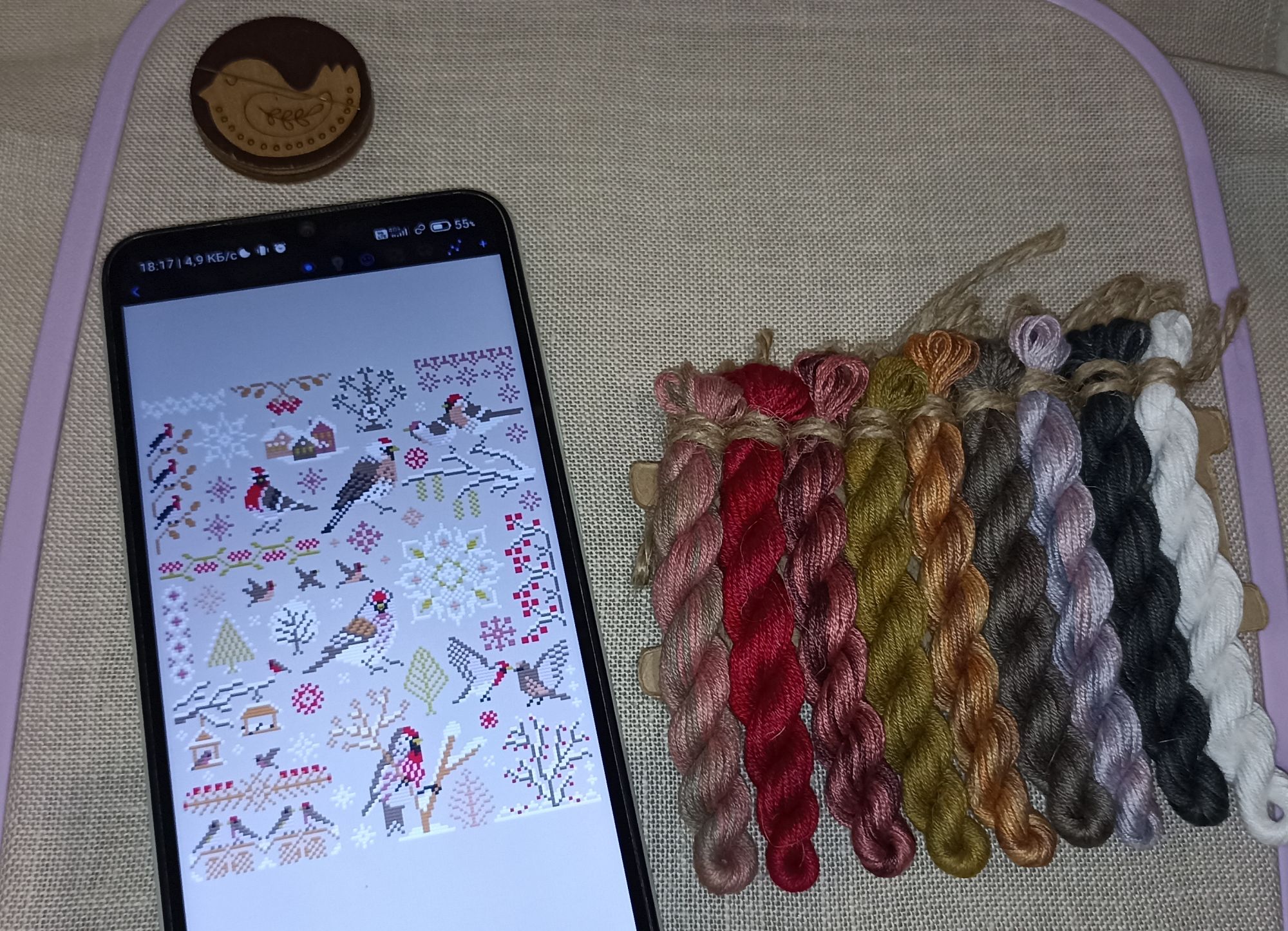 23 декабря 2024 Отчёт 1. Вышить 150 крестиков веселыми цветами. Можно взять один цвет или их сочетание. Розовые, голубые цвета + 2. Вышить 150 крестиков на сюжете: Птицы. Птичий клюв уже появился + Праздничное подношение Было стало 3. Вышить 300 крестиков на основе: Аида, страмин и другие ткани регулярного переплетения (видна квадратичная структура). + Посвящение божеству (здесь явно декабрь, месяц Коляды) Было стало 4. Вышить логически завершенный небольшой фрагмент (домик/ цветок/ человечка/ зверя и т. п.). Всего на этом сюжете - 150 крестиков. Здесь и планета, и табличка логически завершенные фрагменты + Эстафета Было стало Финиш Ф1 korund, PrimaN, Essenia и 20 других сказали спасибо Поделиться сообщением Ссылка на сообщение